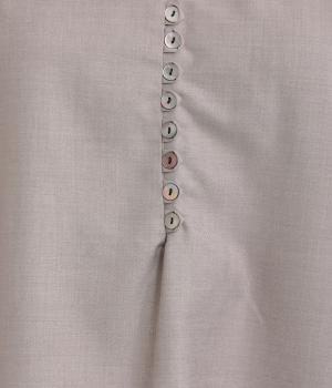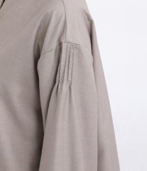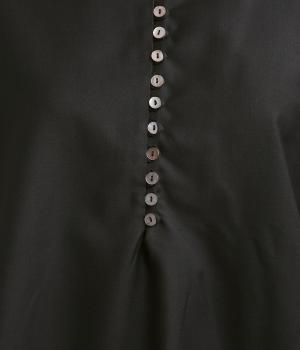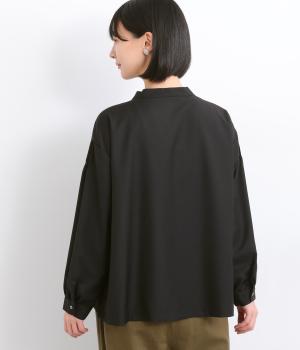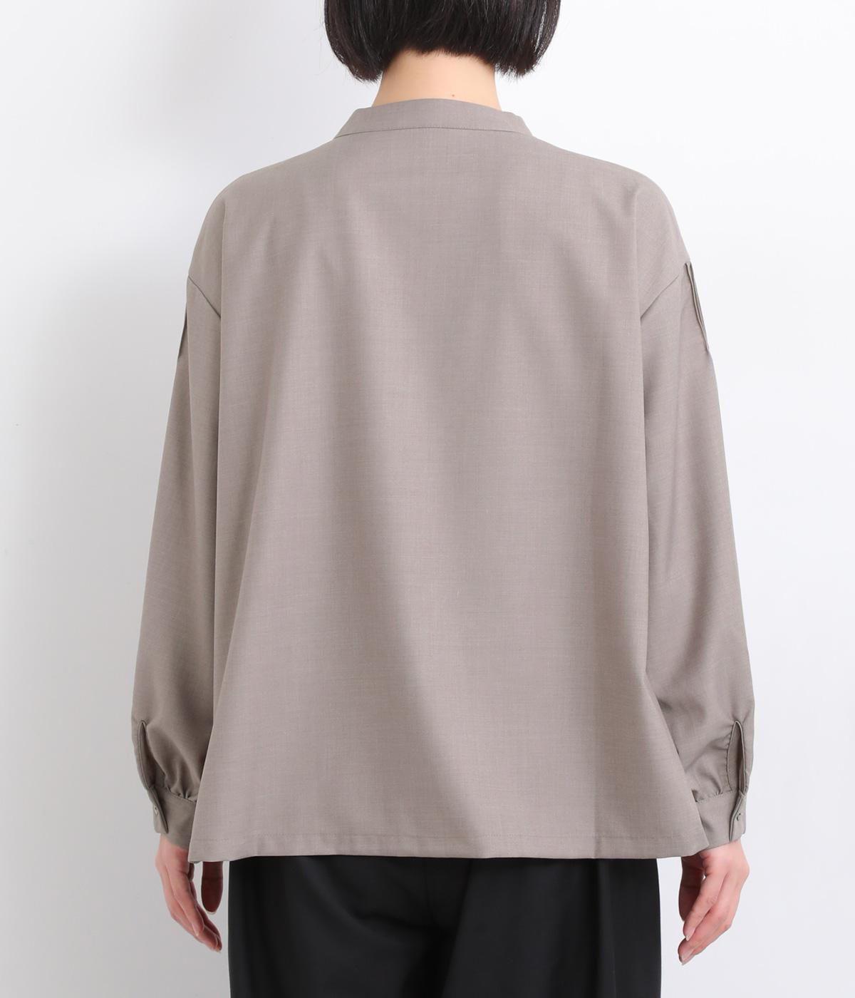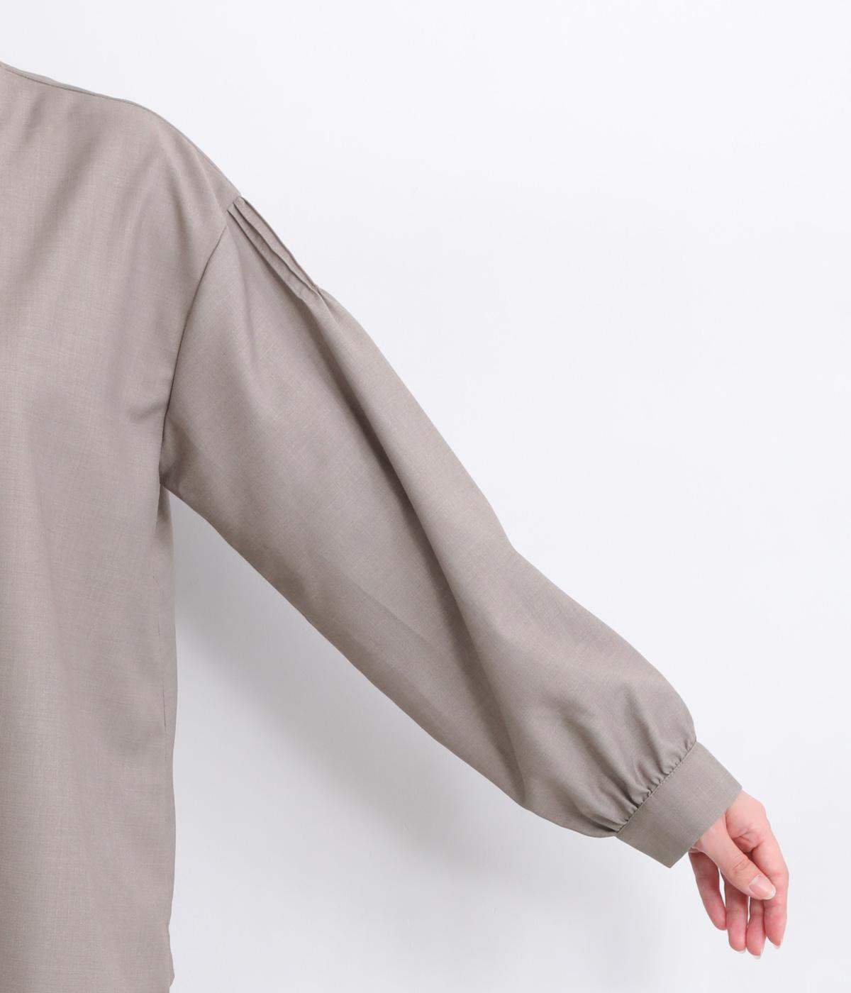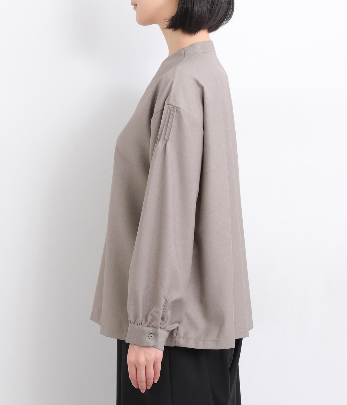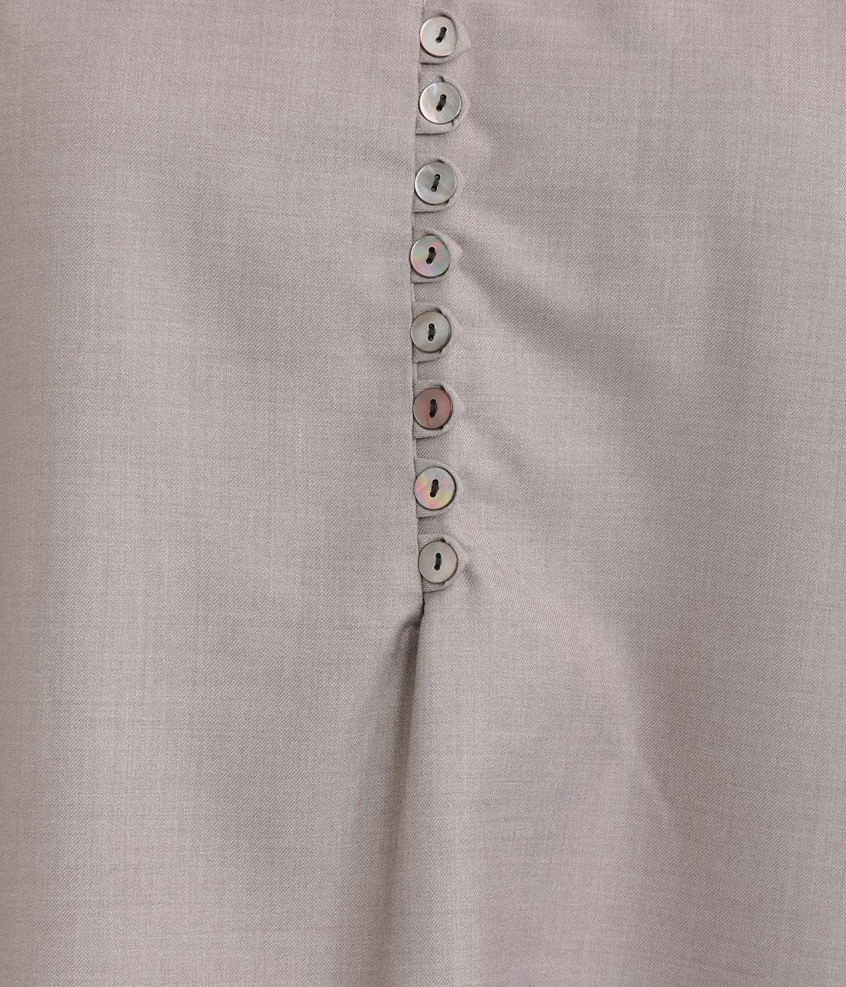 フロントに並んだボタンが、シンプルなシルエットに上品なアクセントを添えるブラウスです。襟はほんのり立ち上がるボトルネックをスキッパー仕立てにすることで、首まわりがすっきり見え、抜け感のある佇まいに。肩の切り替えにさりげなく施したピンタックが、上品な印象をプラスしています。