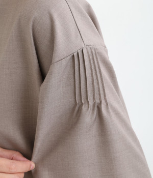 雰囲気のあるドロップショルダーと袖上部のピンタックでエレガントな印象をプラス