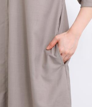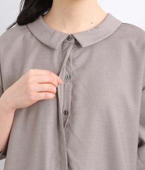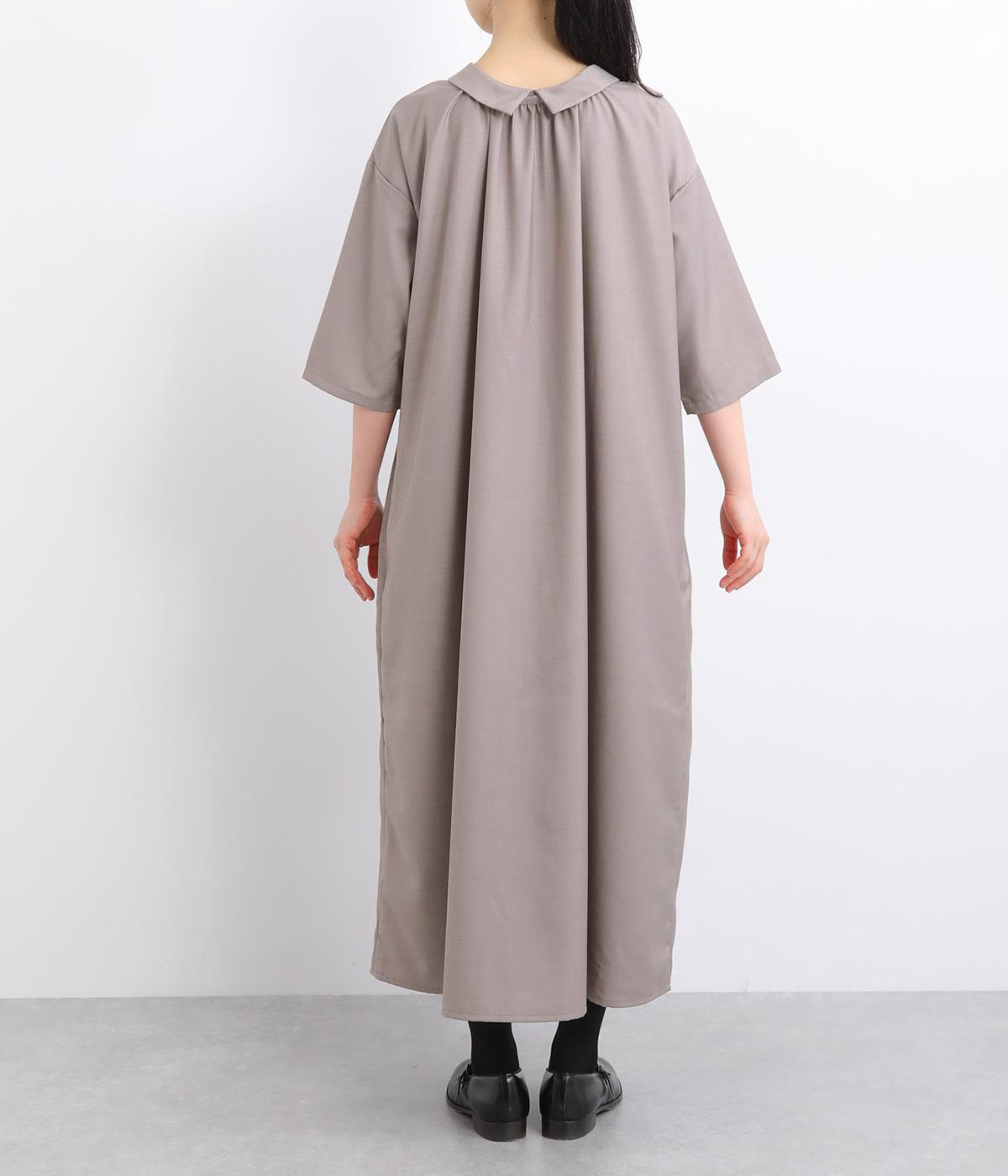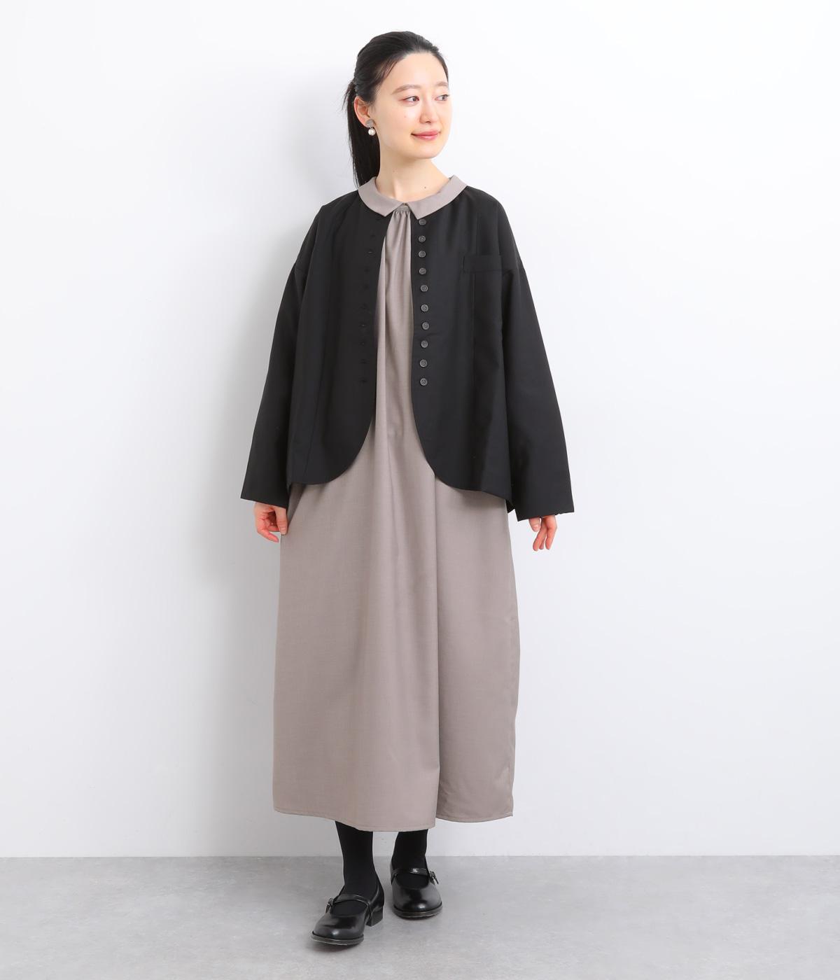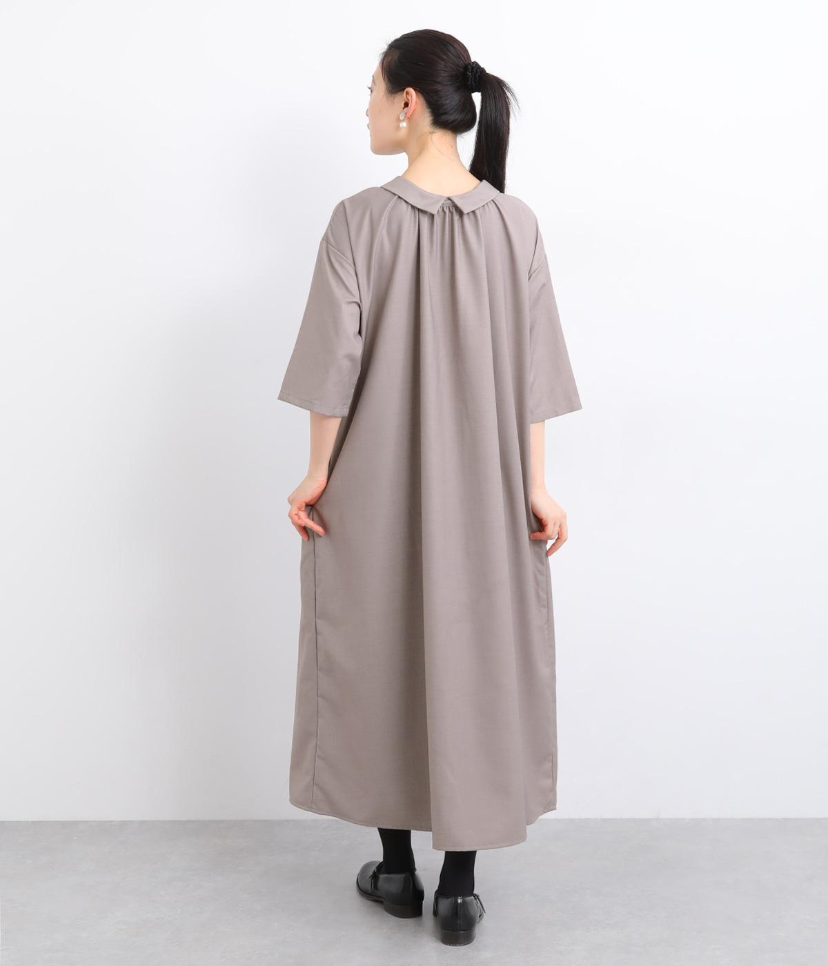 前後で異なる表情がたのしめる2way仕様です。比翼仕立ての面はきちんと感があり、ギャザー面は首元にやわらかな動きが加わりフェミニンな雰囲気に仕上がります。ひじがかくれる五分袖は、季節を通して使えるのもうれしいポイント。体のラインを拾いにくいシルエットで、自然体の美しさを引き出します。