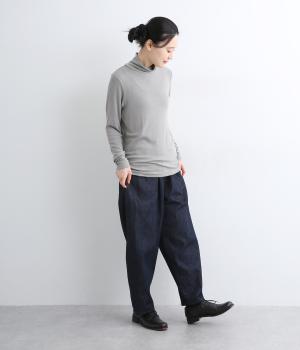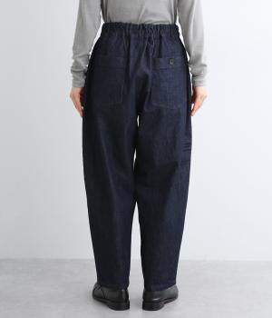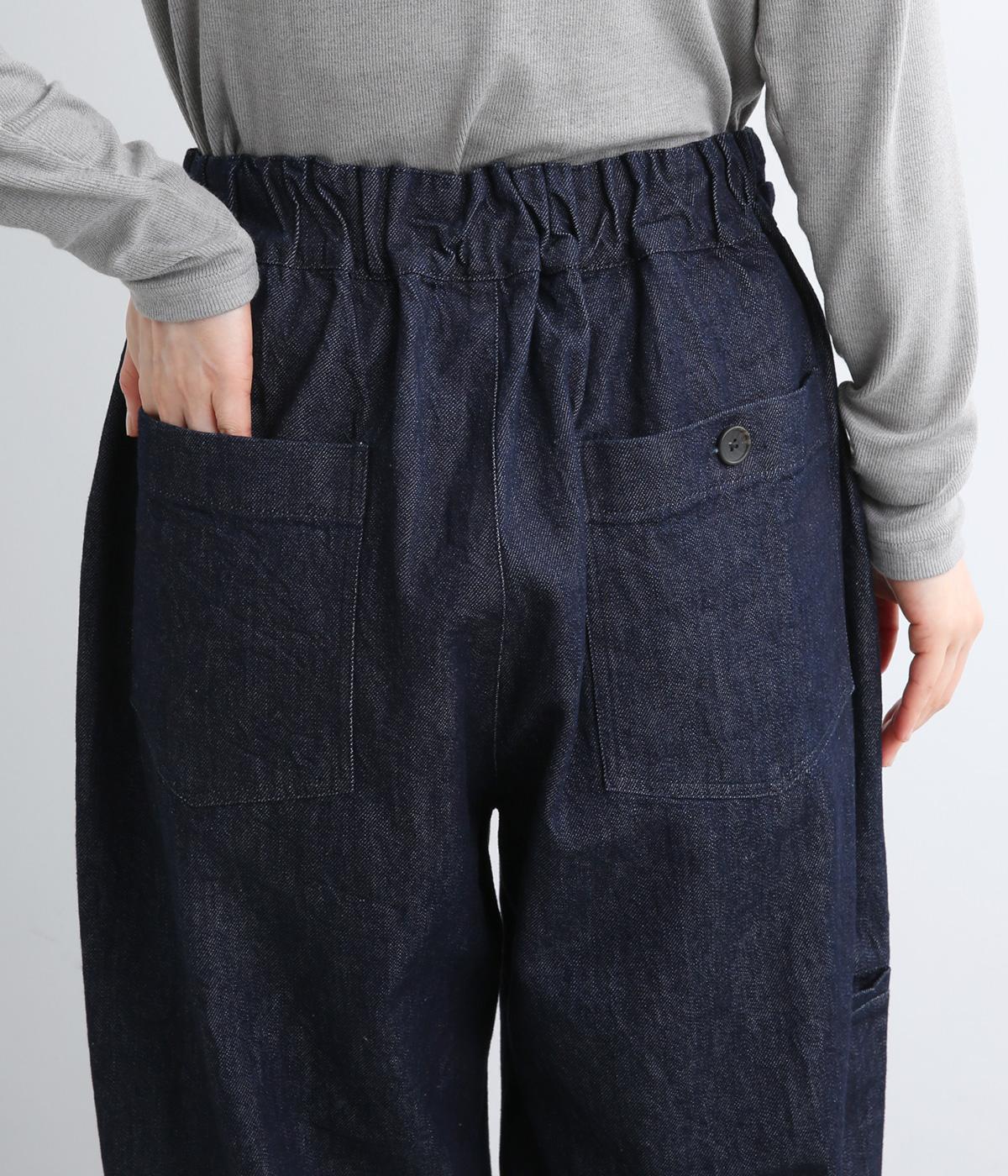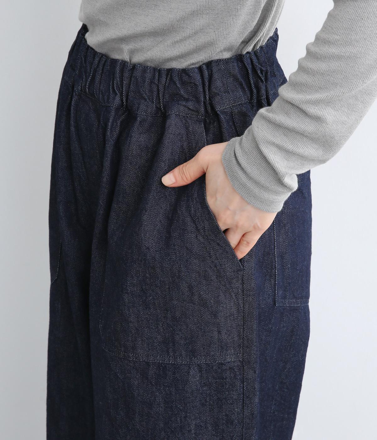 気になる腰やお尻まわりをカバーしつつ、すっきりとした印象ではけるテーパードパンツ。両サイドのほか、ヒップにも大きめなポケットをつけてアクセントにしました。ウエストにはお腹まわりにやさしくフィットするゴムを通しています。