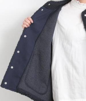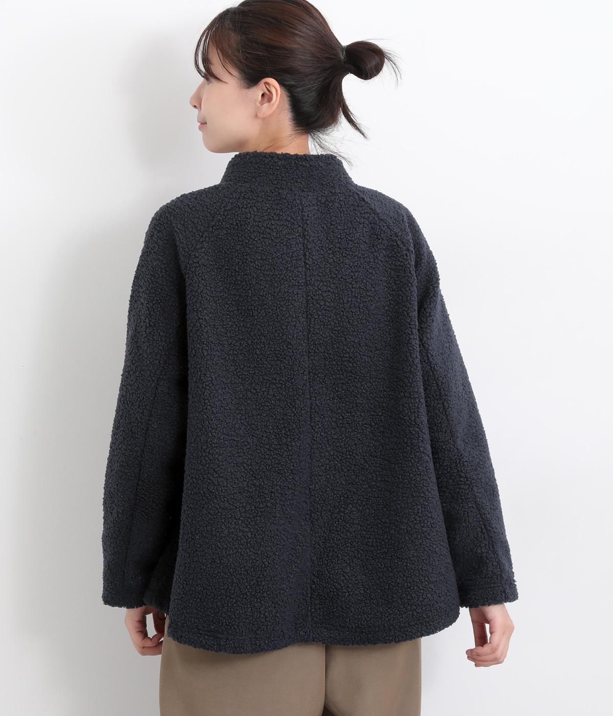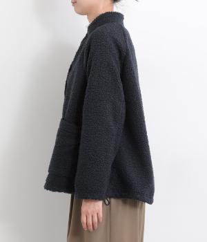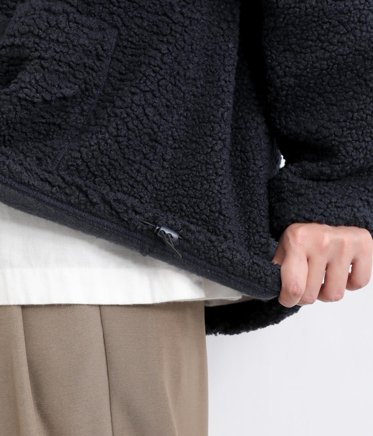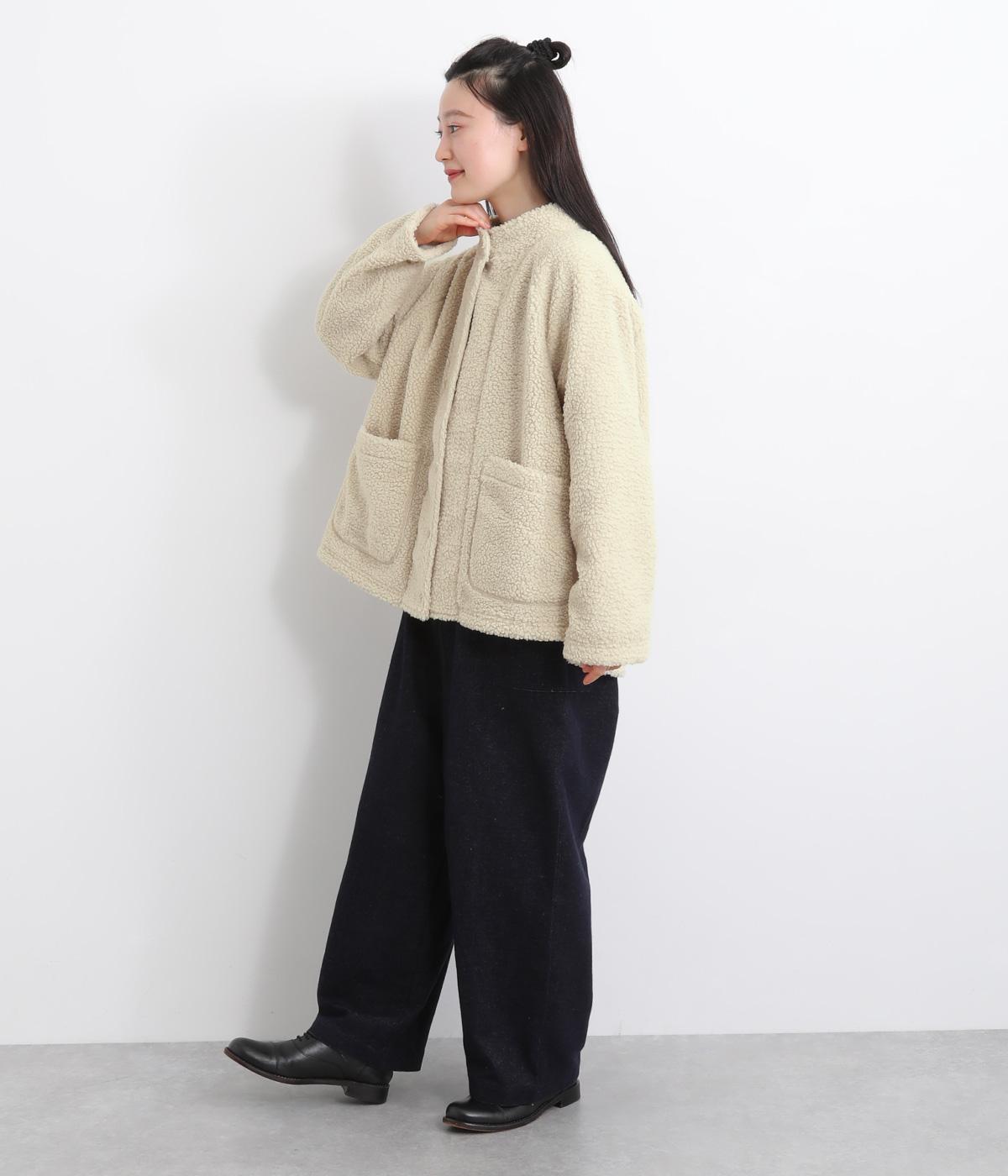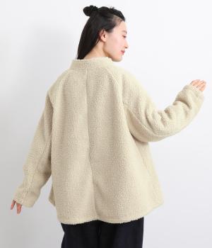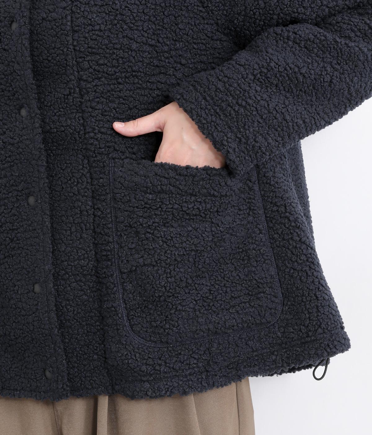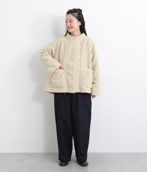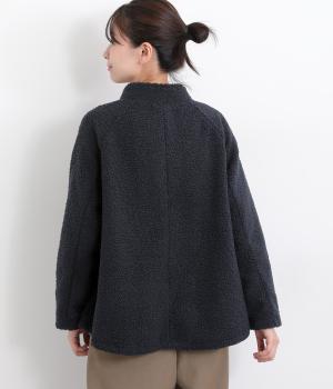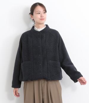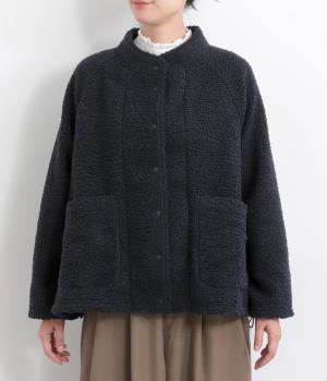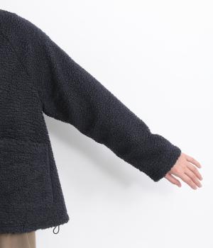 立体感のあるパイル生地を活かしてベーシックに仕立てたジャケット。大きめポケットでカジュアルに仕上げ、裾のコードをしぼるとシルエットに丸みが出て可愛らしさも倍増。ラグラン袖で窮屈感も軽減させ、おうちでのリラックスタイムにも活躍。