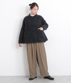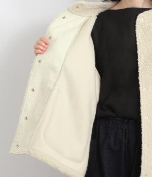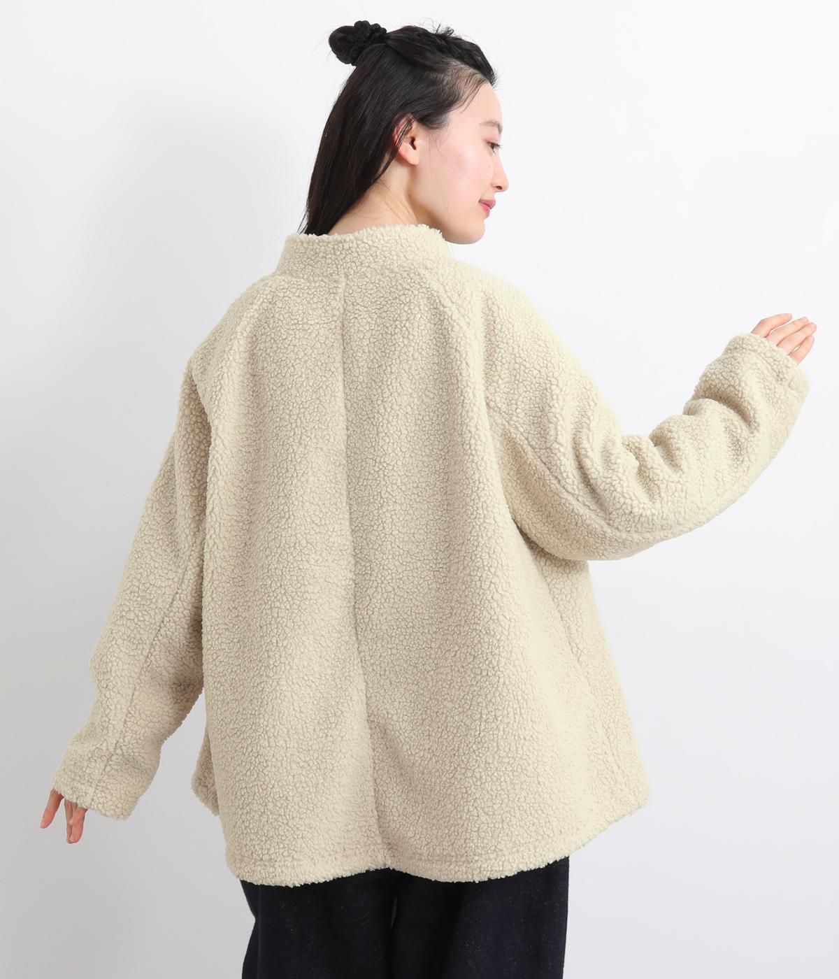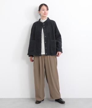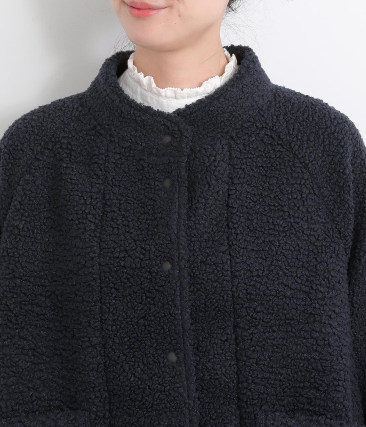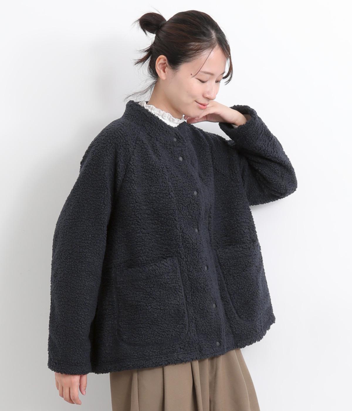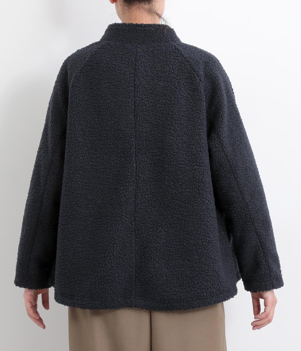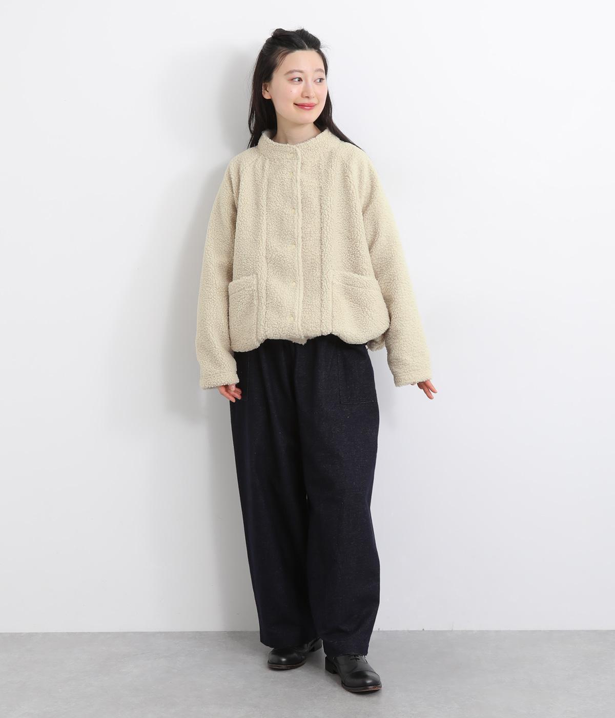 立体感のあるパイル生地を活かしてベーシックに仕立てたジャケット。大きめポケットでカジュアルに仕上げ、裾のコードをしぼるとシルエットに丸みが出て可愛らしさも倍増。ラグラン袖で窮屈感も軽減させ、おうちでのリラックスタイムにも活躍。