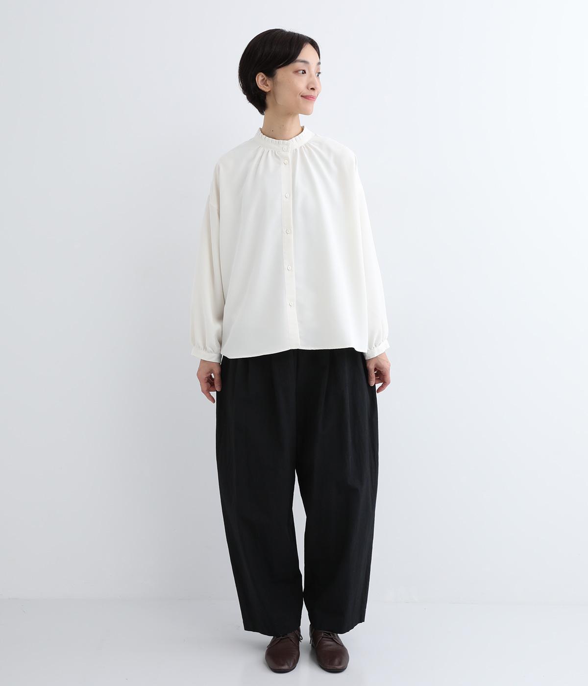適度なハリ感がありながらも柔らかな風合いを持つ目の詰まったコットンリネン生地。洗いざらしのようなシワのある風合いが着こなしにこなれ感を与えてくれます。