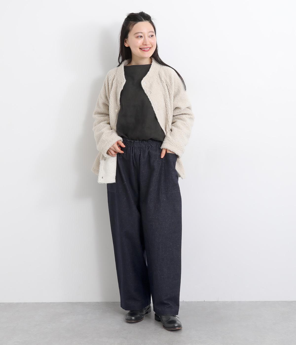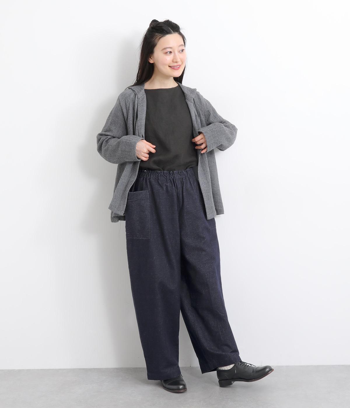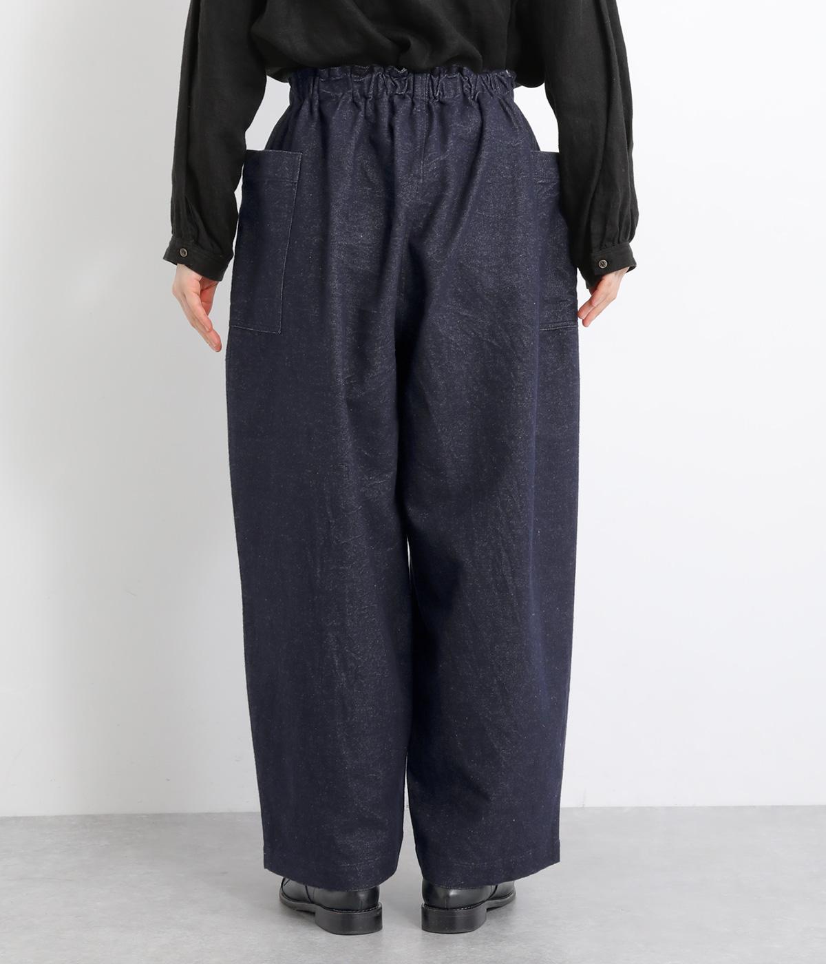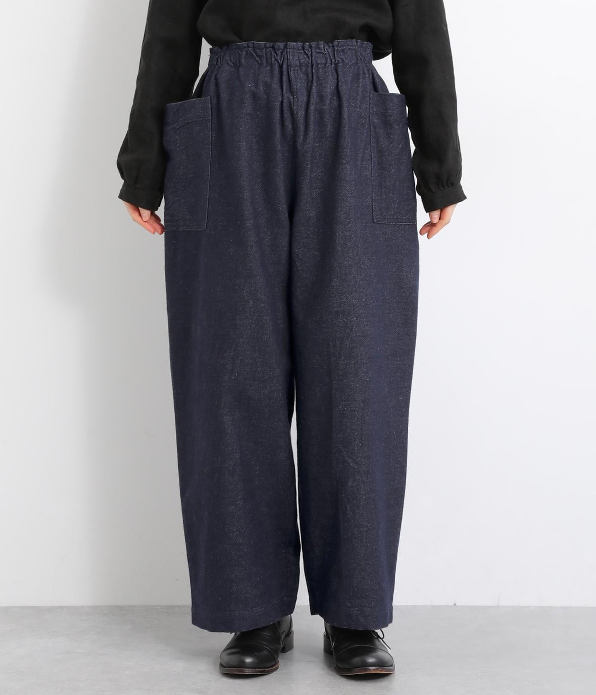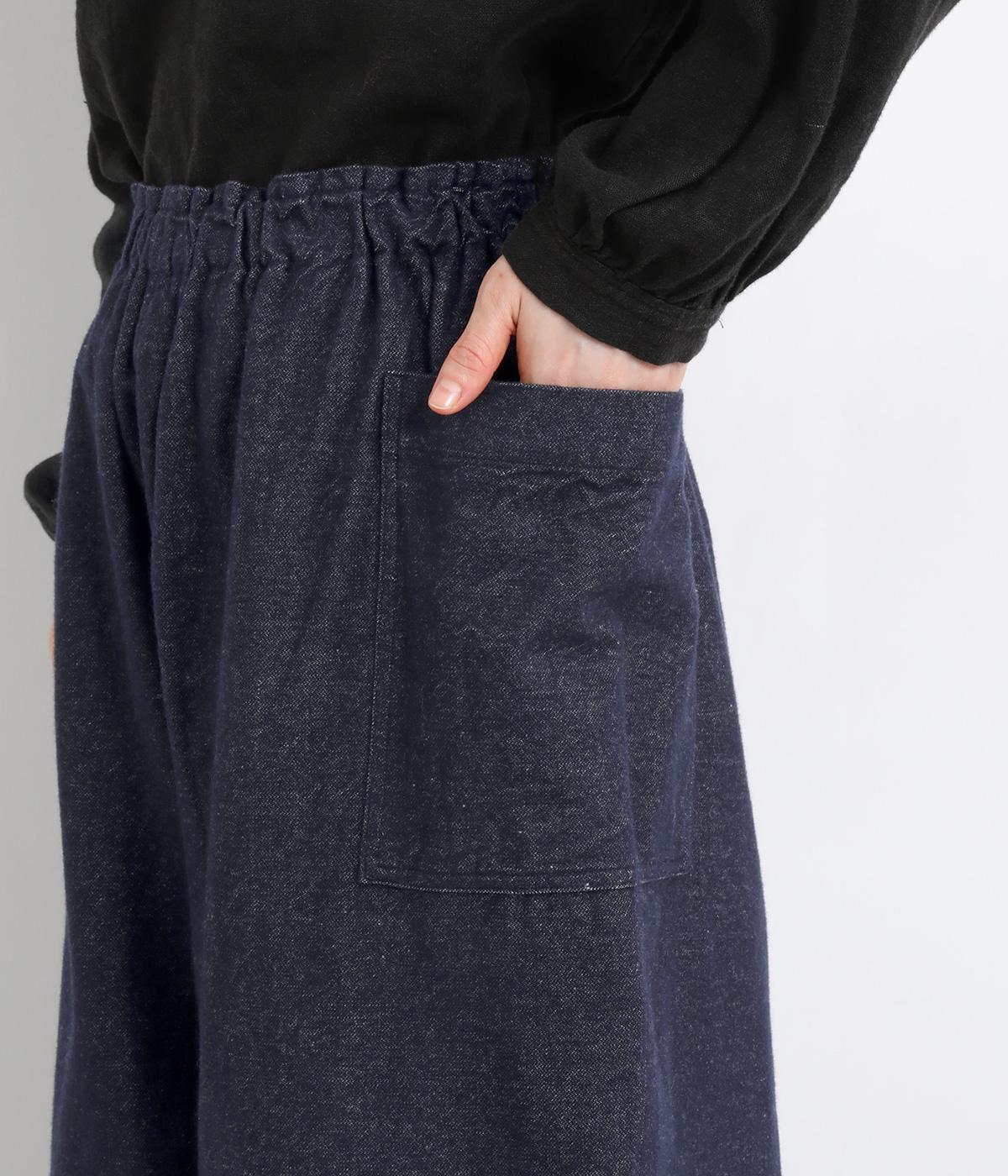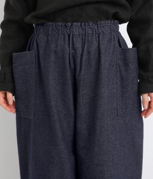 ゆったりとしたワイドシルエットでリラクシーなのにこなれ感があるのは、雰囲気のいいフランネル素材に立体感のあるポケットのおかげ。ウエスト総ゴムできゅっとフィット感があるので、トップスインのメリハリをつけたスタイリングもおすすめ。