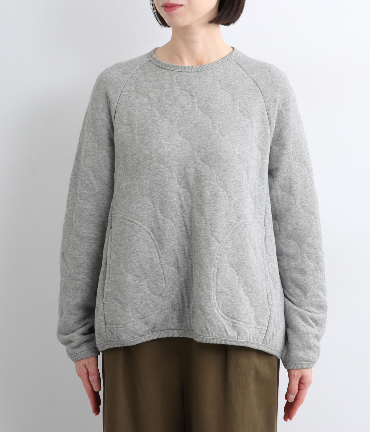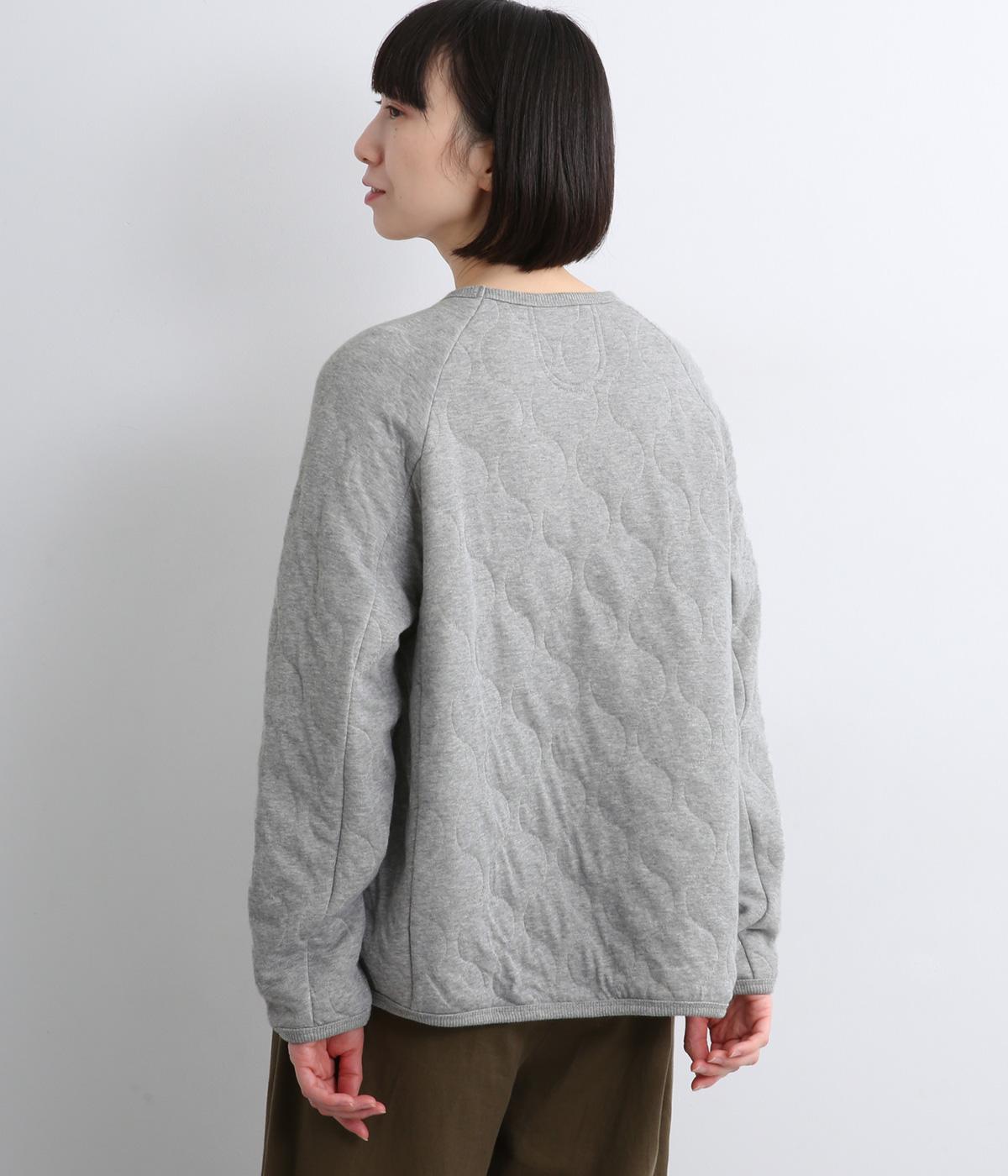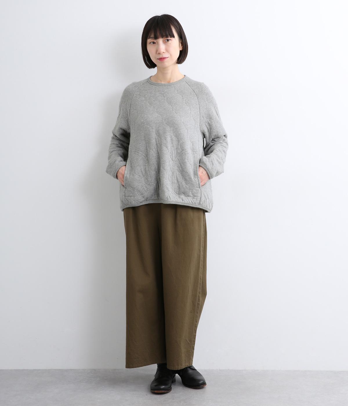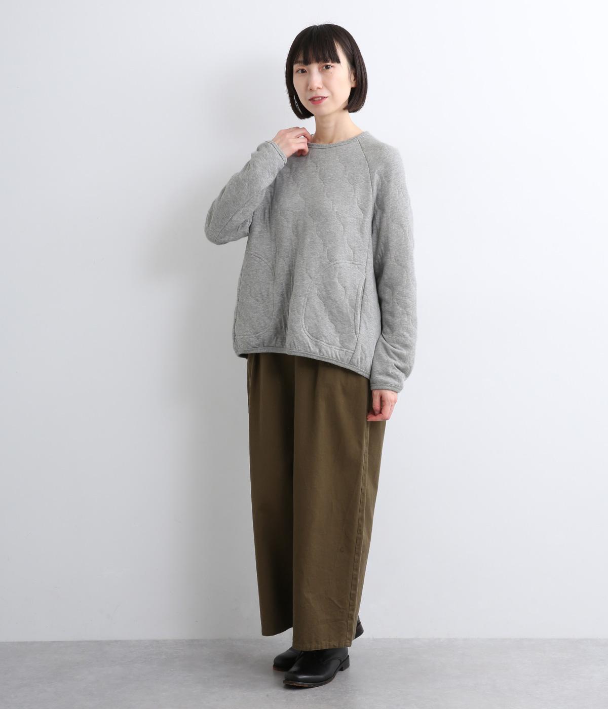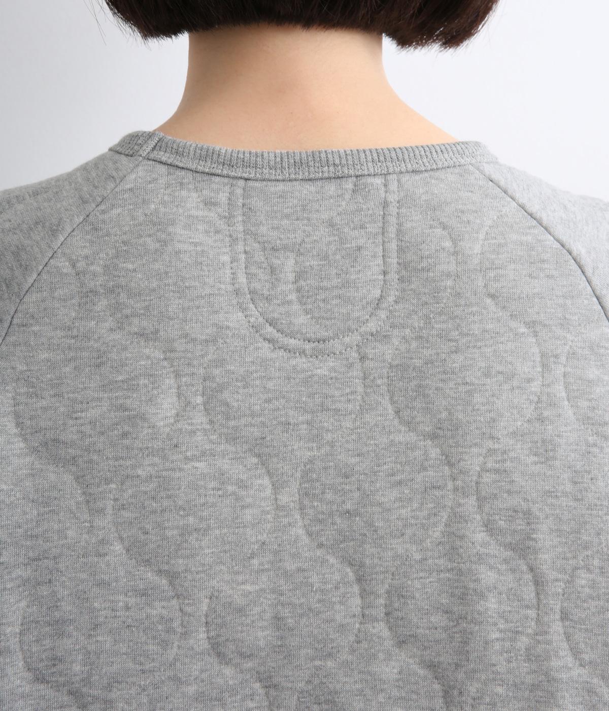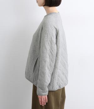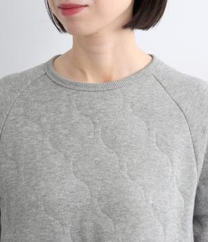 波打つステッチが特徴のオニオンキルト柄が、シンプルなシルエットに表情を添える一枚。肩の切り替えをなくしたラグランスリーブ仕様で動きやすく、リブ仕上げの襟や袖口、裾が、全体を引き締めてくれます。やさしい素材感とデザインが調和した、デイリーに使いやすいプルオーバーです。