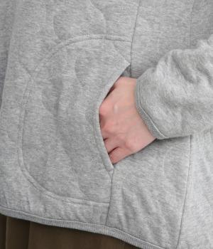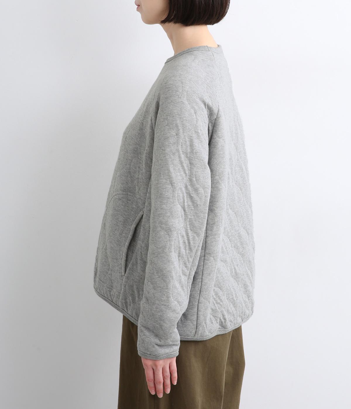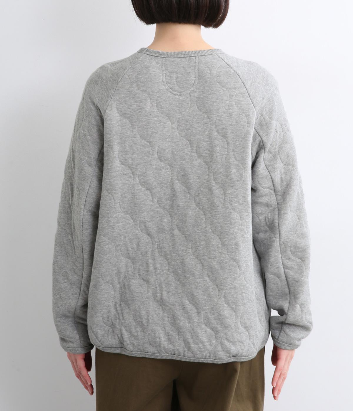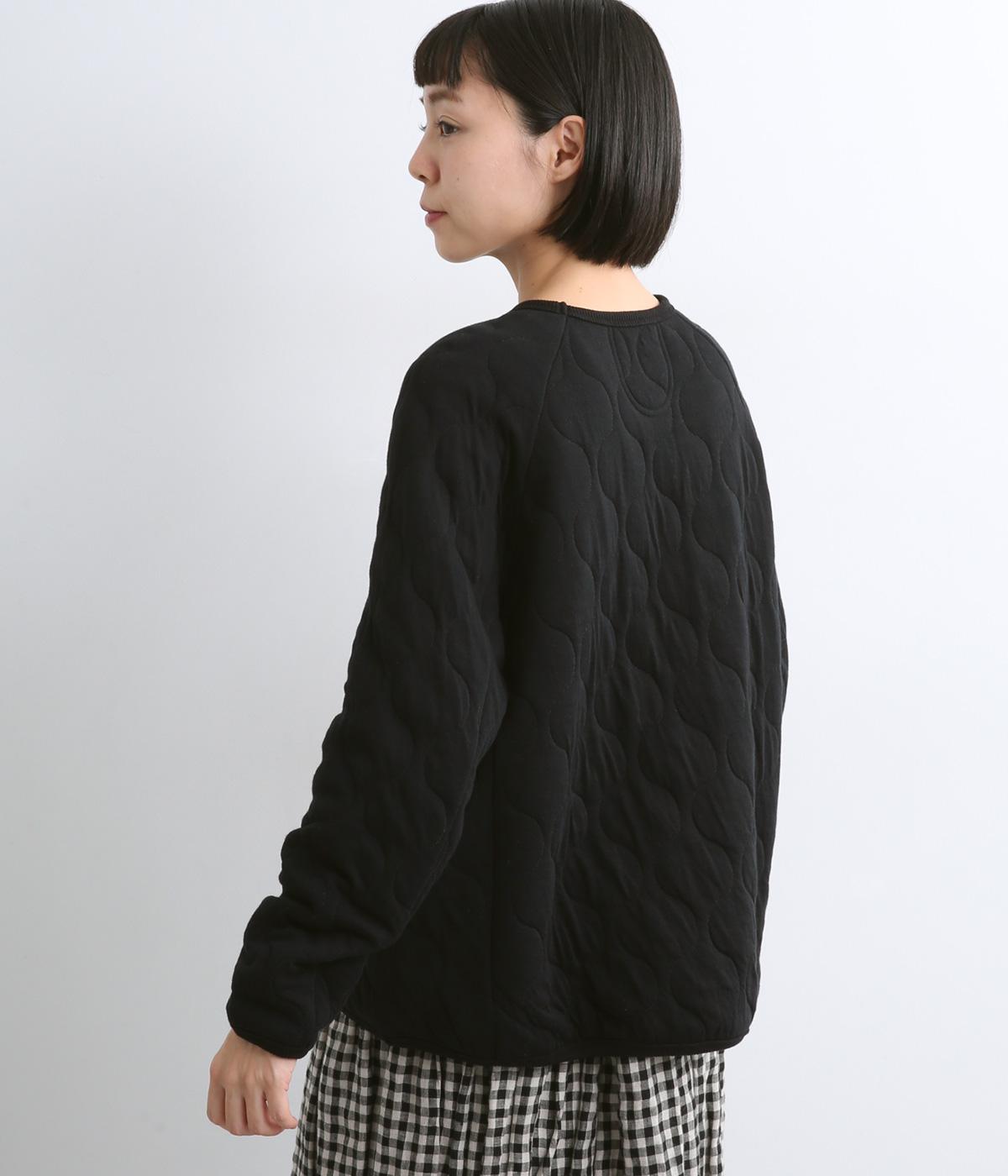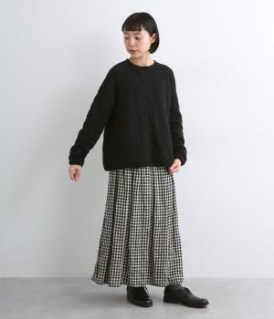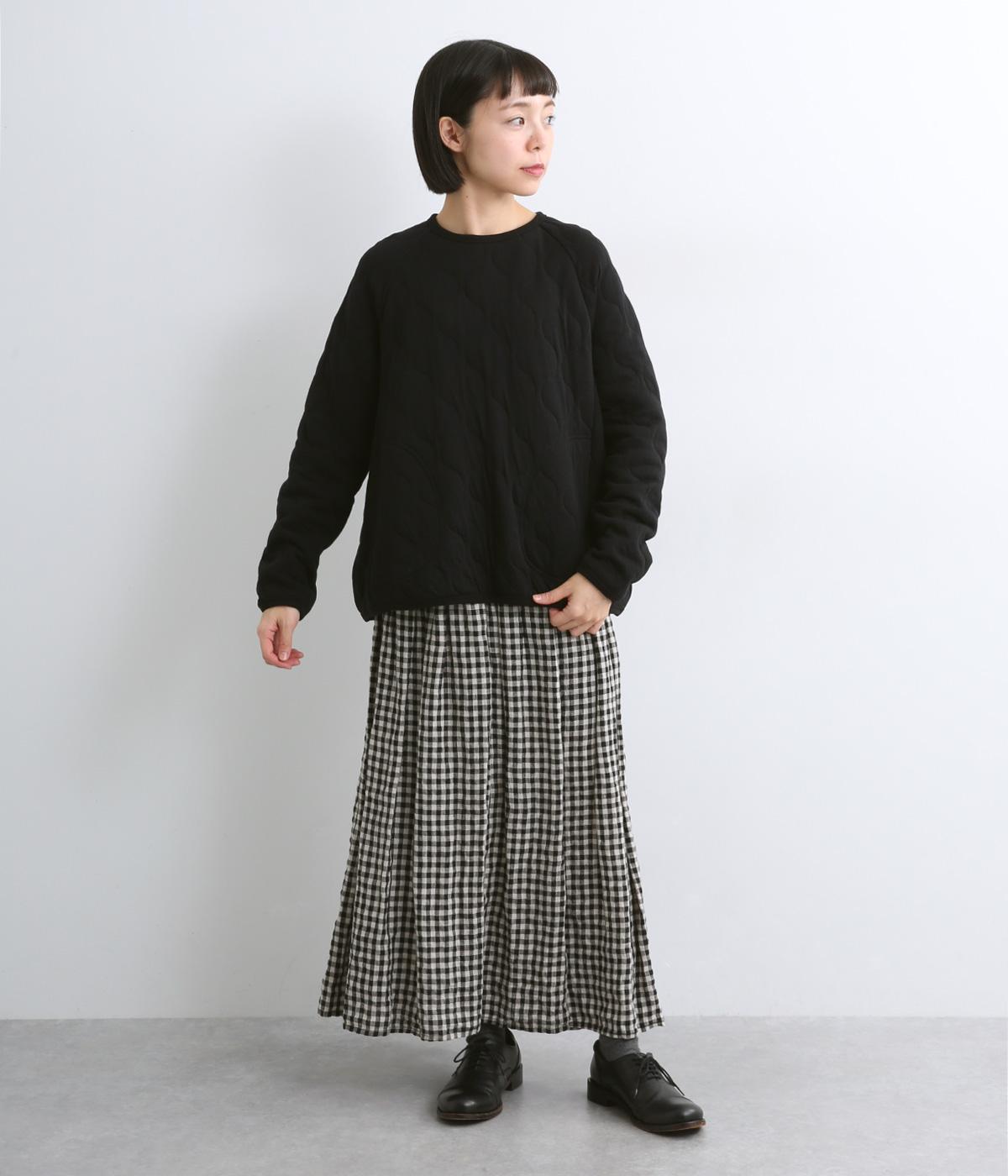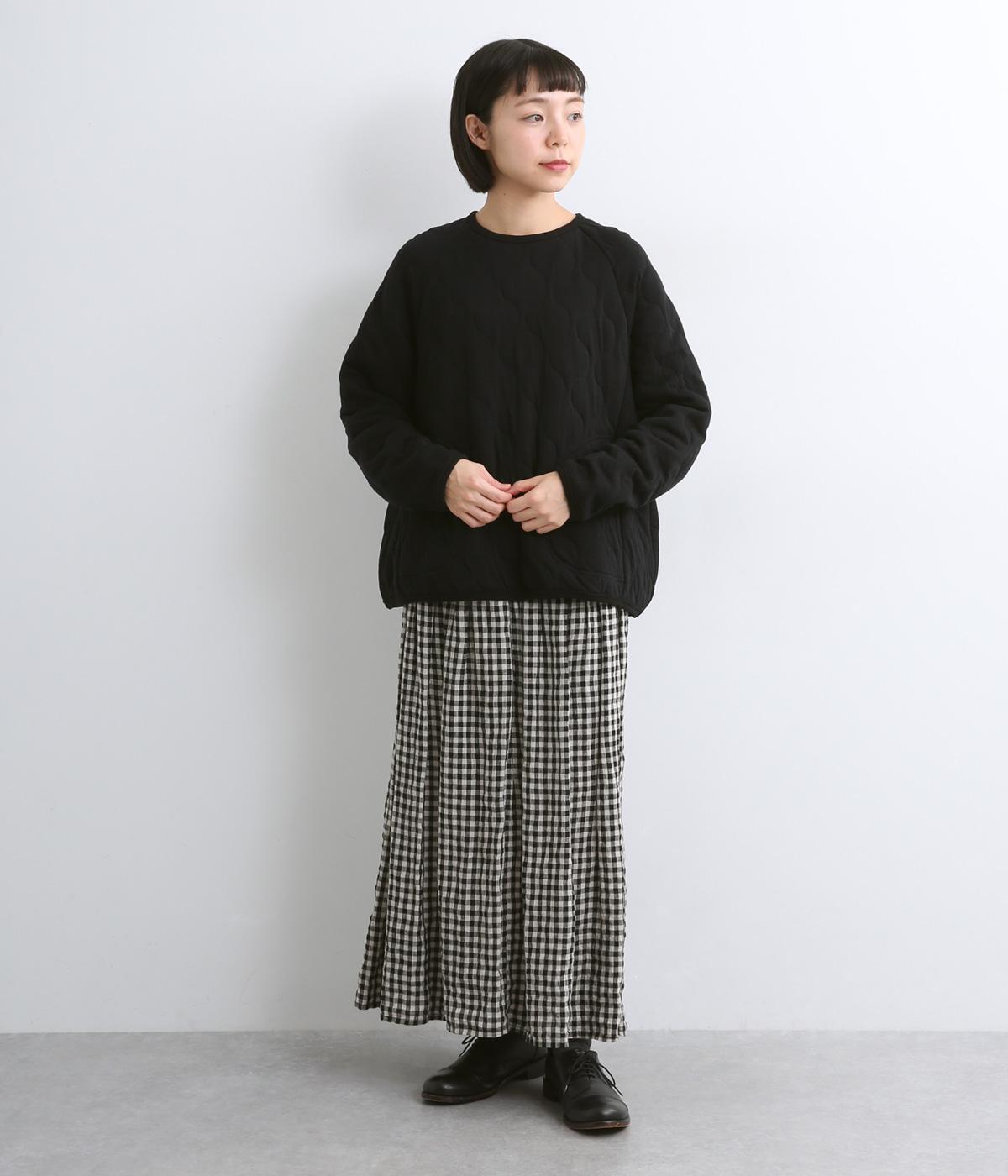 波打つステッチが特徴のオニオンキルト柄が、シンプルなシルエットに表情を添える一枚。肩の切り替えをなくしたラグランスリーブ仕様で動きやすく、リブ仕上げの襟や袖口、裾が、全体を引き締めてくれます。やさしい素材感とデザインが調和した、デイリーに使いやすいプルオーバーです。