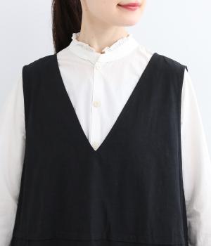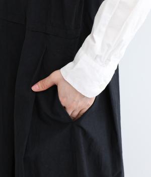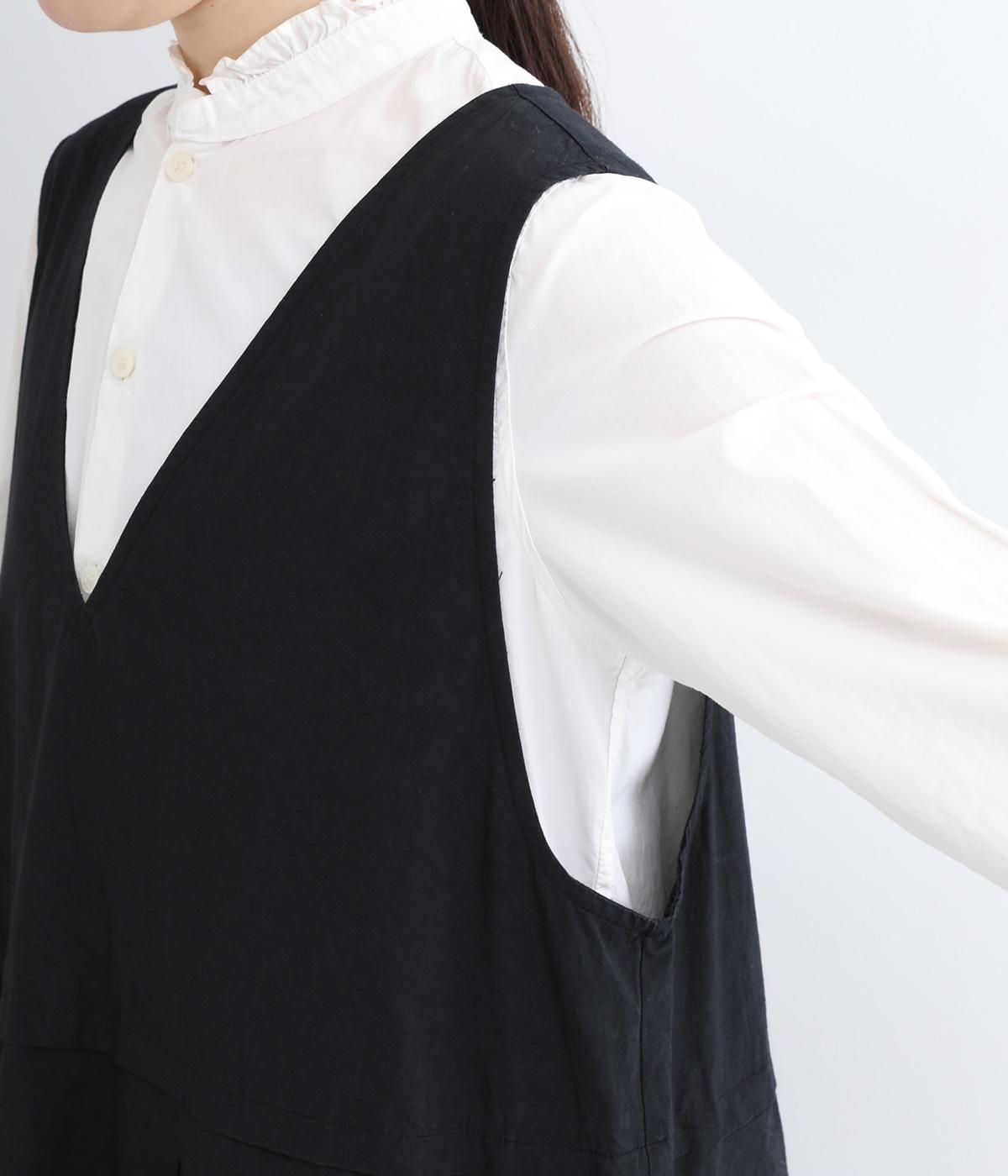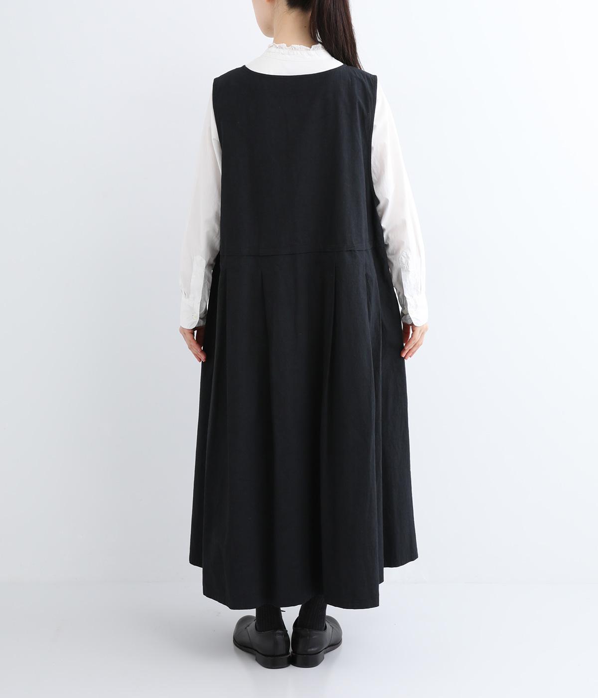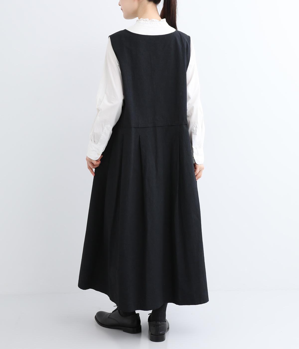 ウエスト切り替え位置にタックをほどこし、ふわりとしたシルエットがフェミニンなジャンパースカート。深めのVネックと広めに開けたアームホールが着脱のしやすさをアップさせます。スタイリング次第でカジュアルにもきれいめにも着こなせ、シーズンレスにたのしめる一着です。