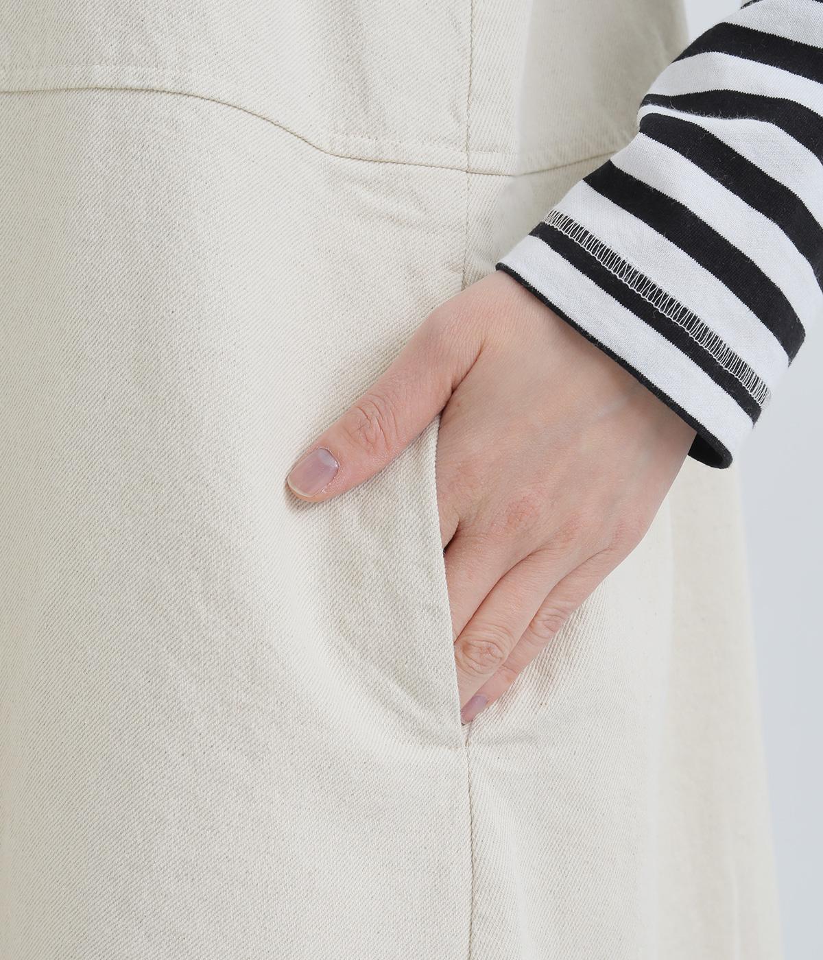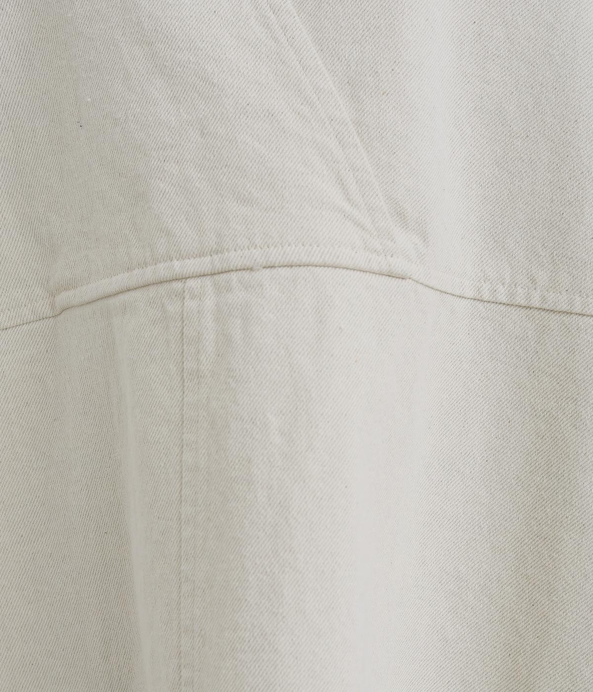 ナチュラルな風合いが心地よいコットンリネンデニムを使用。タフなコシ感を残しながらも着用初期からはきやすく、使い勝手のいい中厚手生地でロングシーズン活躍します。