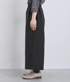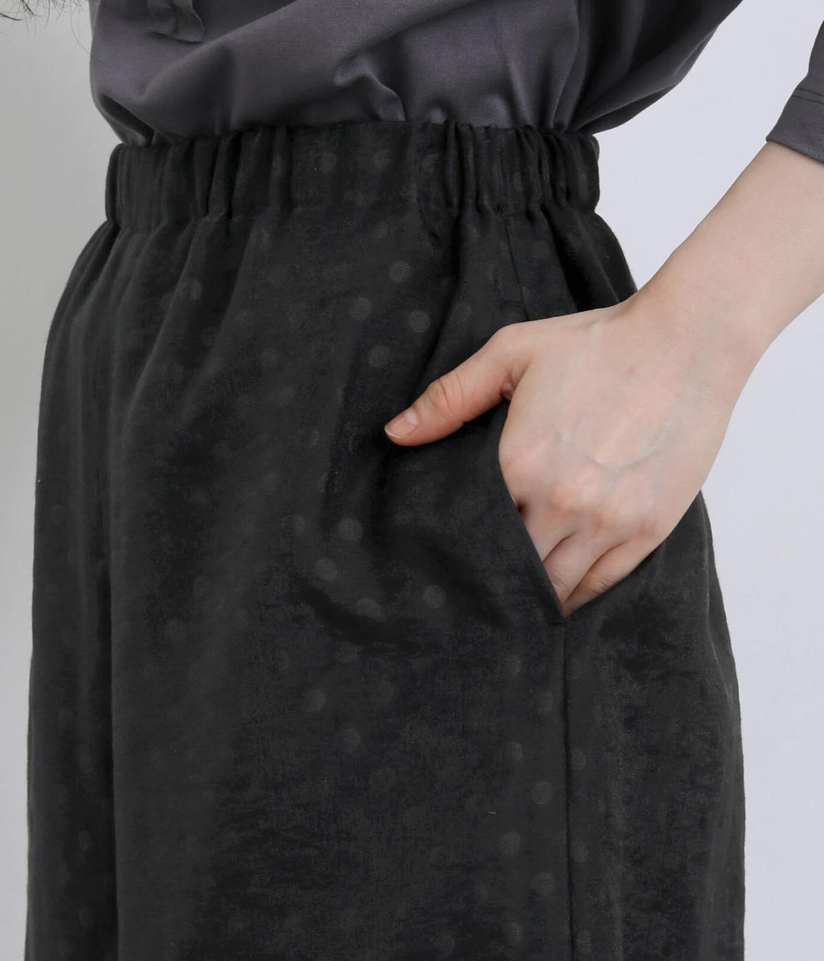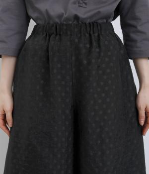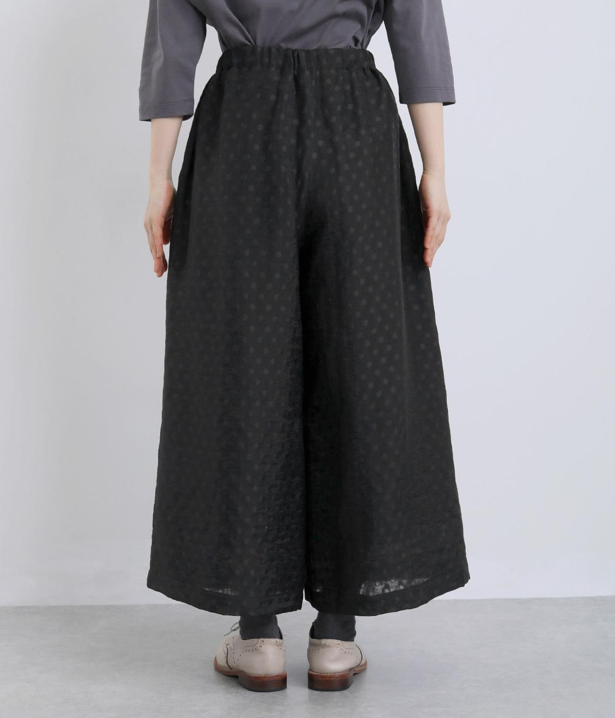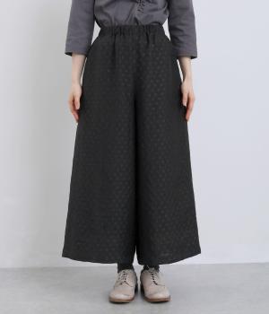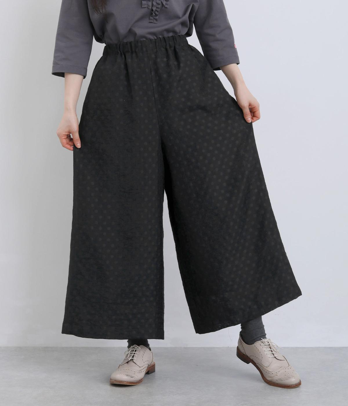 繊細なジャカード織りのドット柄が目を引くワイドパンツです。さりげない光沢と立体感のある表情が、シンプルなデザインに奥行きを添えます。ゆったりと広がるワイドシルエットで、リラックスしたはき心地に。やや短めの丈が足元を軽やかに見せ、コーディネートに抜け感をプラスします。