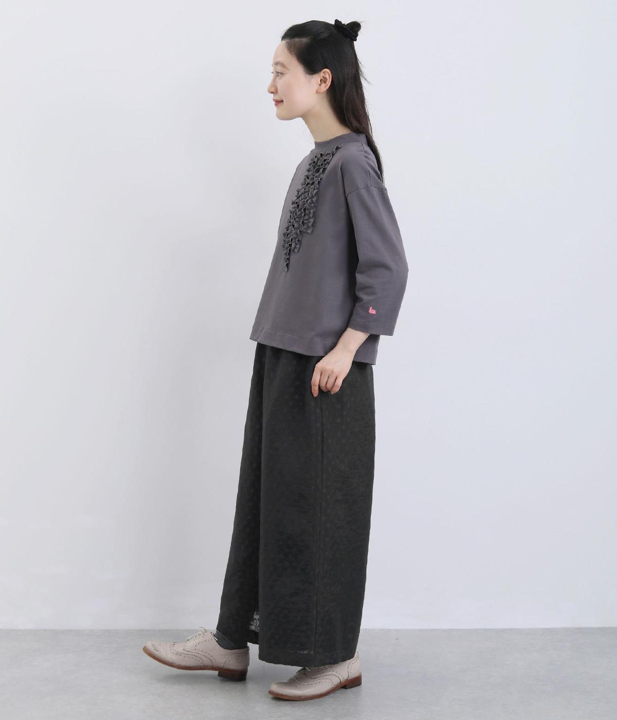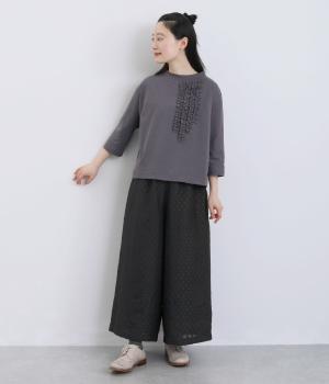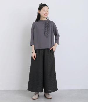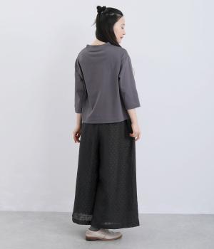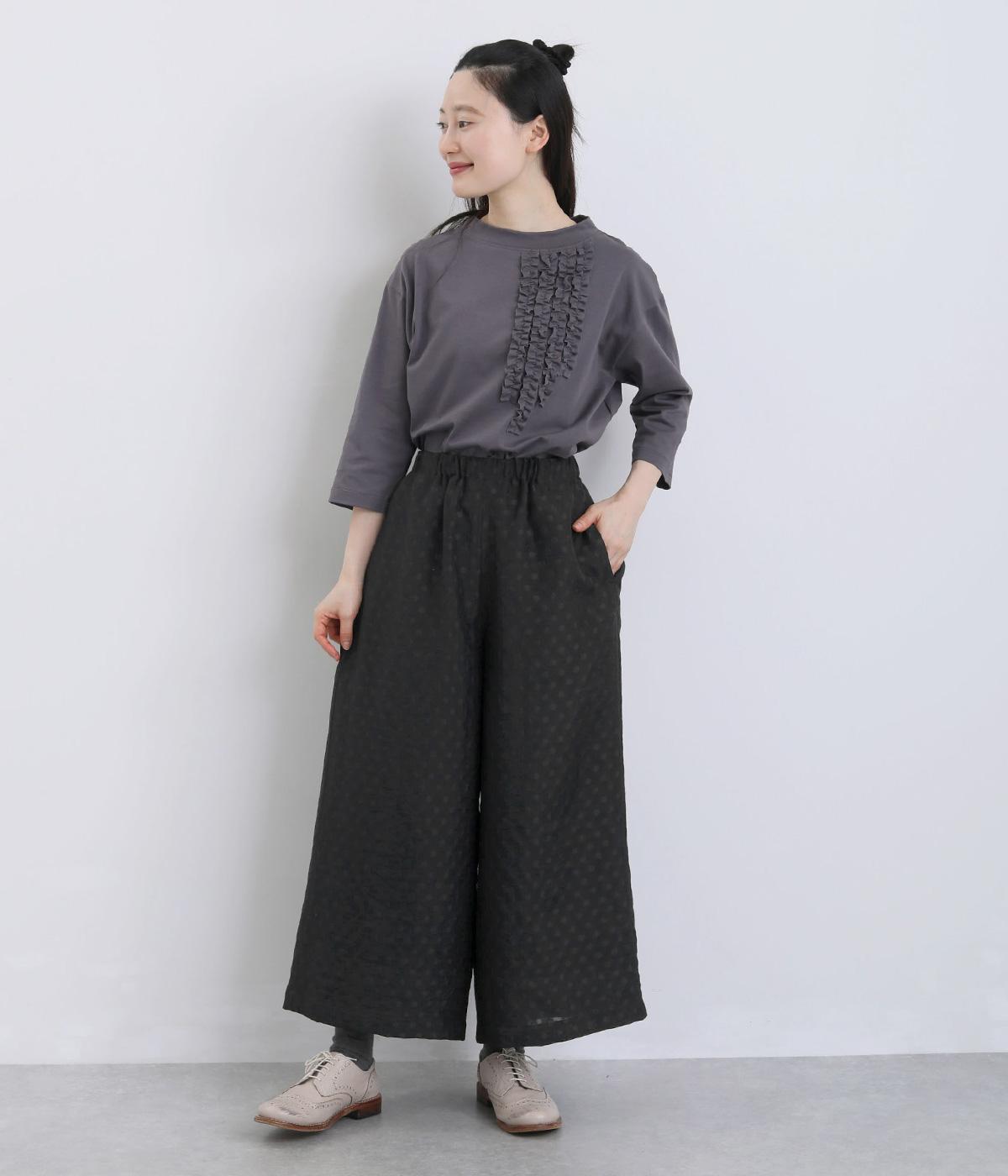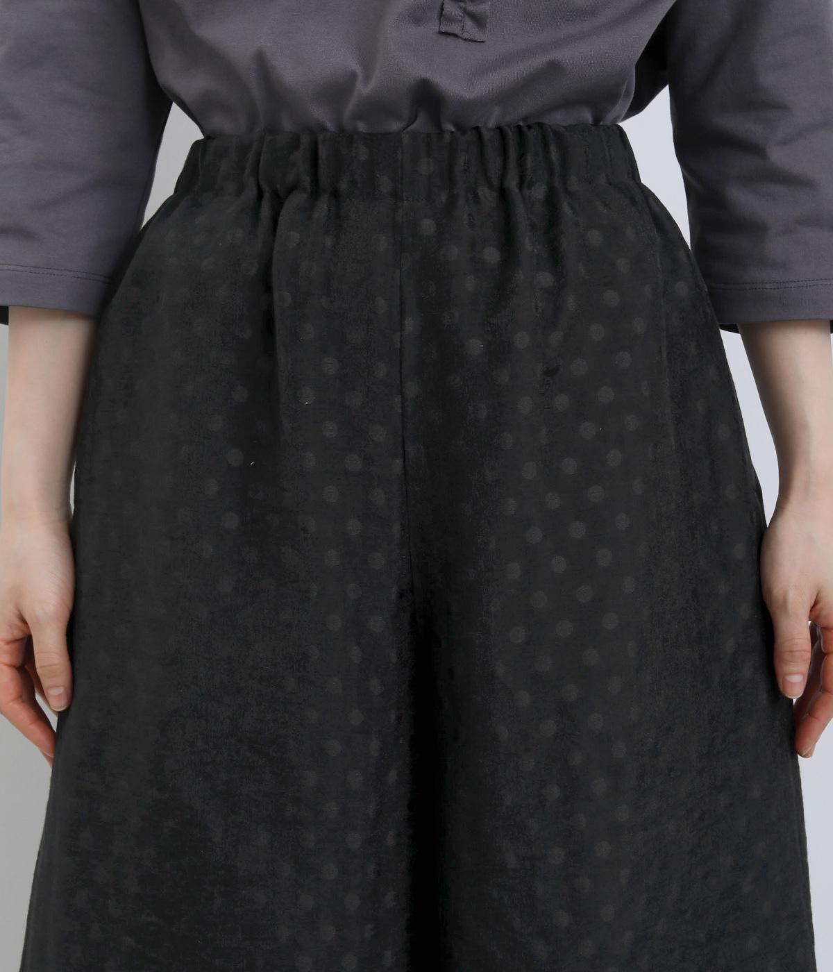 繊細なジャカード織りのドット柄が目を引くワイドパンツです。さりげない光沢と立体感のある表情が、シンプルなデザインに奥行きを添えます。ゆったりと広がるワイドシルエットで、リラックスしたはき心地に。やや短めの丈が足元を軽やかに見せ、コーディネートに抜け感をプラスします。
