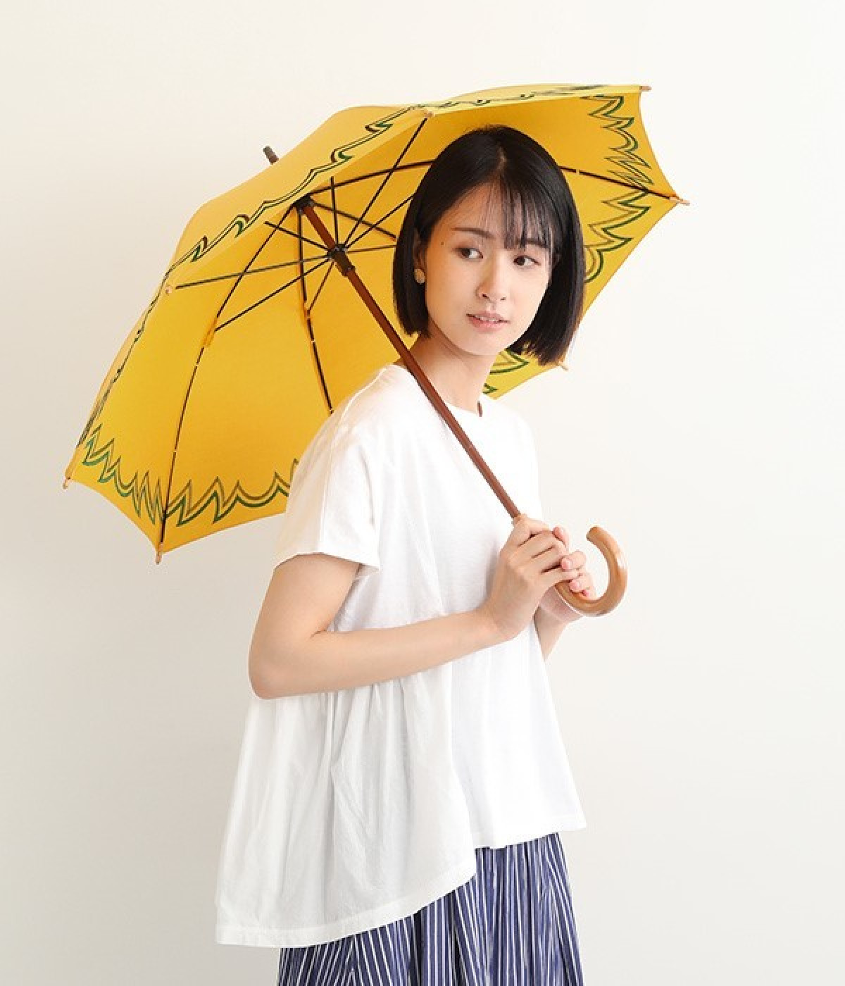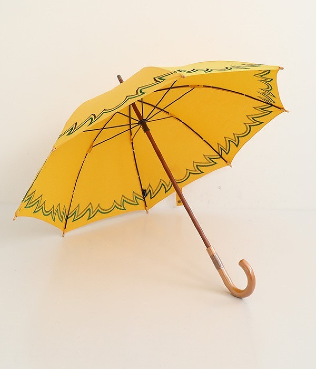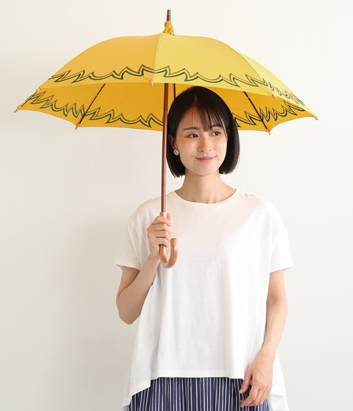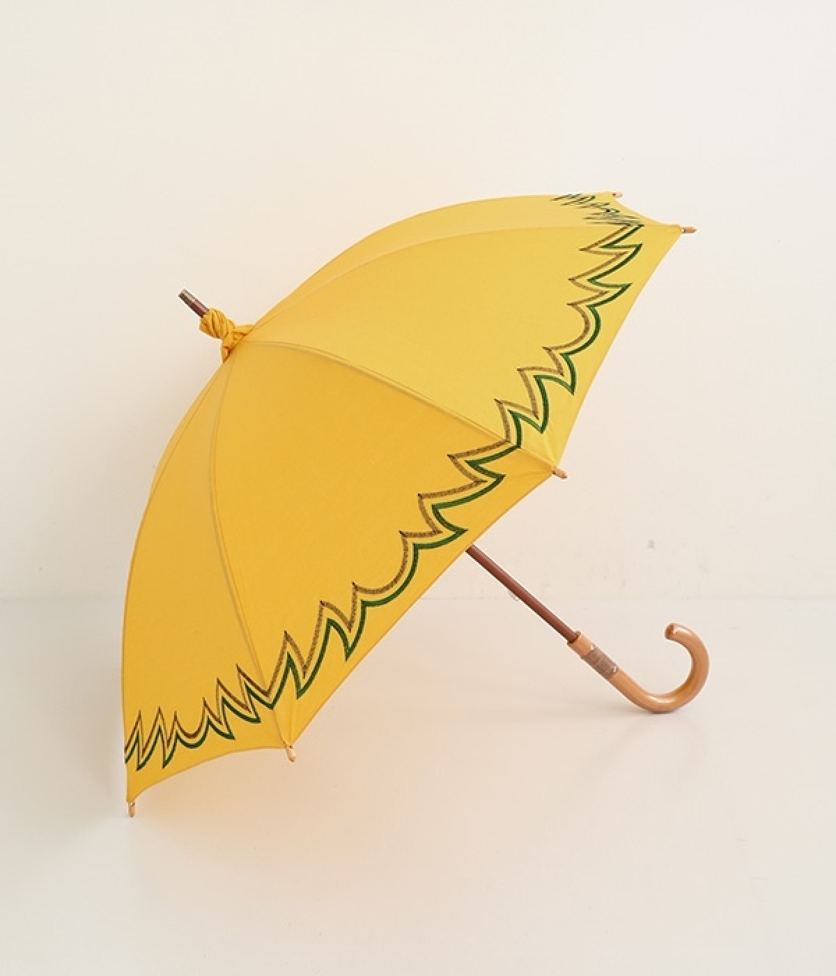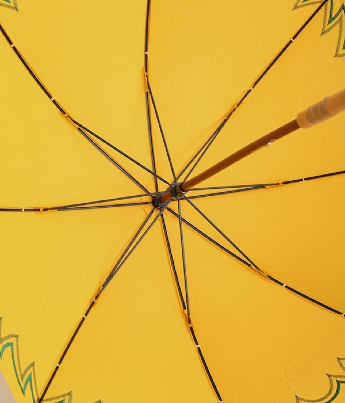 晴雨兼用の刺しゅうデザイン長傘です。印象的でありながらもまとまりのある配色が絶妙で、シンプルだけどお洒落心も満たしてくれるアイテムに。やや小ぶりなサイズで晴れの日でも持ちやすくなっています。同生地が先の方をくるくると包んでデザイン性をプラス。日差しからもしっかりと肌を守り、天候の変わりやすい季節に重宝します。