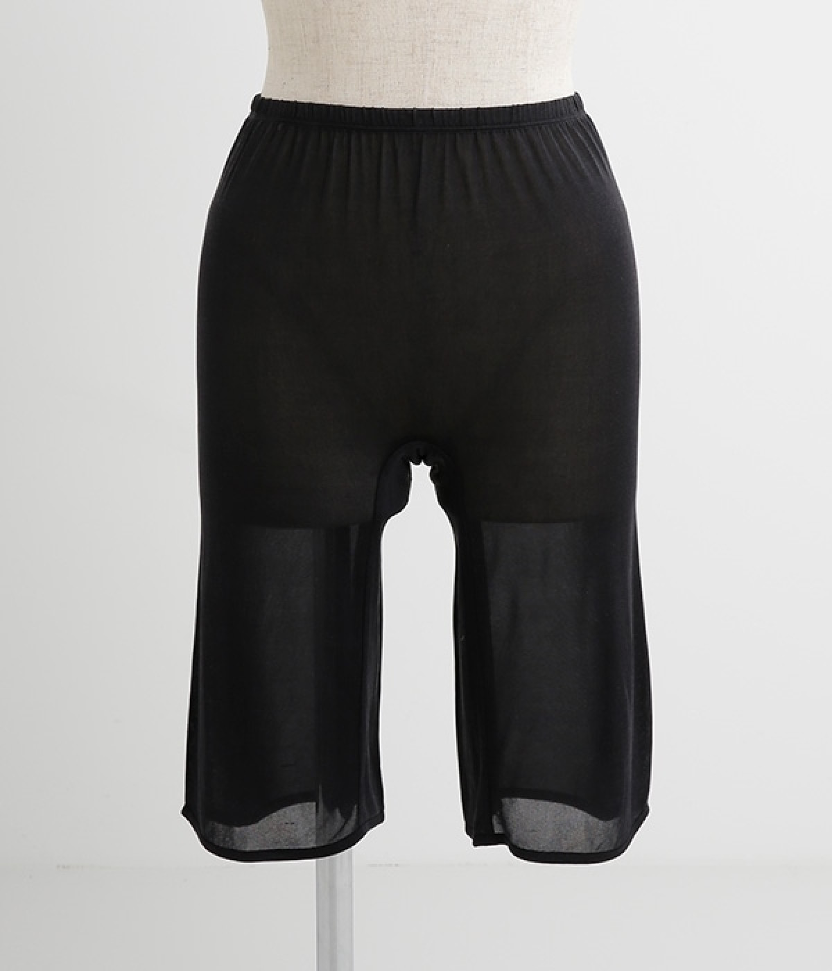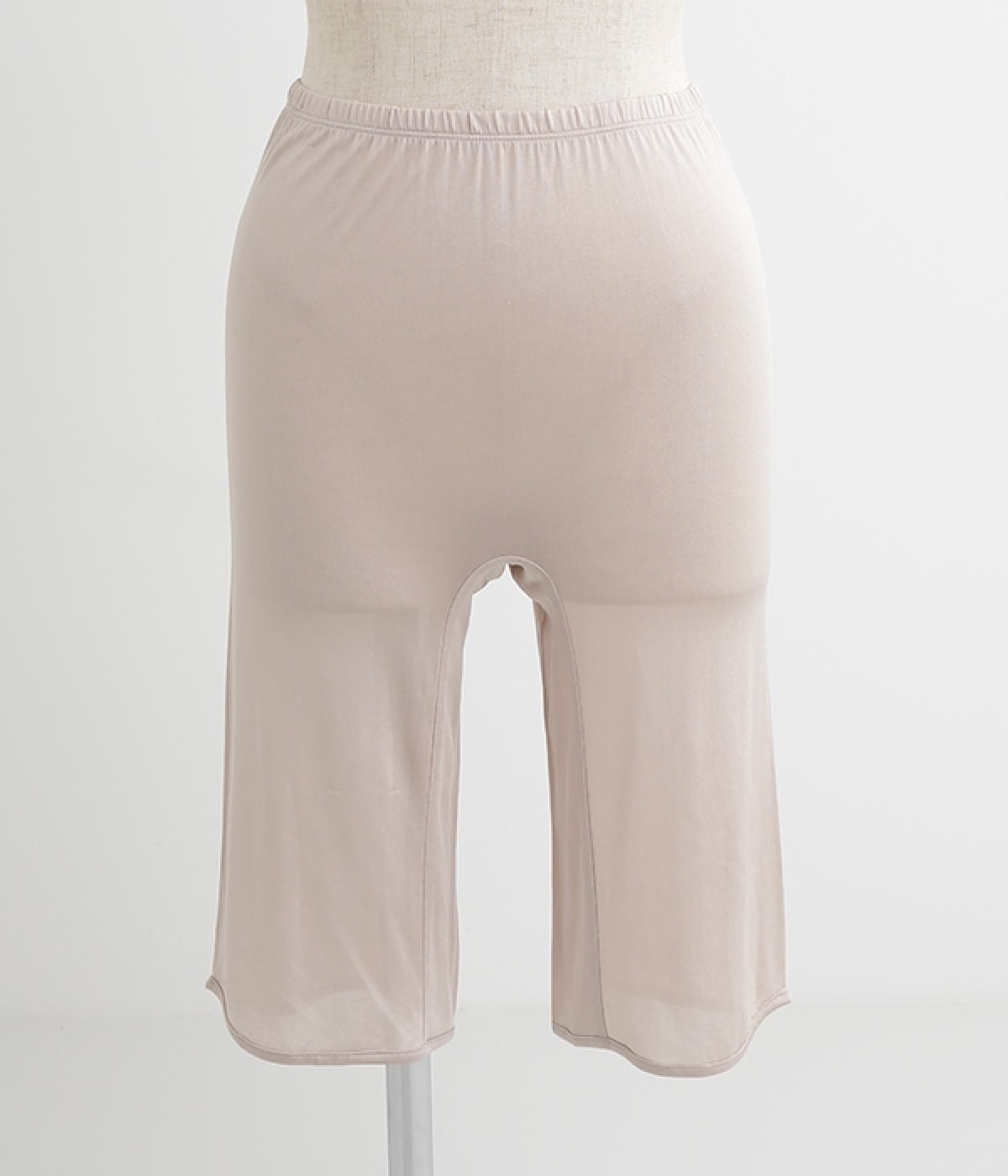なめらかな肌ざわりが魅力の正絹を使用した、五分丈アンダーボトムです。吸湿放湿性に優れているので、汗をかいてもベタつかず、汗ばむ季節も快適に過ごせます。マチ部分は2重なので、ショーツ無しでそのままはいていただくこともできます。縫い糸もシルク糸を使用したとっておきの一枚は、スカートやパンツのアンダーアイテムとして活躍します。