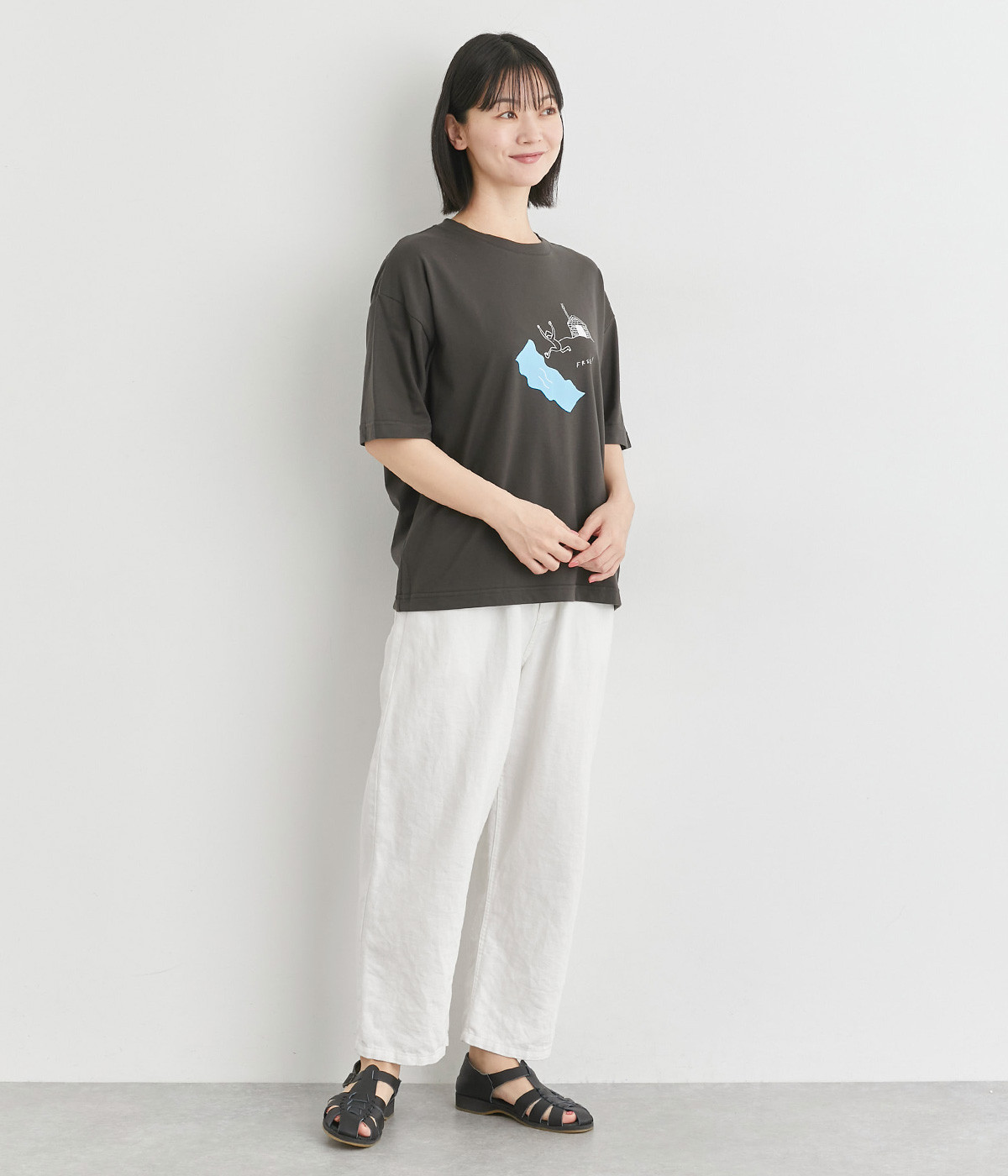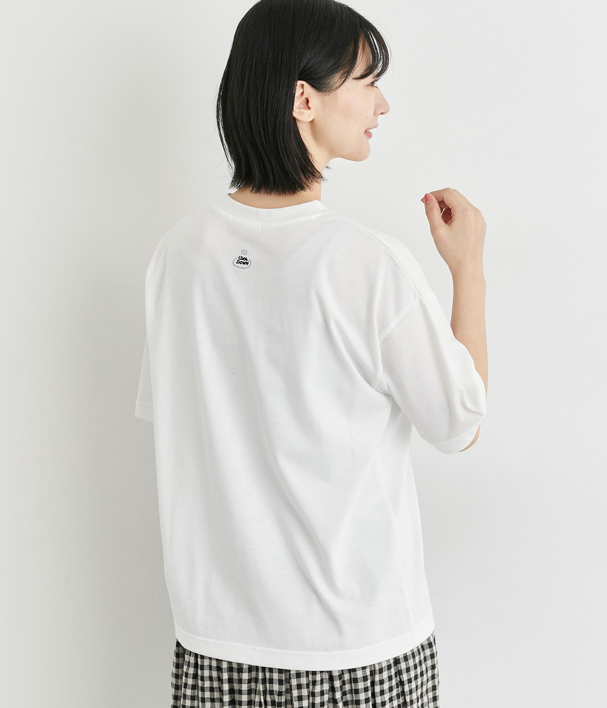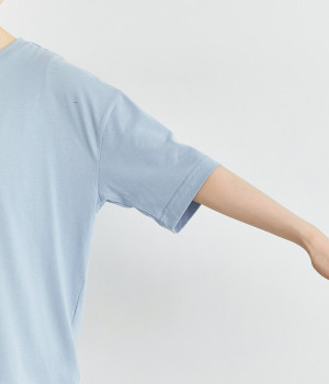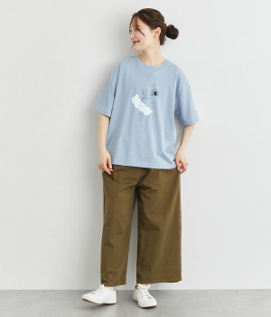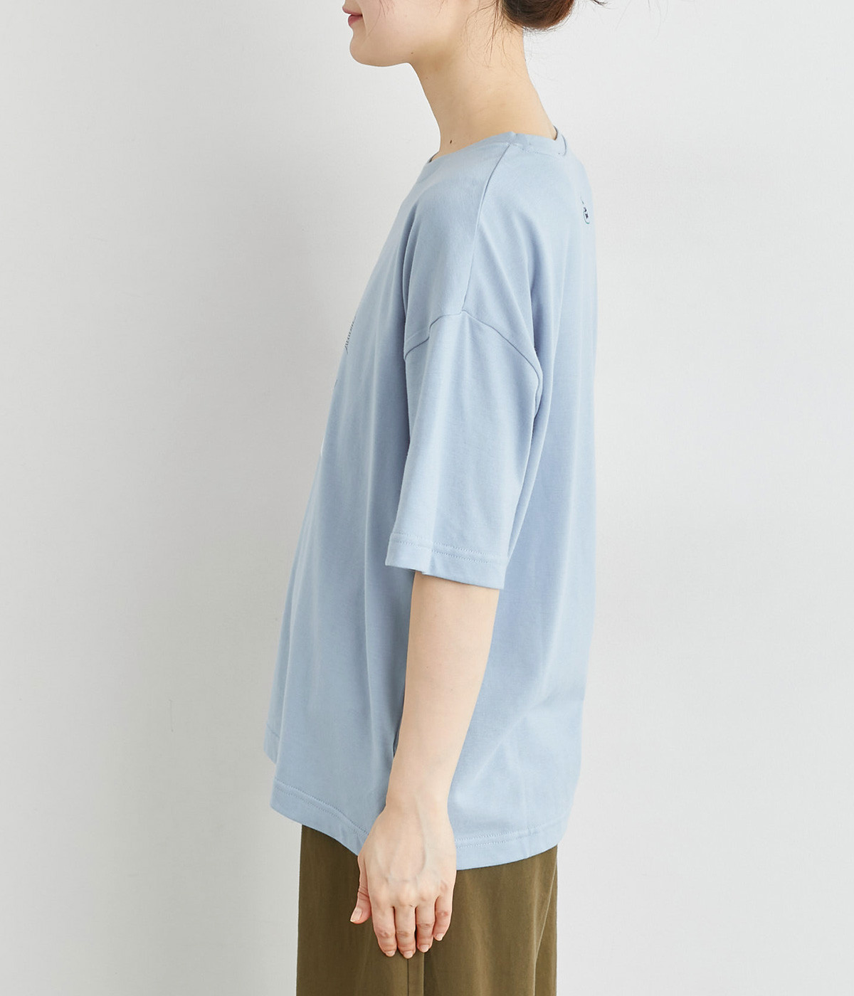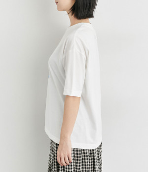 コットンにポリエステルを混ぜてより軽やかに仕上げた天竺生地を使用しています。やわらかで伸びも良く、快適な着用感を得られます。
