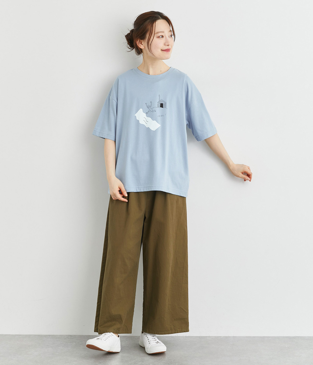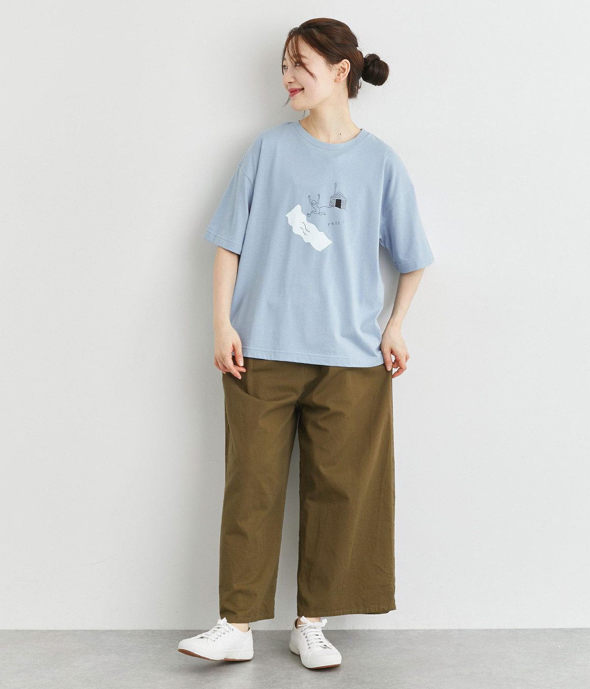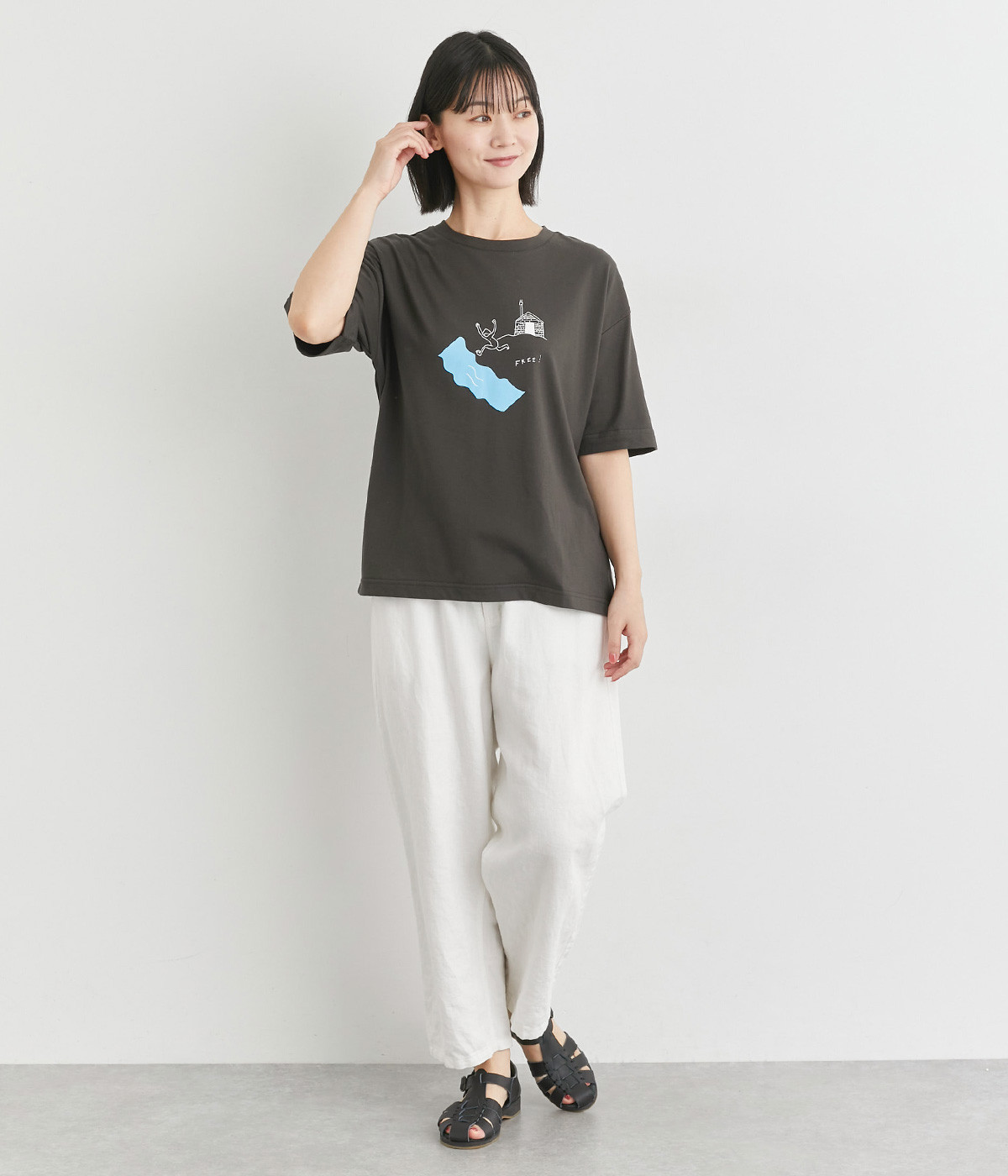 コットンにポリエステルを混ぜてより軽やかに仕上げた天竺生地を使用しています。やわらかで伸びも良く、快適な着用感を得られます。