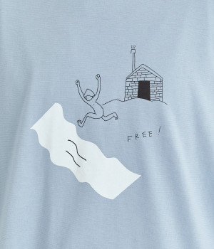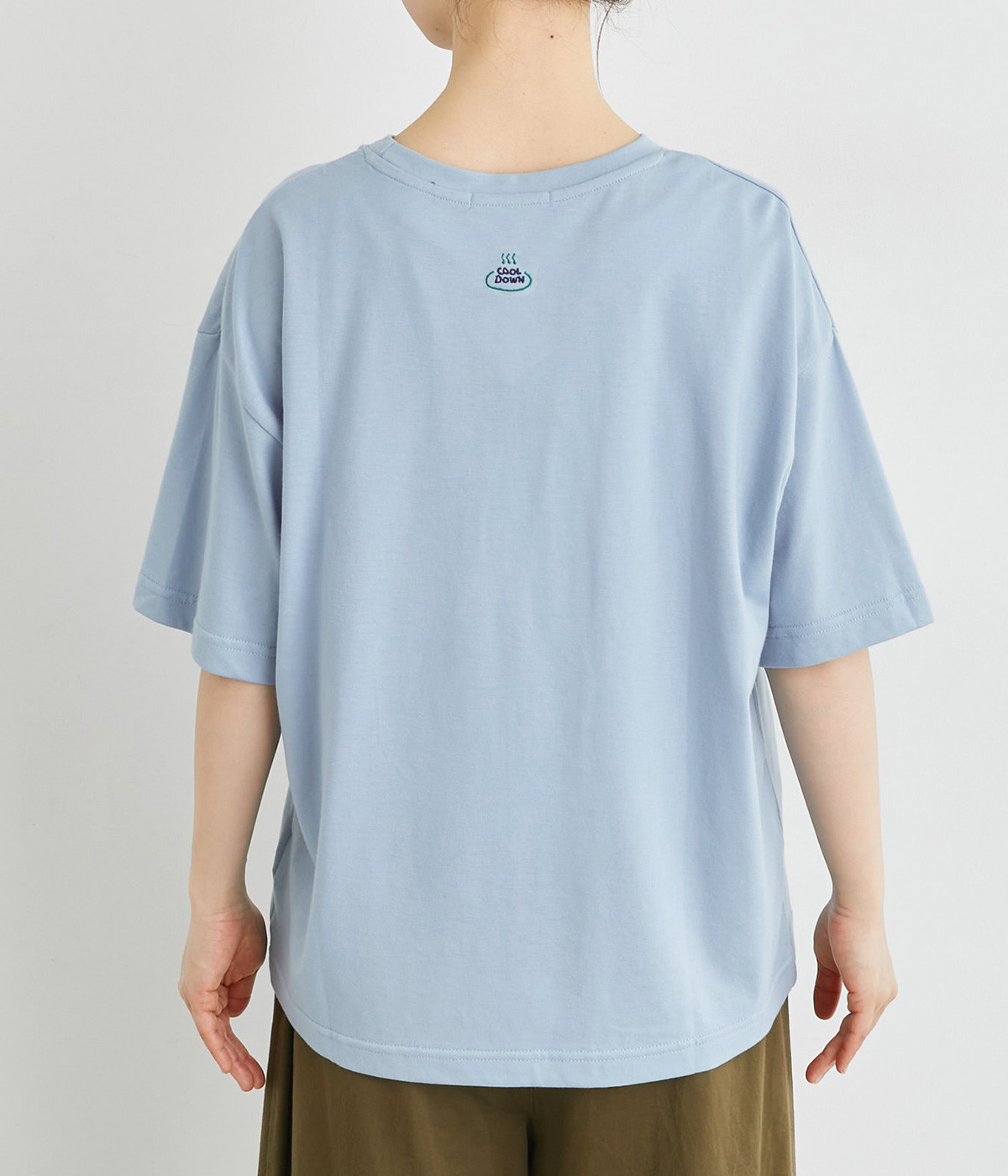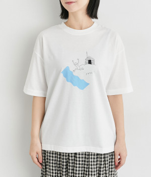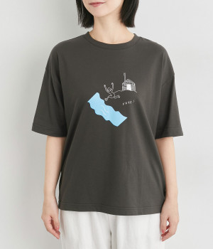 サウナから水風呂(川)へ向かう時の解放感を表したイラストがなんともユニークな一枚。後ろ襟ぐりには「COOL DOWN」と温泉マークの刺しゅう入り。ユニセックスなTシャツでギフトにもおすすめです。