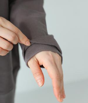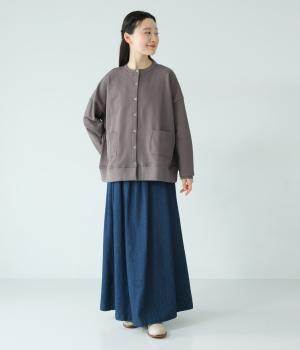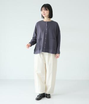 やわらかな伸縮性で快適な着心地のコットン裏毛生地です。ふっくらとほどよい厚みで、しなやかなハリがあります。デイリー使いにぴったりな素材感です。