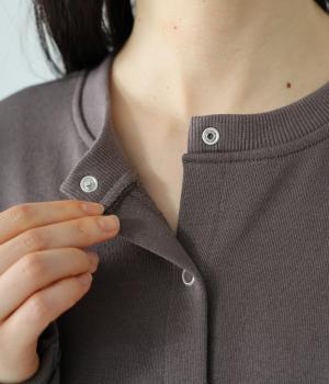 シンプルで着心地のいいカーディガンを、伸びやかな生地でさっと羽織りやすく仕立てました。サークルスナップがカジュアルすぎず、ほどよくきちんとした印象を与えます。便利なポケット付きで、実用性もばっちりです。