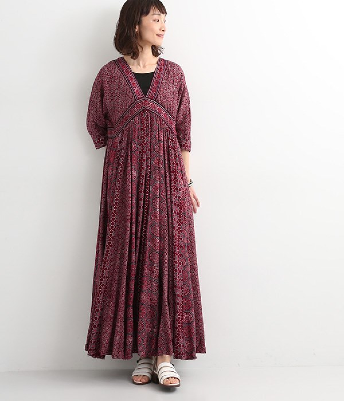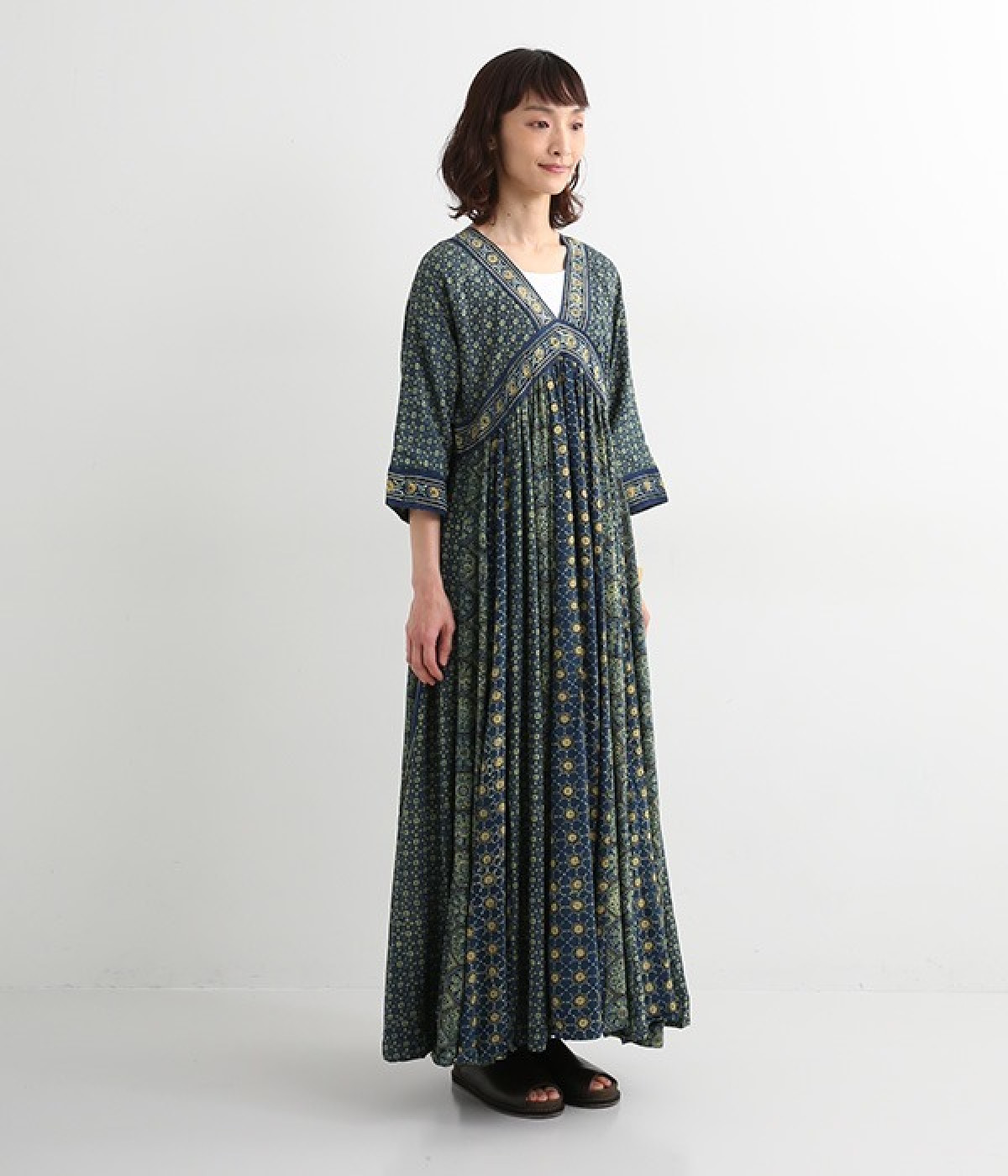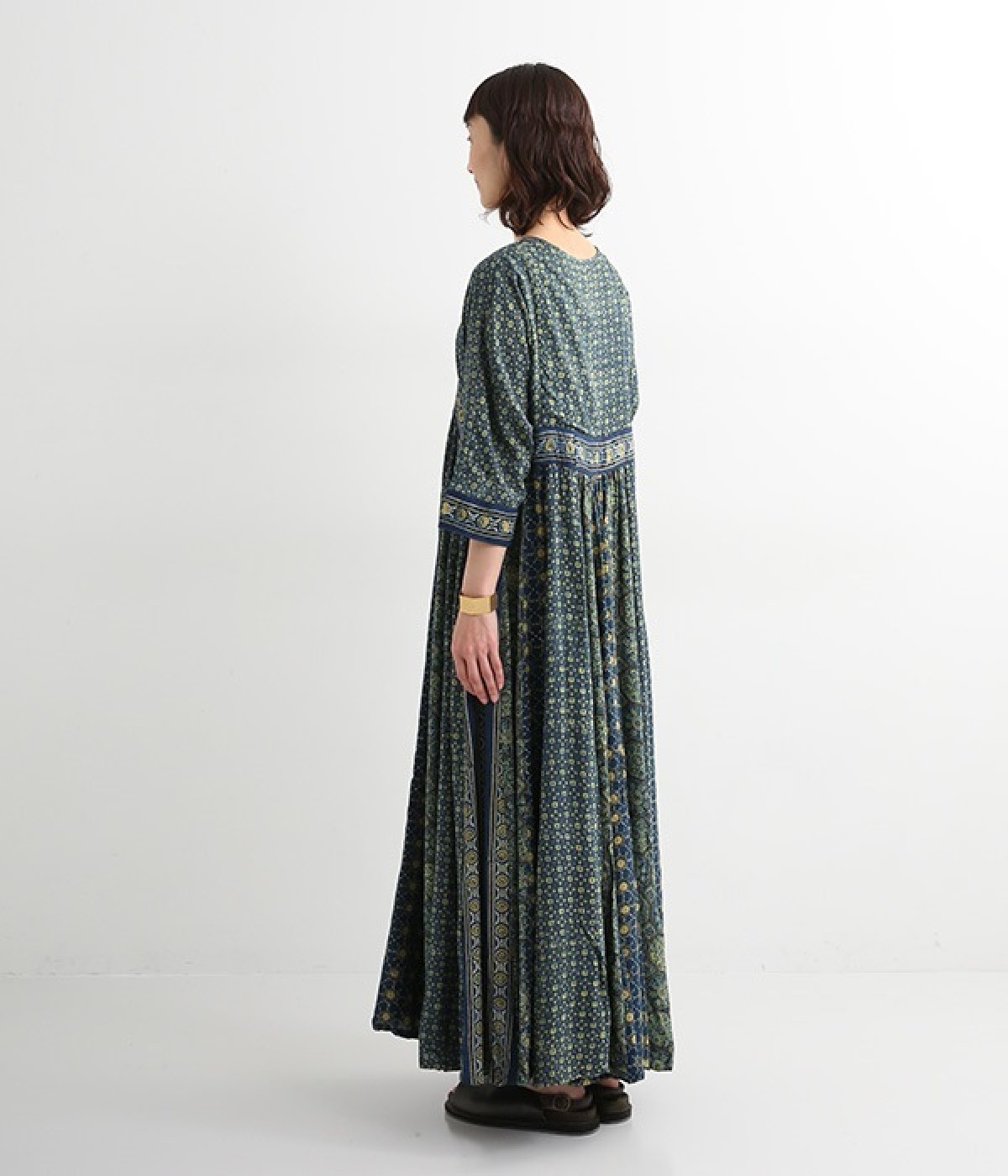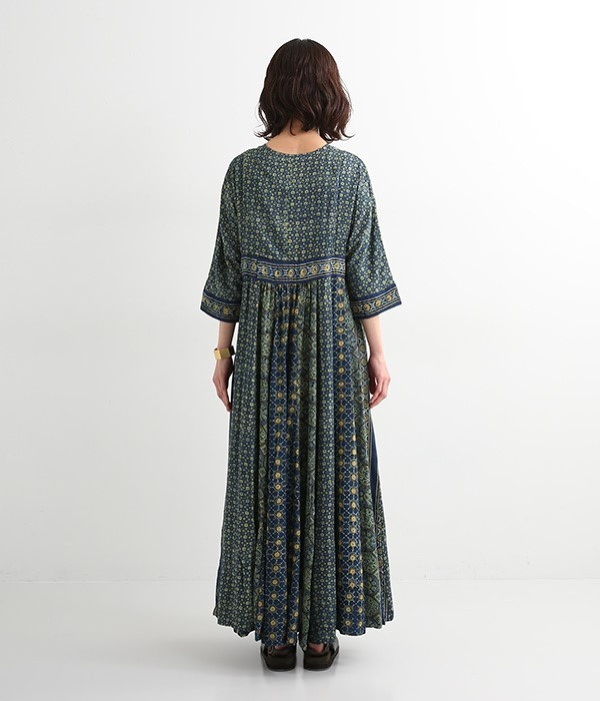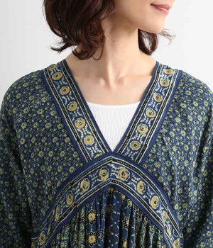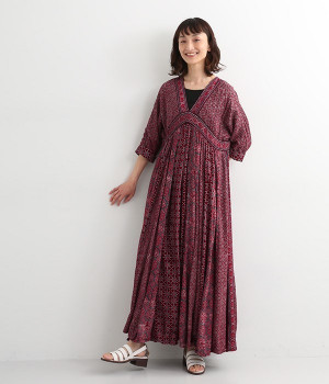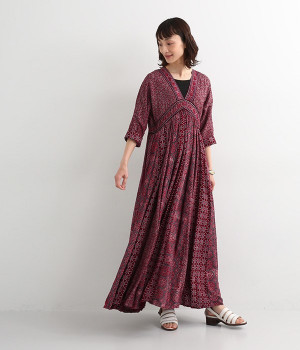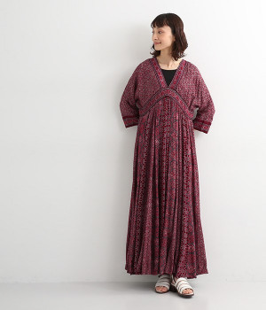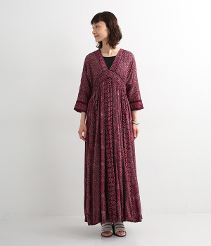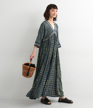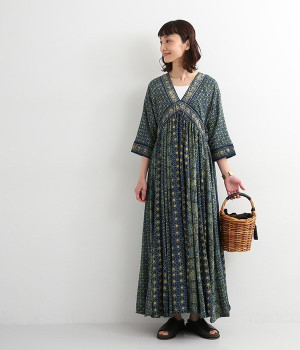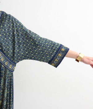 インド西部グジャラート州の村で、パキスタンにルーツをもつイスラム教の部族によって作られているアジャラクプリント。自然に寄り添うインドの伝統的な技法を用いたワンピースです。一枚一枚、プリントの濃淡や色合いに違いがあり、手仕事ならではの特別な魅力が詰まったテキスタイル。なめらかな落ち感があるレーヨンで仕立てており、ボリュームがありつつもすっきりと着こなせます。