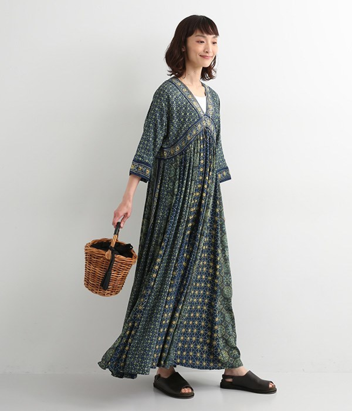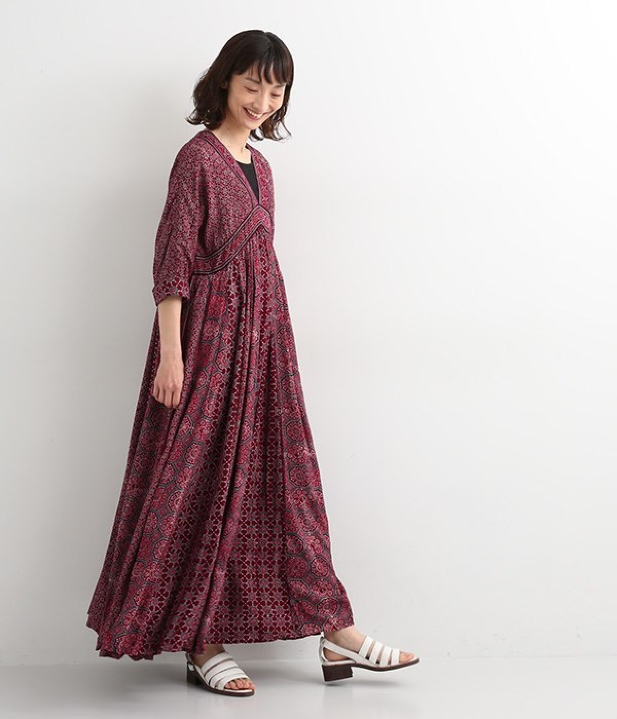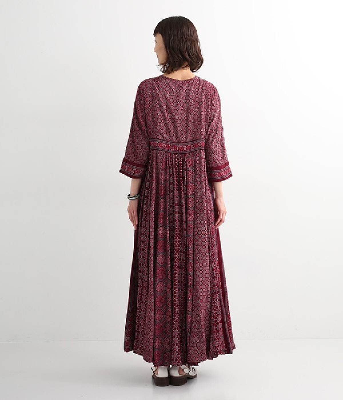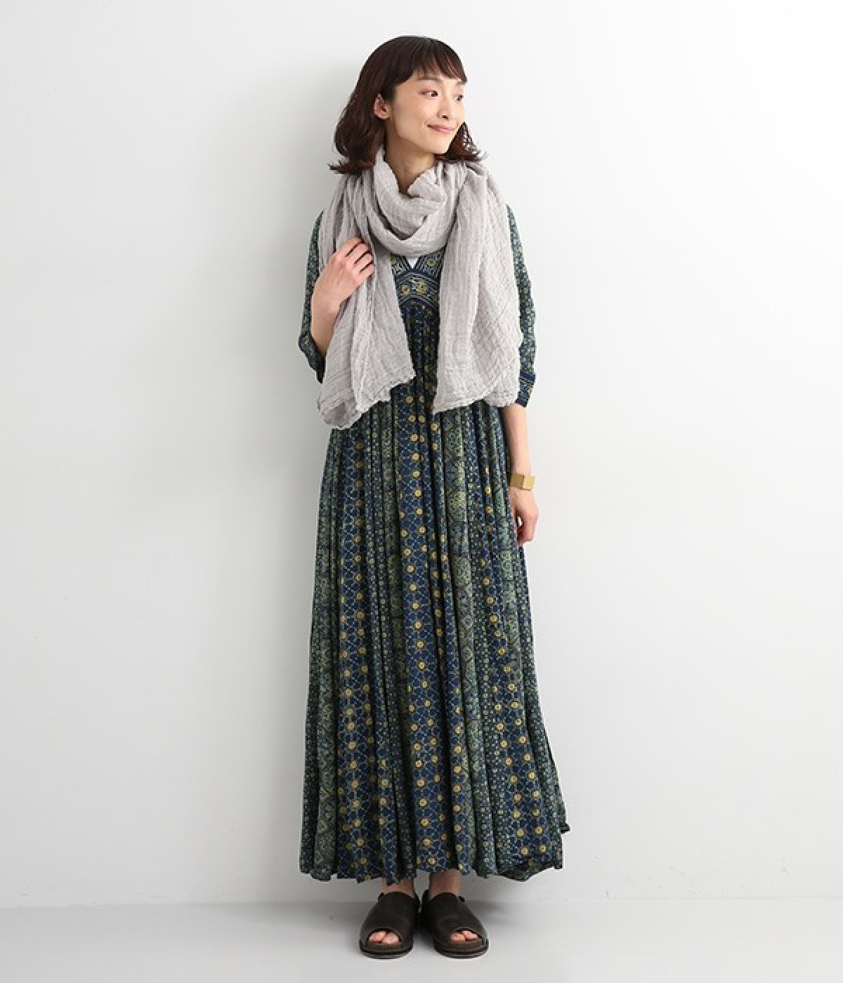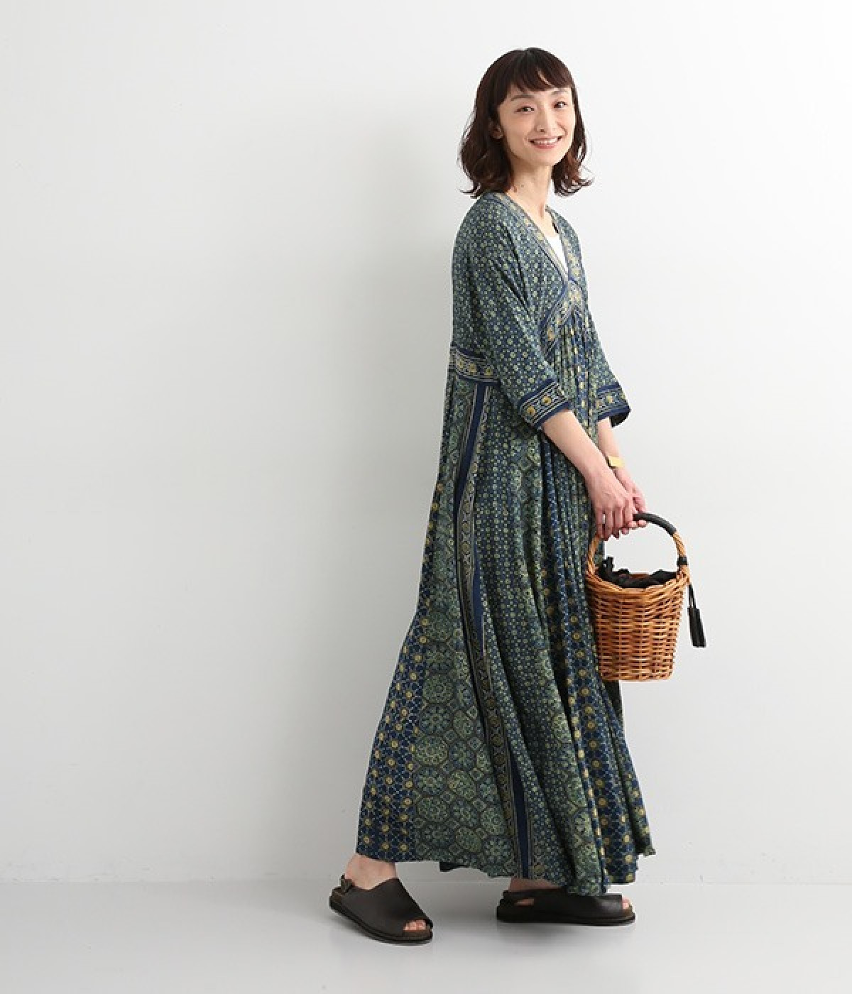インド西部グジャラート州の村で、パキスタンにルーツをもつイスラム教の部族によって作られているアジャラクプリント。自然に寄り添うインドの伝統的な技法を用いたワンピースです。一枚一枚、プリントの濃淡や色合いに違いがあり、手仕事ならではの特別な魅力が詰まったテキスタイル。なめらかな落ち感があるレーヨンで仕立てており、ボリュームがありつつもすっきりと着こなせます。