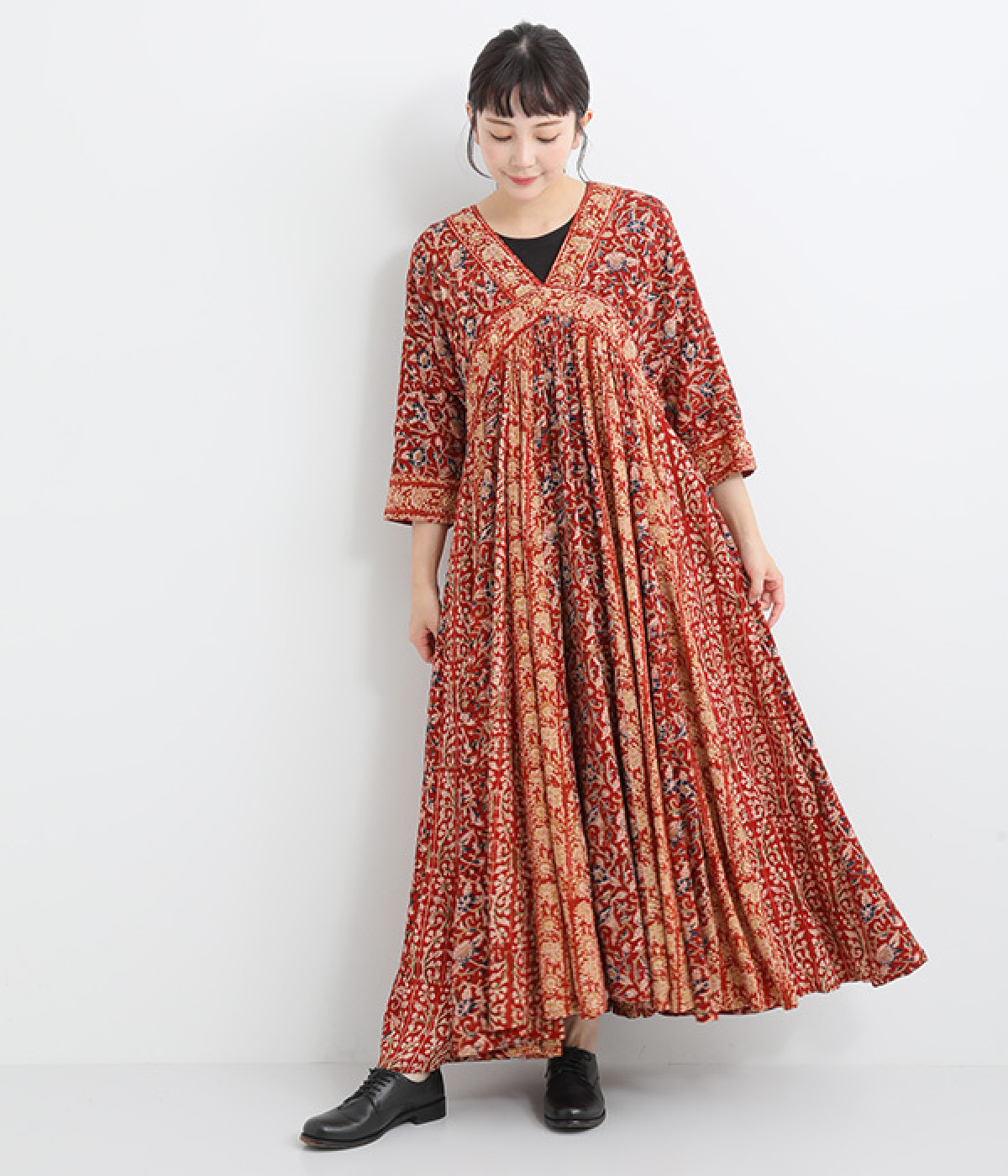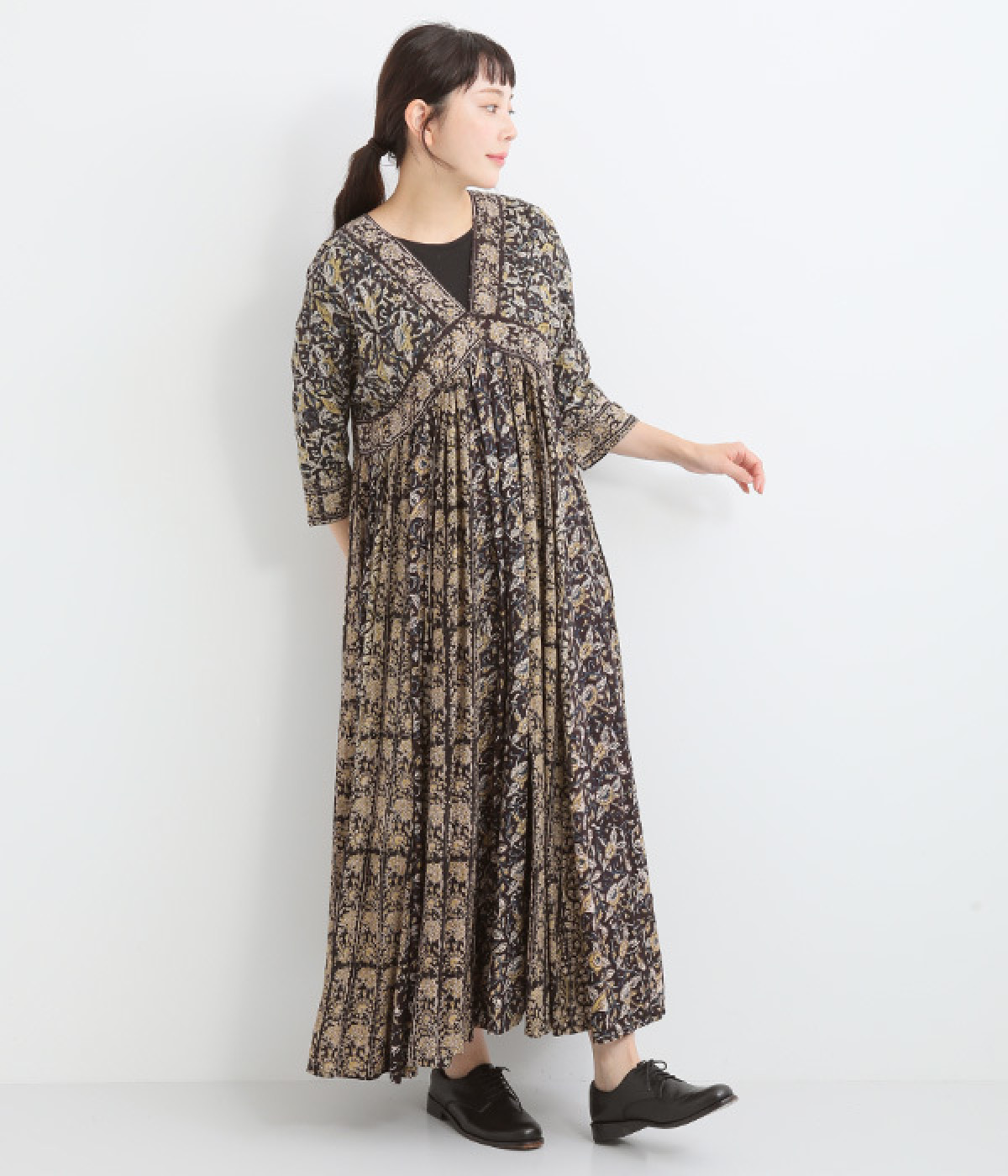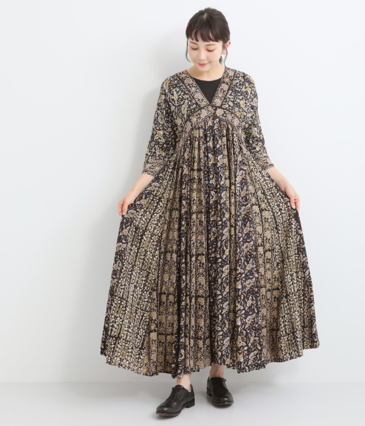 大人っぽさを感じる繊細なエスニックフラワープリント