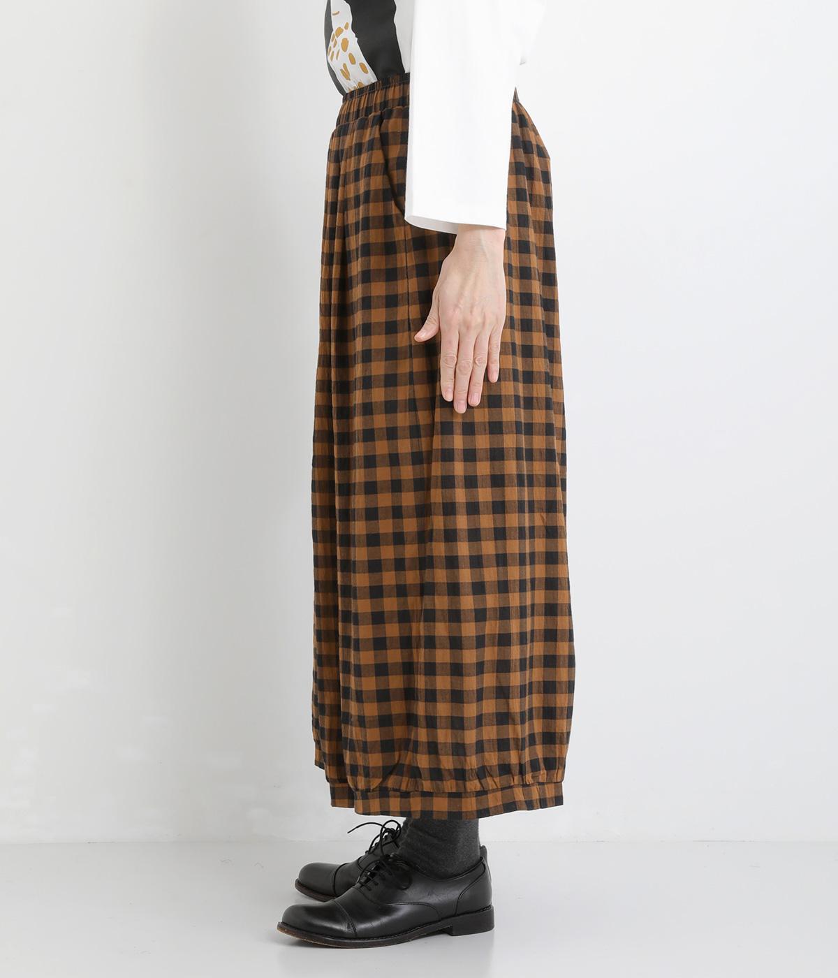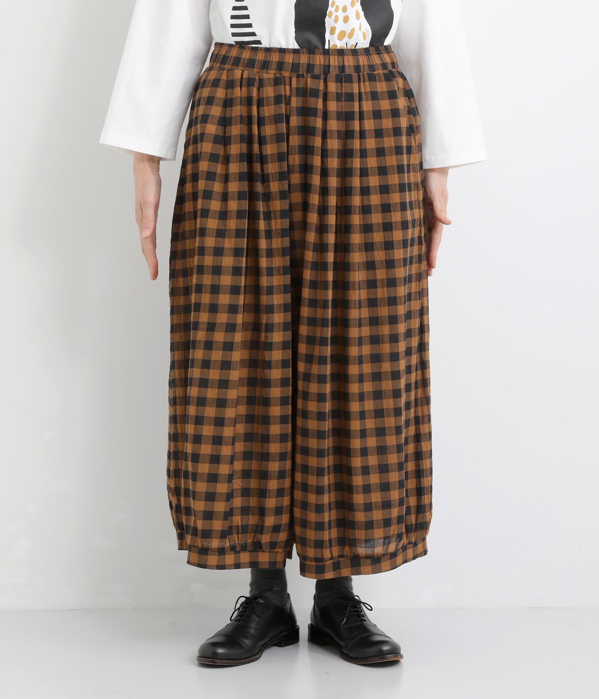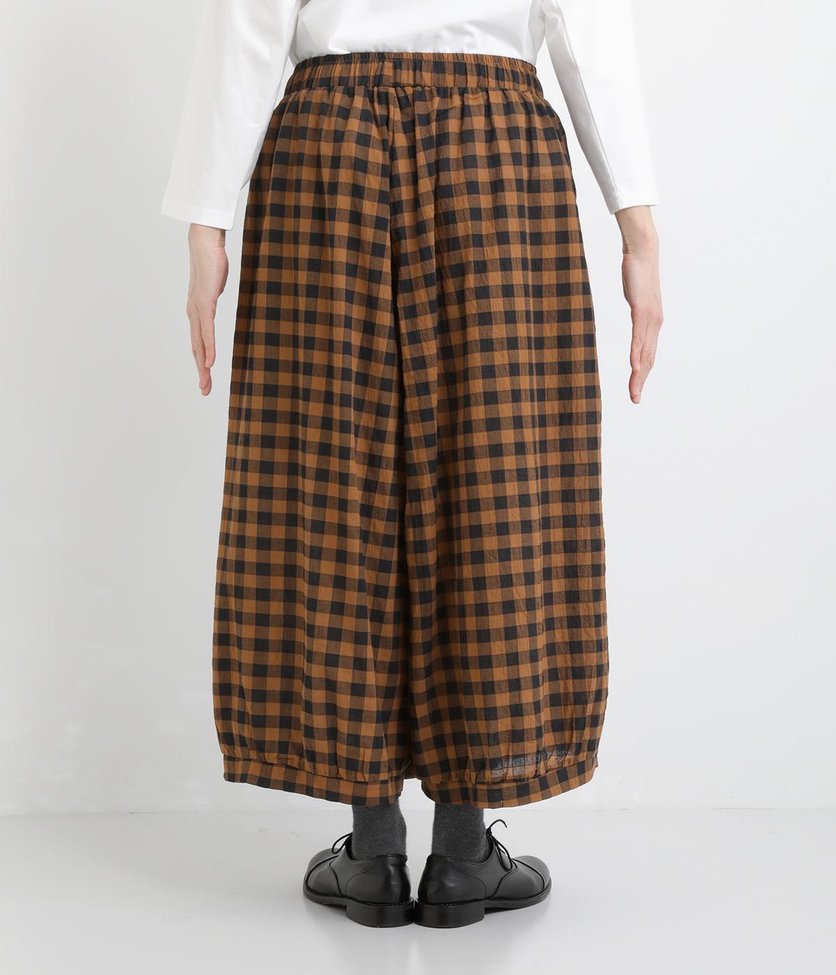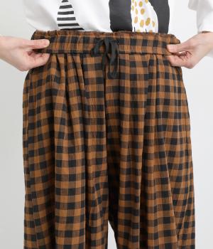 ふんわりシルエットのパンツを、カジュアルなギンガムチェックで仕立てました。ナチュラルな風合いの素材感が落ち着いた雰囲気を演出し、大人の装いになじみます。ウエストゴムデザインでストレスフリーな穿き心地です。