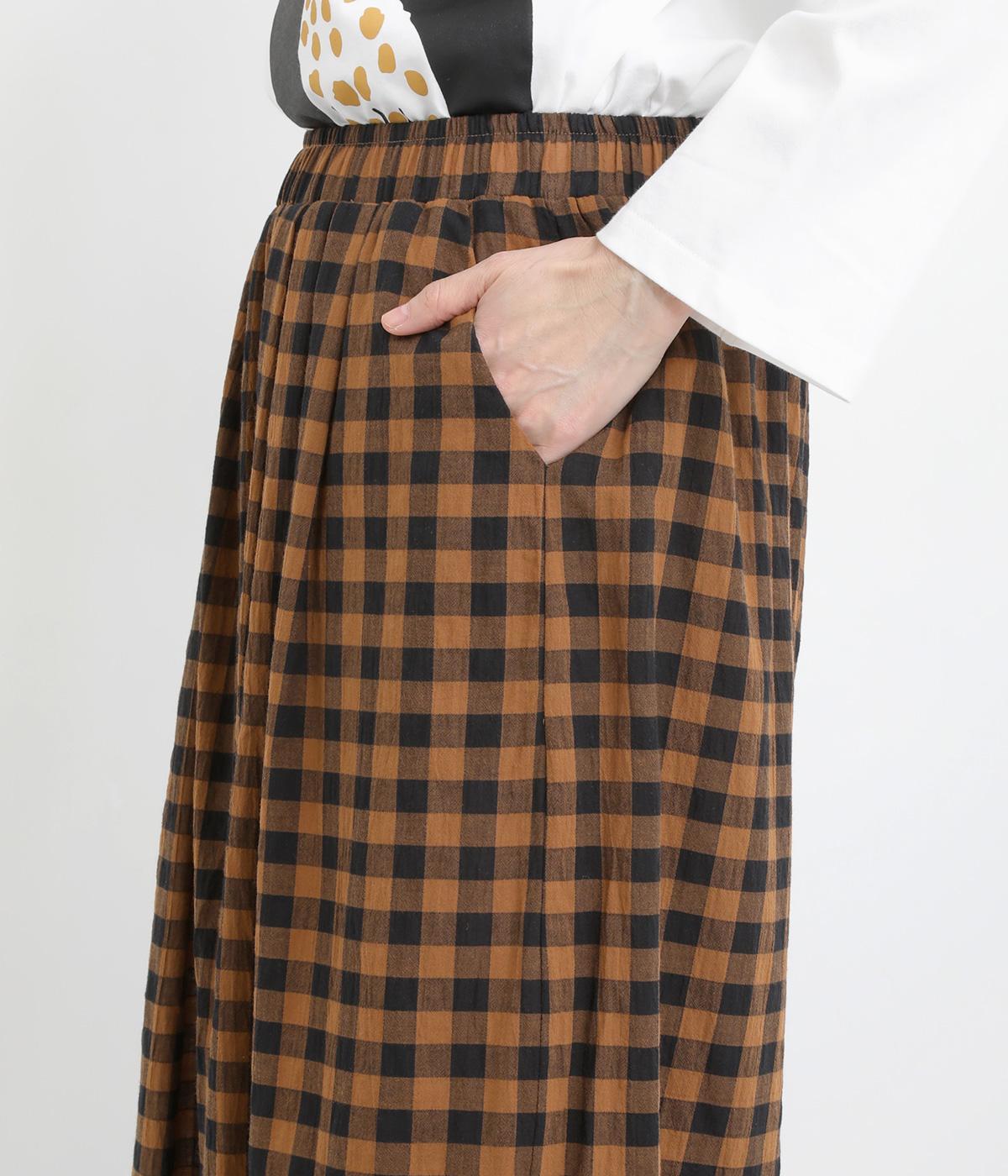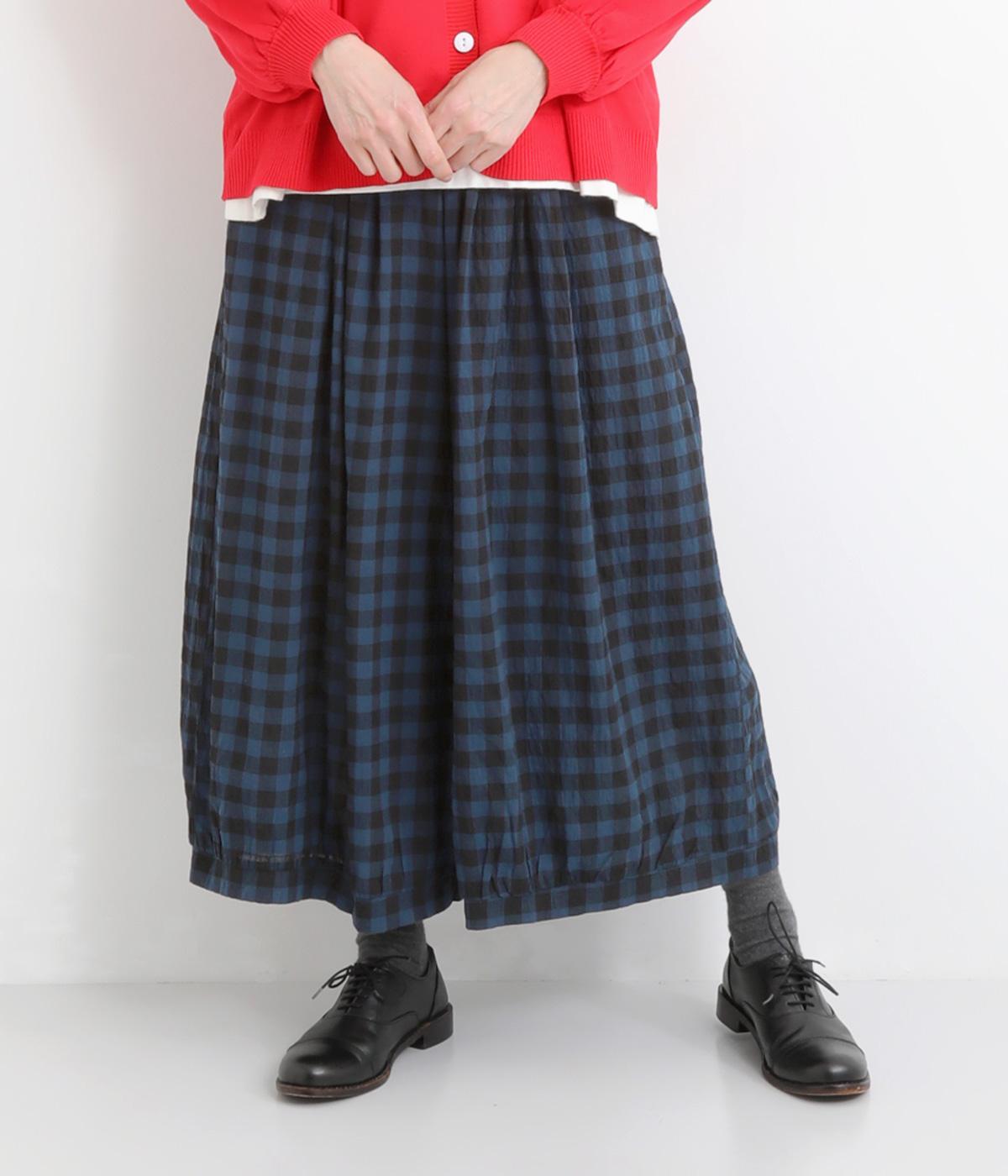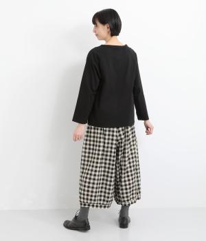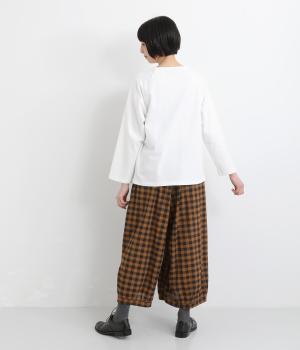 ふんわりシルエットのパンツを、カジュアルなギンガムチェックで仕立てました。ナチュラルな風合いの素材感が落ち着いた雰囲気を演出し、大人の装いになじみます。ウエストゴムデザインでストレスフリーな穿き心地です。