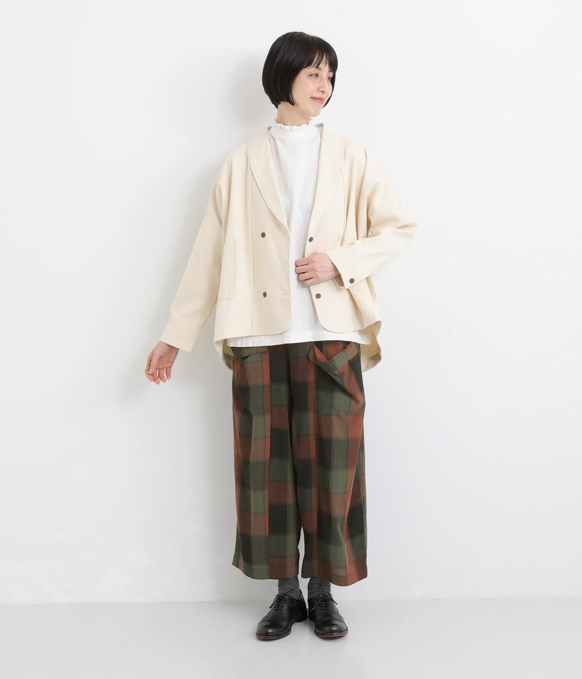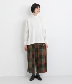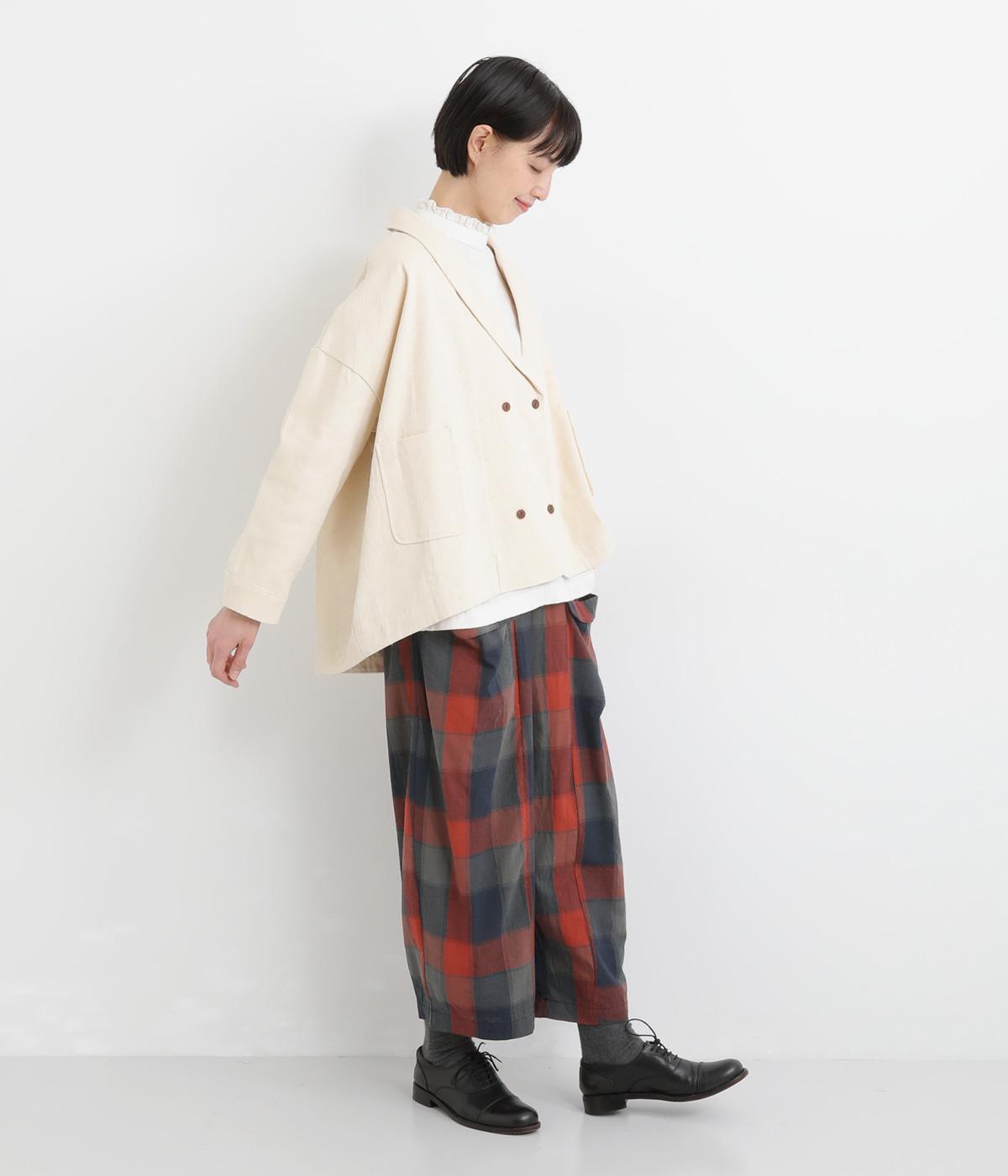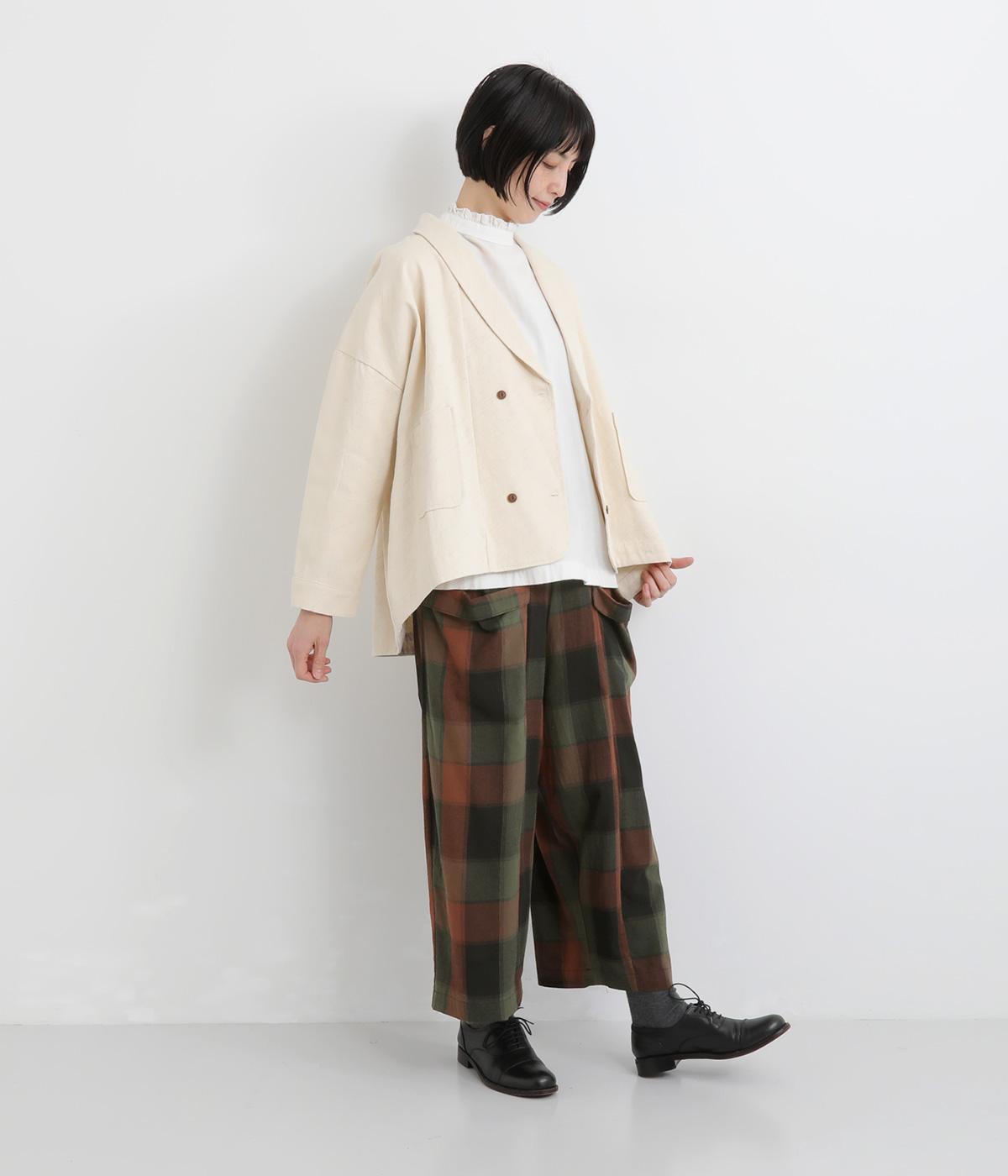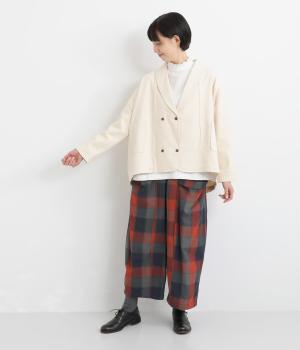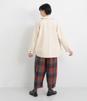 ニュアンスカラーのチェック柄が大人のカジュアルスタイルにぴったりなパンツです。立体感のある前ポケットがシルエットにアクセントを加えて、太ももまわりをカバー。ウエストは総ゴム仕様で紐でサイズ調節が可能です。