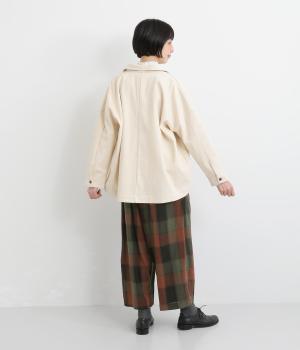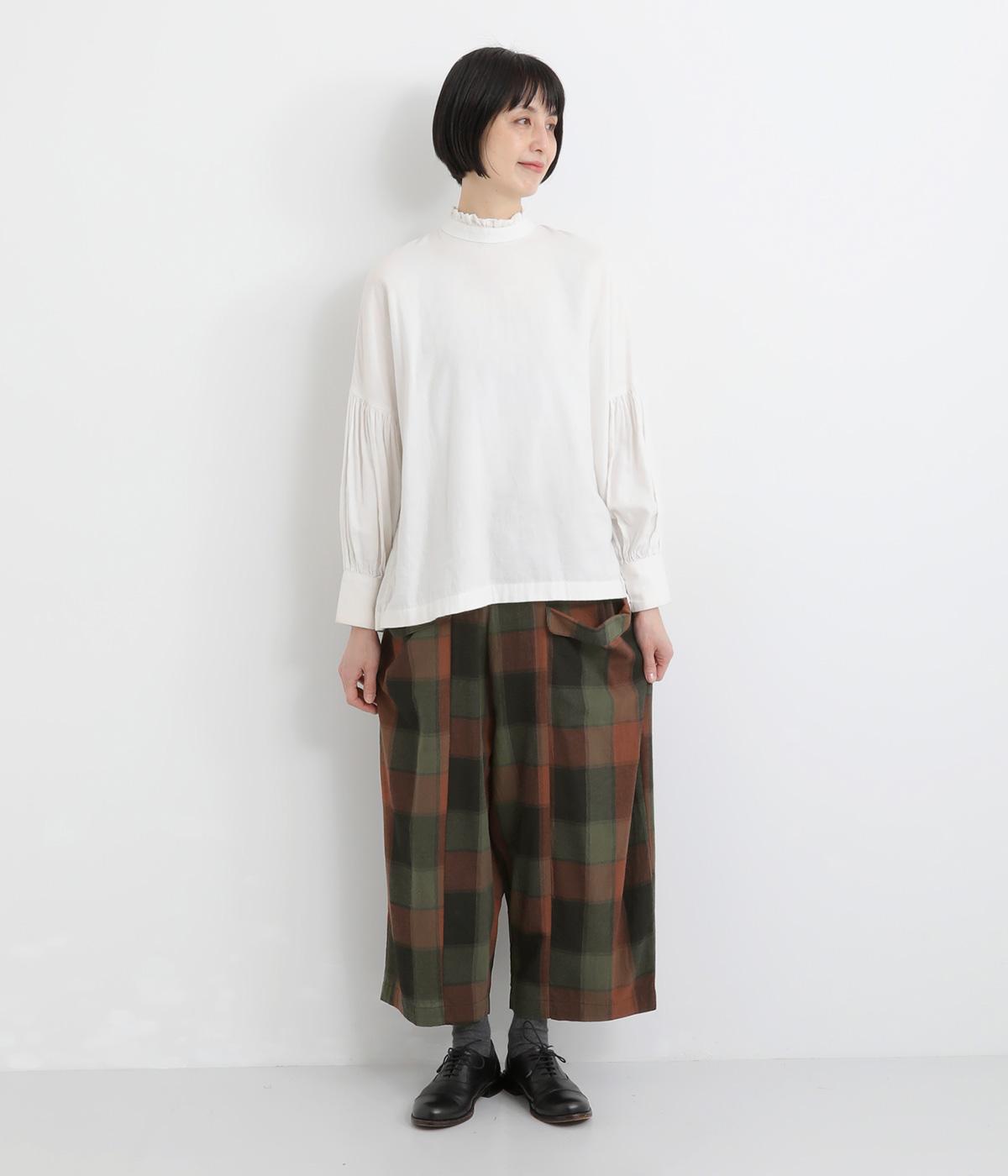 ネップのある自然な風合いがあたたかみのある表情のコットン生地です。やわらかい肌なじみで、心地よく纏えます。しなやかなハリが、シルエットをふわりと描きます。