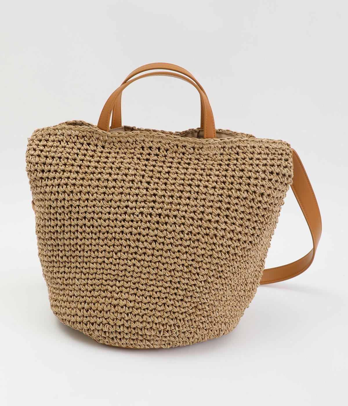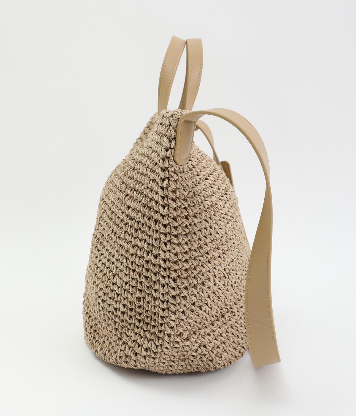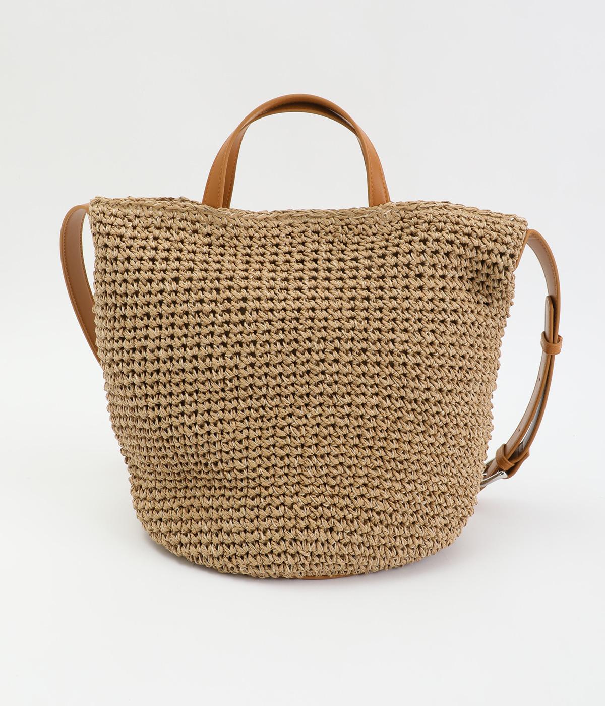 ころんと丸みのあるシルエットが愛らしい、バケット型のクロッシュバッグです。立体感のある編み柄が、装いにさりげない季節感を添えます。丸底なので安定感があり、内側には仕切りポケットを備え使い勝手も◎。ハンドとショルダーの2way仕様で、コーディネートに合わせた持ち方がたのしめます。