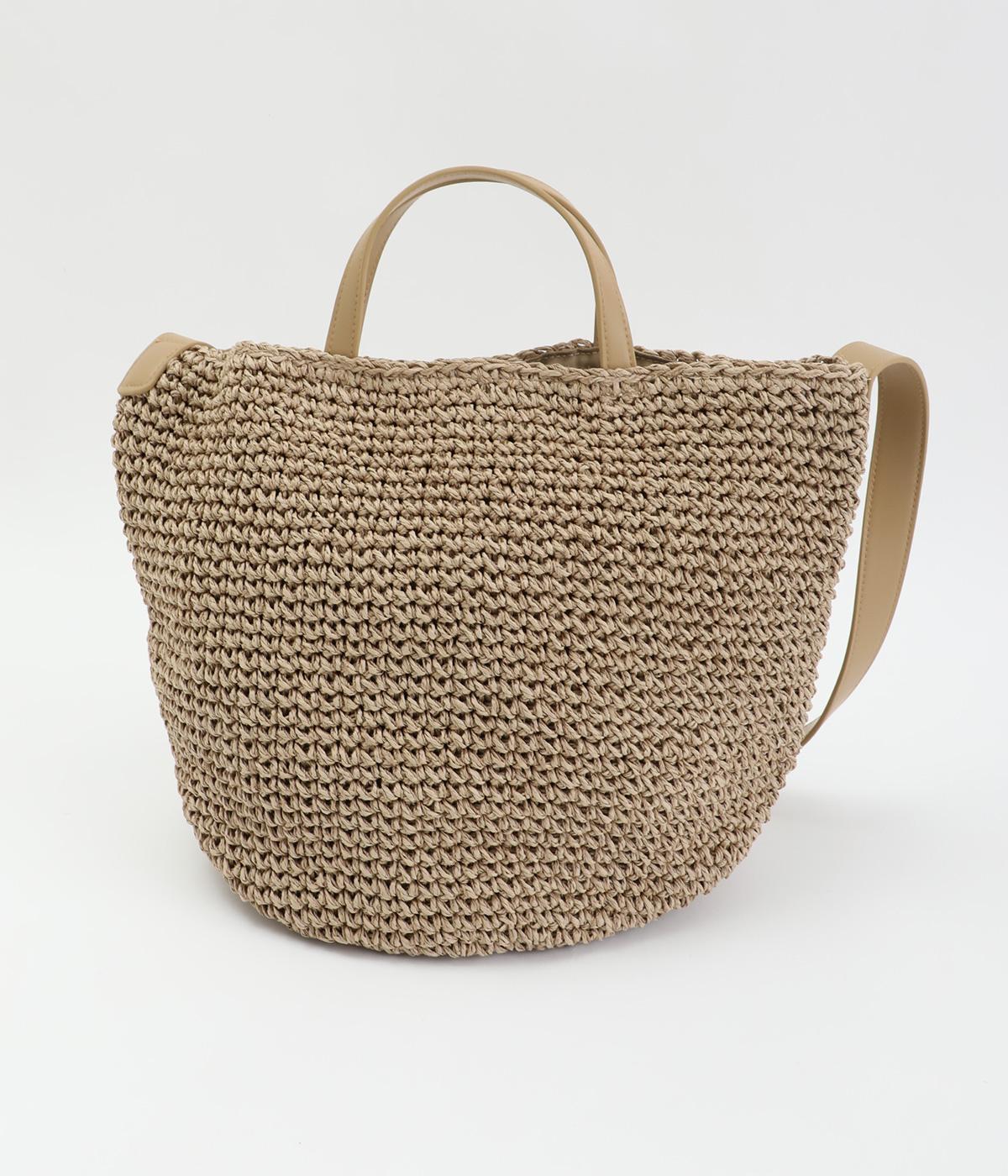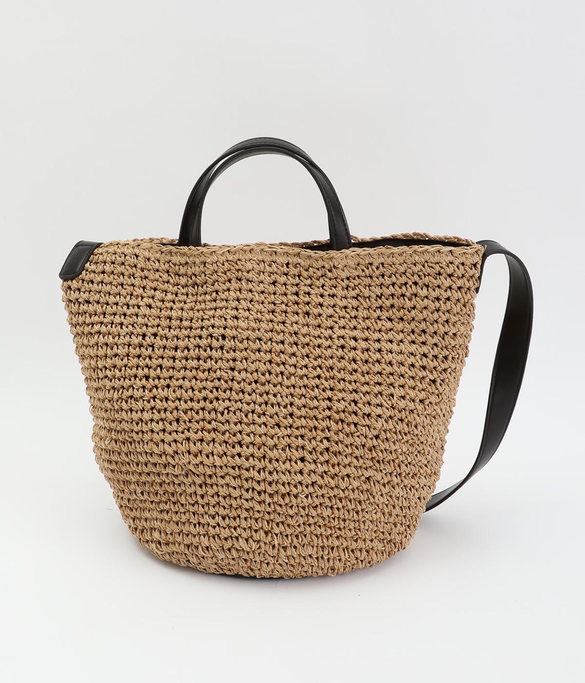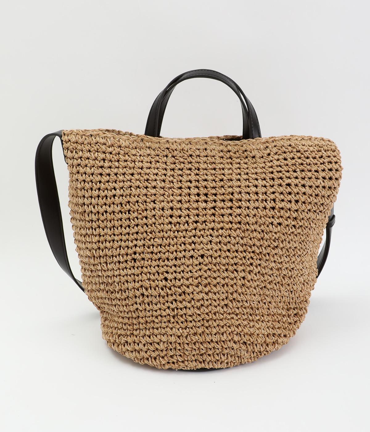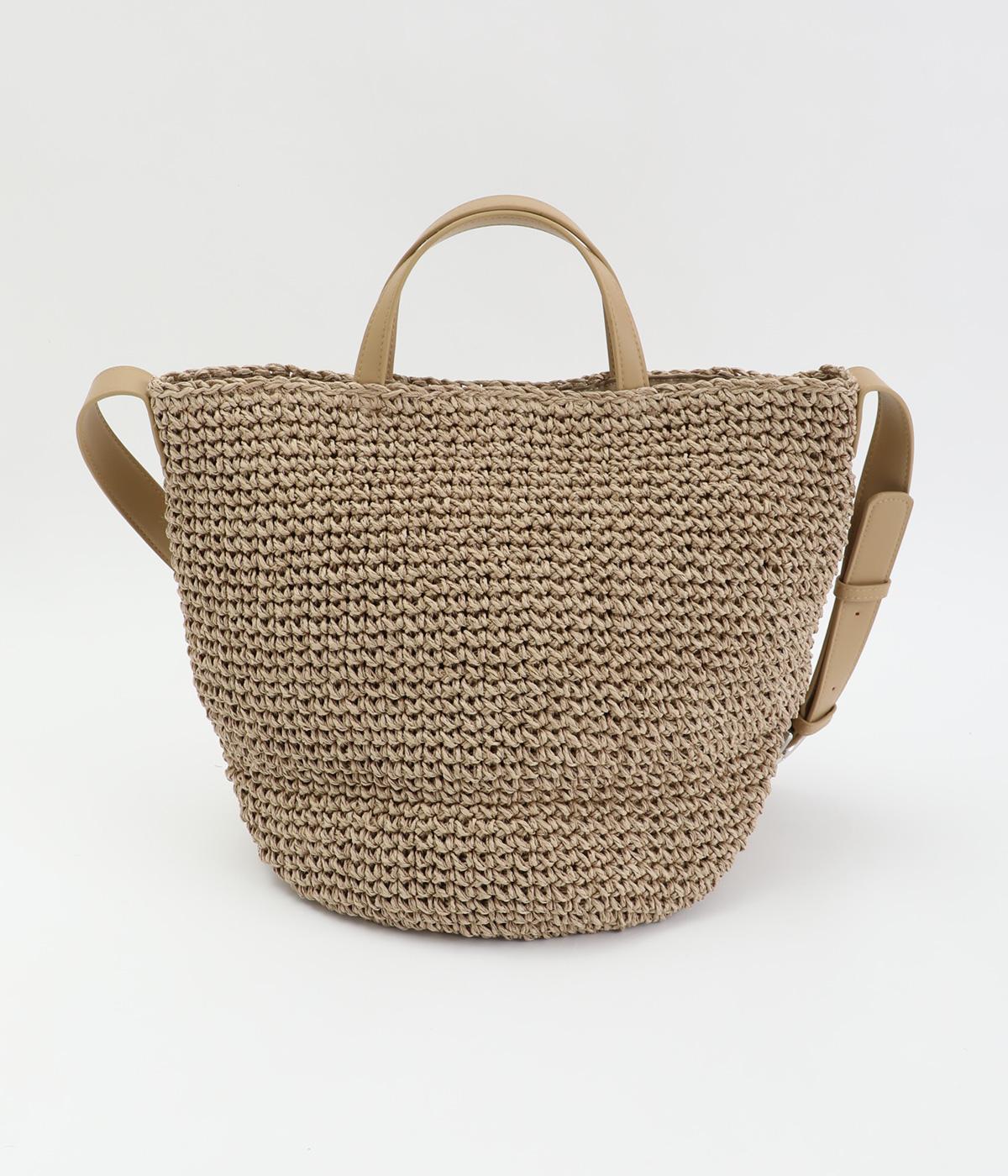 ころんと丸みのあるシルエットが愛らしい、バケット型のクロッシュバッグです。立体感のある編み柄が、装いにさりげない季節感を添えます。丸底なので安定感があり、内側には仕切りポケットを備え使い勝手も◎。ハンドとショルダーの2way仕様で、コーディネートに合わせた持ち方がたのしめます。