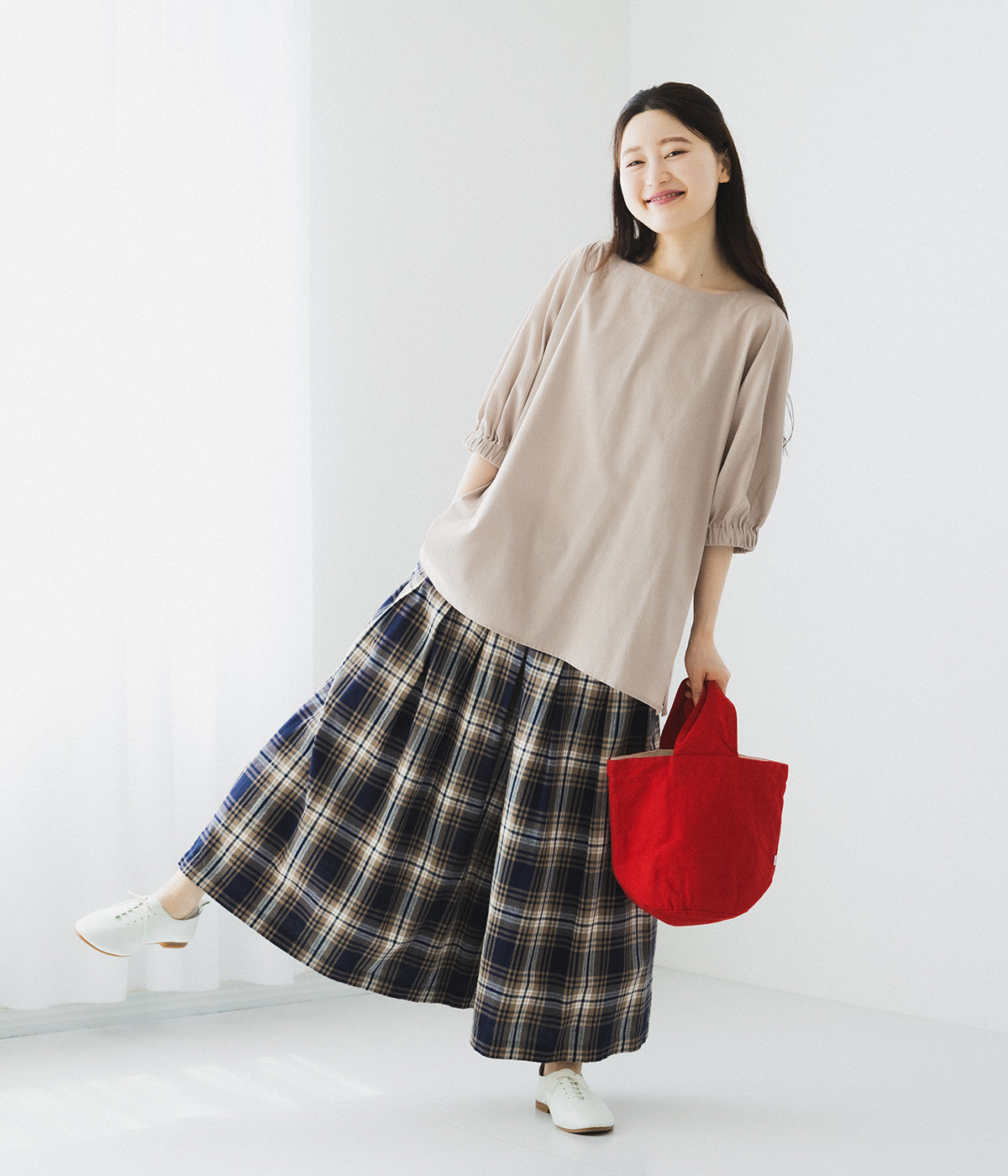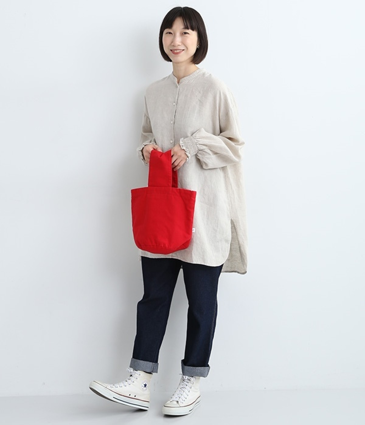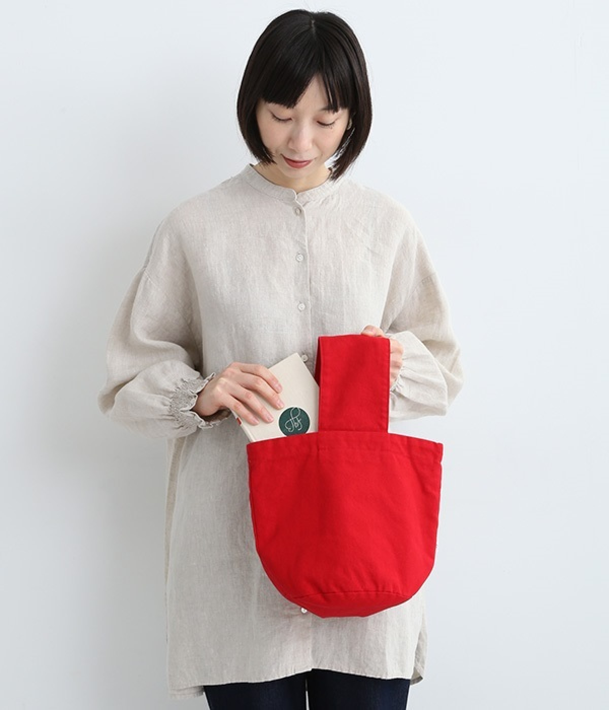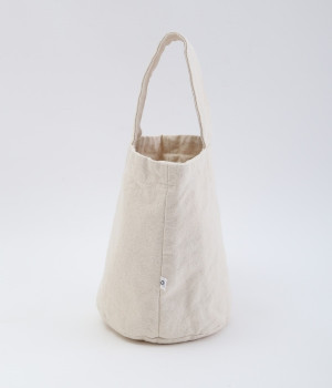 ころんと丸みのあるフォルムがかわいらしいバケットバッグ。丸型の底マチは見た目以上にものがおさまり、毎日持ち歩くスマートフォンやお財布などがしっかりと収納できます。ワンハンドルの持ち手は太幅にしているため、腕を通したときに重さが分散されやすいのも◎。アイテムの仕分けがスムーズに行えるよう、内部にはポケットを2つセットしました。中肉でタフなコットンキャンバス生地を使用し、日常使いに適しています。
