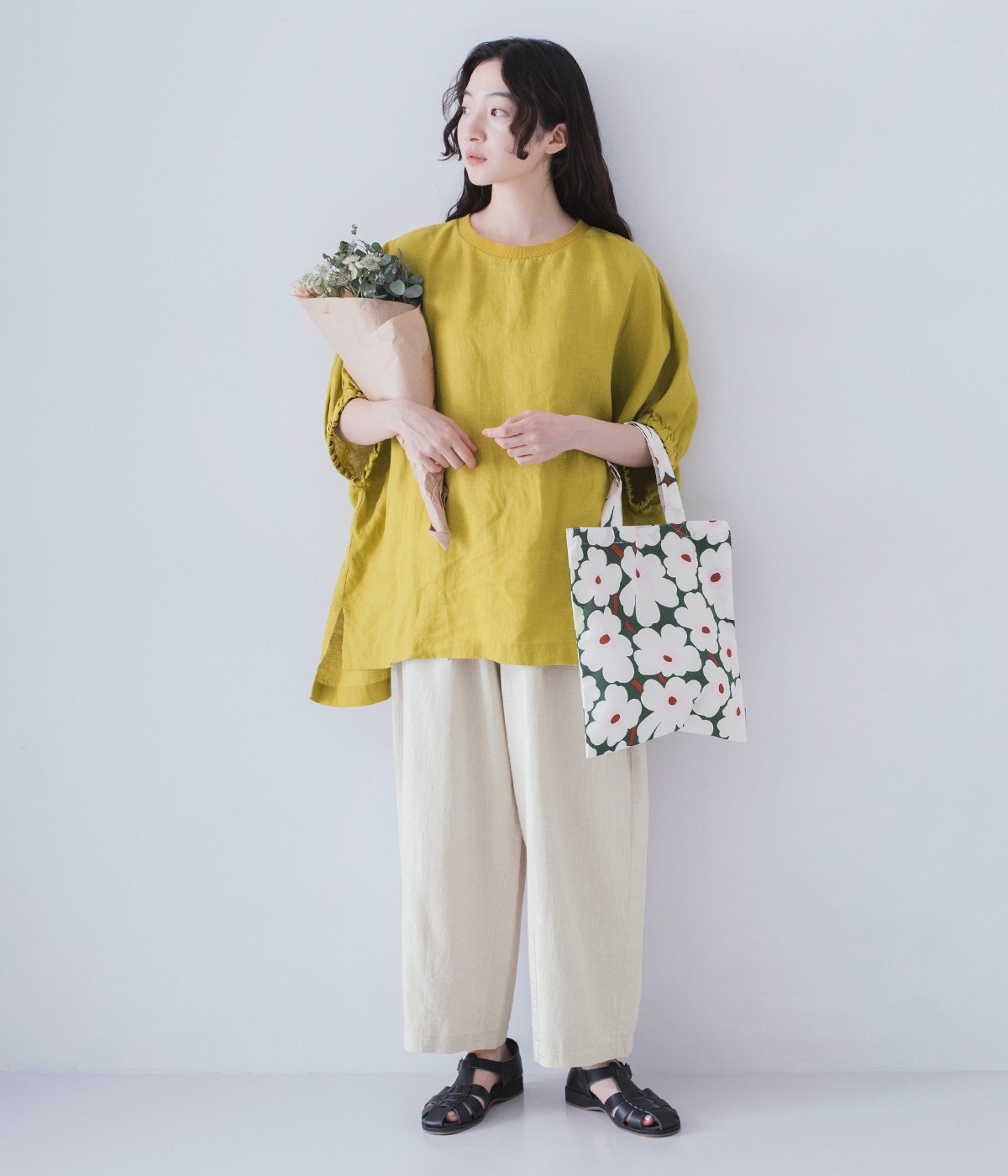 花の抽象画としてデザインされたマリメッコのアイコン的存在でもあるUnikko(ウニッコ)のテキスタイルです。薄手ながらハリ感のあるコットンでカジュアルに使えます。