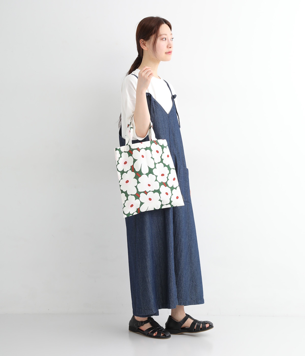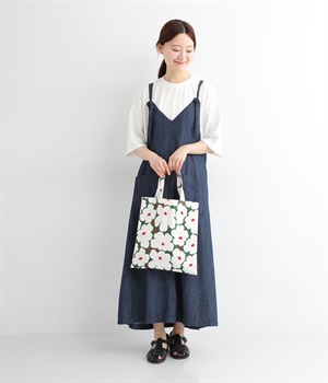 薄型タイプで折り畳んで持ち運び用としても重宝するトートバッグです。着こなしのポイントにもなる柄にベーシックな形でシーズンレスに活躍します。A4サイズも収納可能な使い勝手のいいサイズ感です。