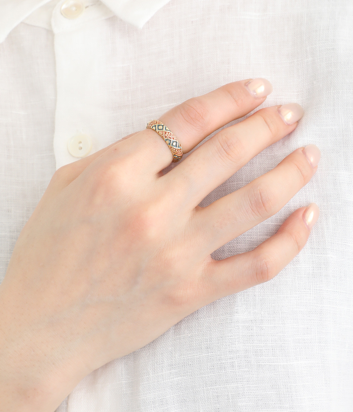 マットな輝きを放つ素材を使用した色鮮やかなリングです。