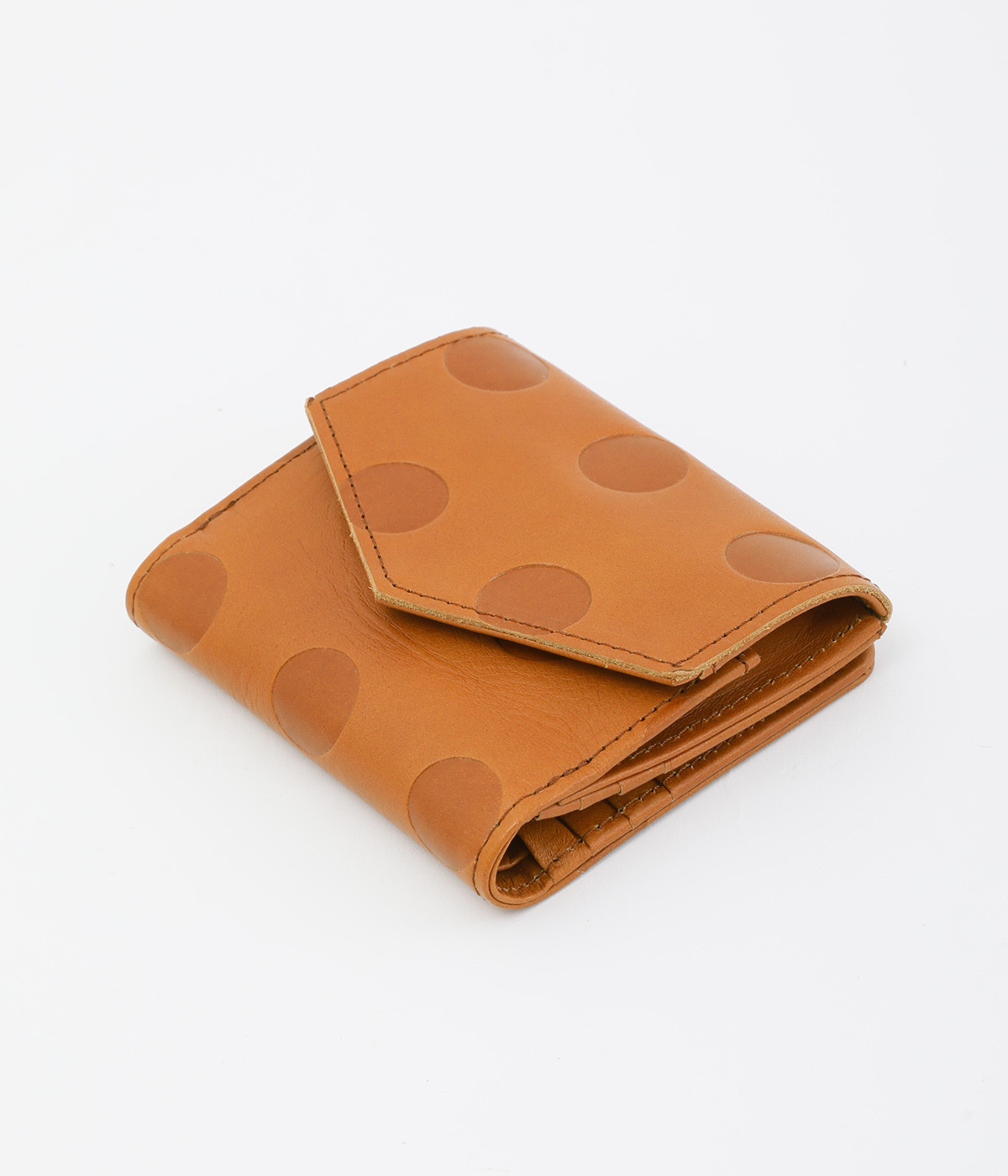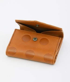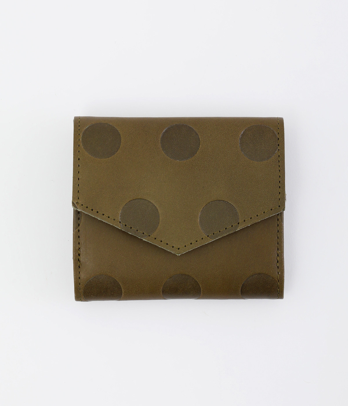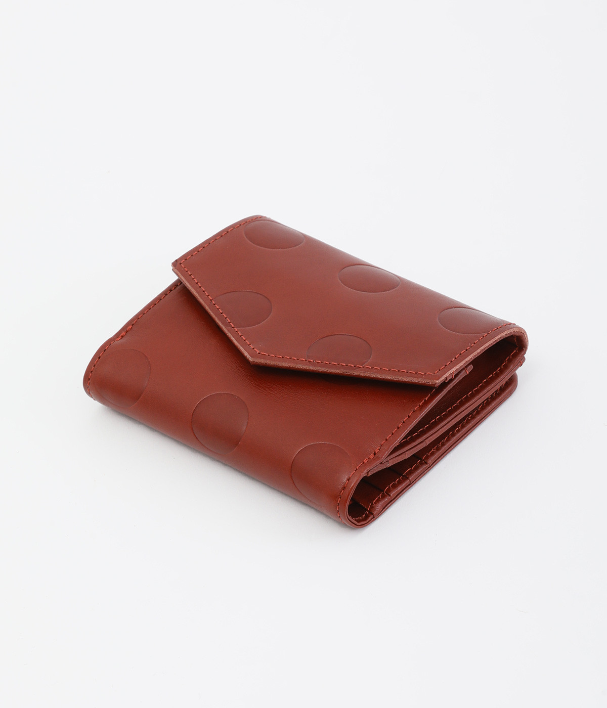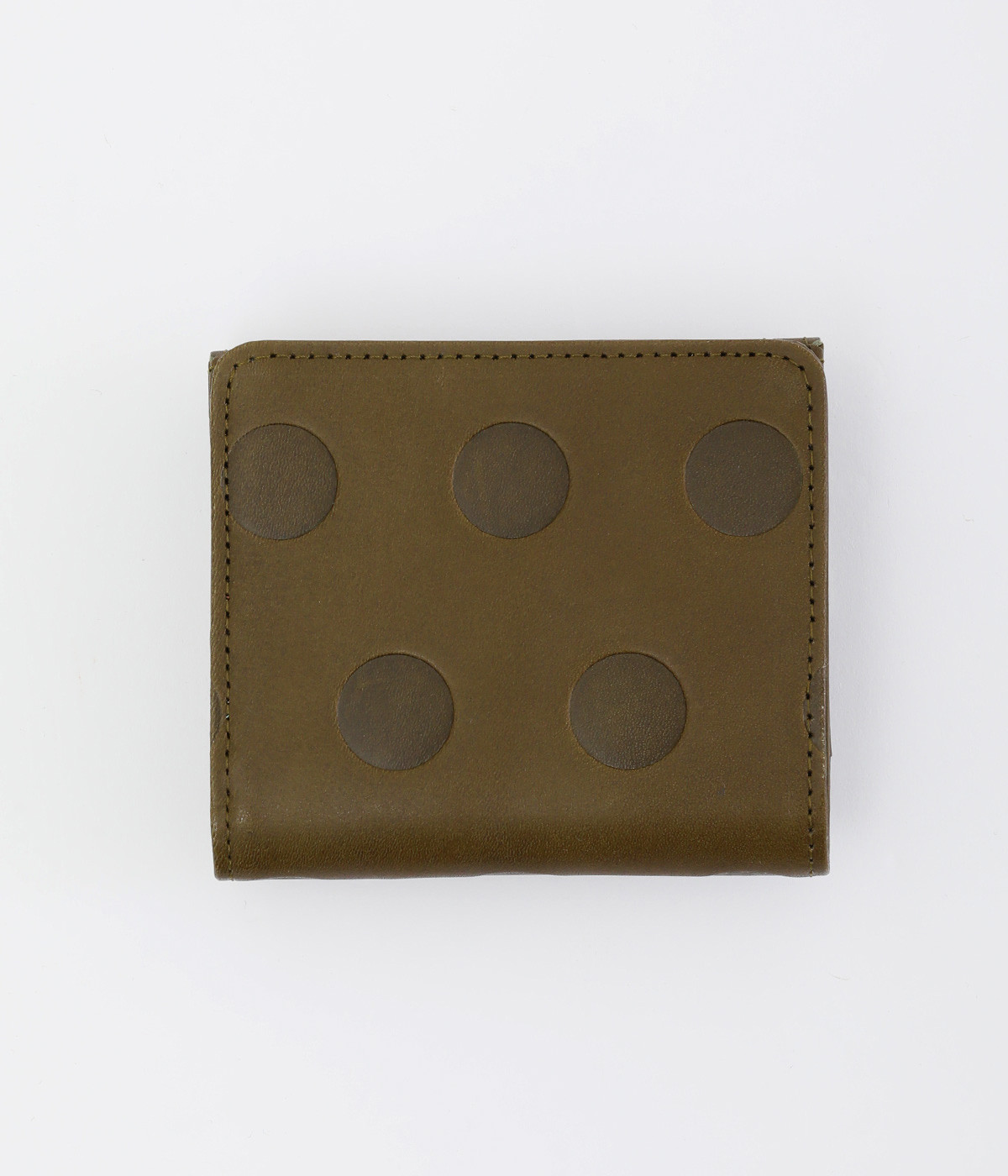 ソフトな肌触りの牛革にドットの型押しでアクセントをプラス。裏地にはほどよくしっかりとした綿オックス生地を配して、強度と使い勝手の良さを高めます。同色系にまとめているのもポイント。