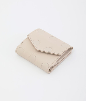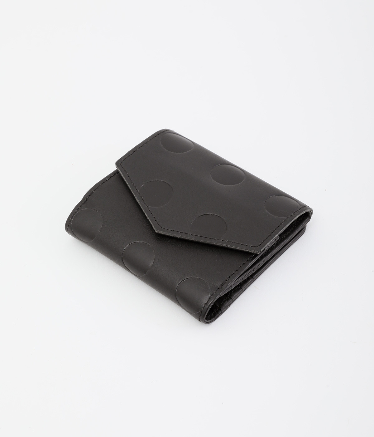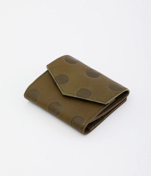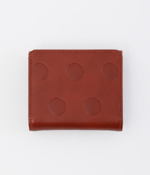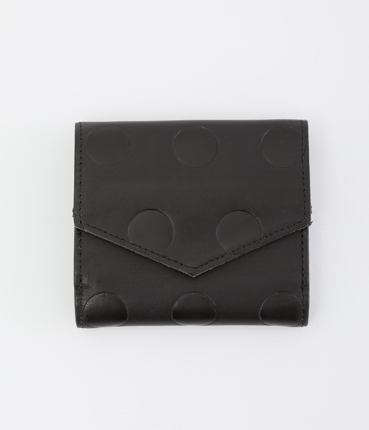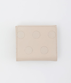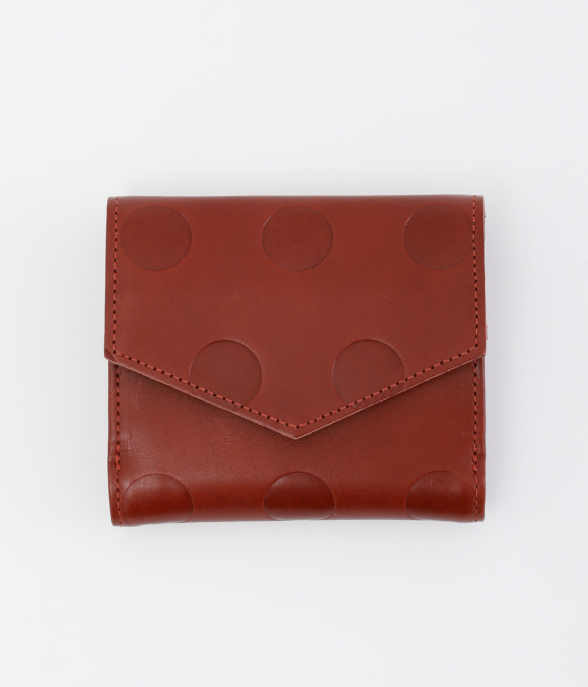ソフトな肌触りの牛革にドットの型押しでアクセントをプラス。裏地にはほどよくしっかりとした綿オックス生地を配して、強度と使い勝手の良さを高めます。同色系にまとめているのもポイント。