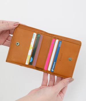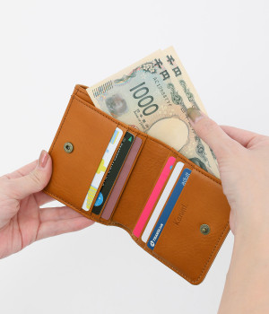 使い勝手のいい定番型に、三角屋根と水玉模様で愛らしさをプラス。小銭入れはボックス型で中身がパッと見やすくなっています。カードポケットも充実していて見た目以上の収納力です。