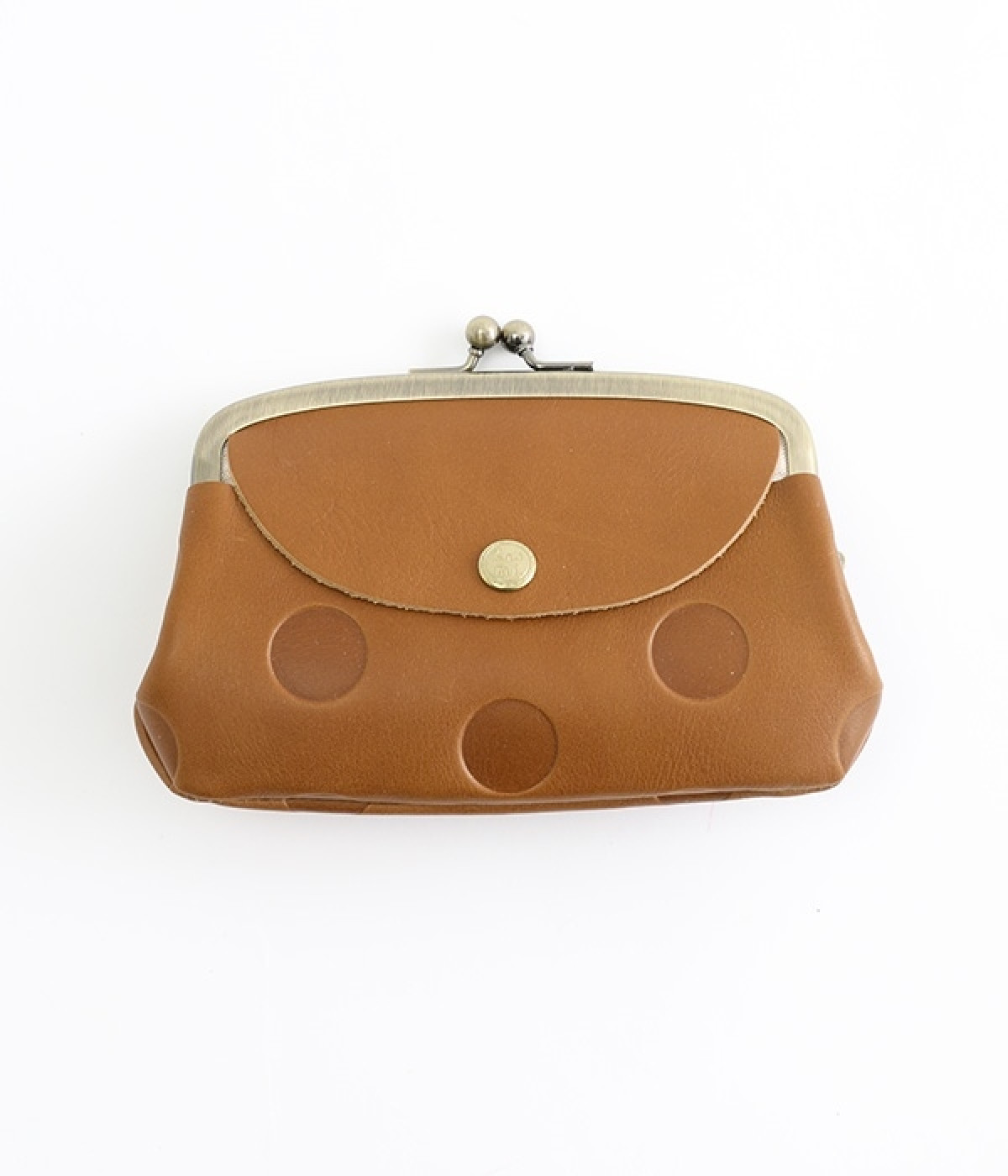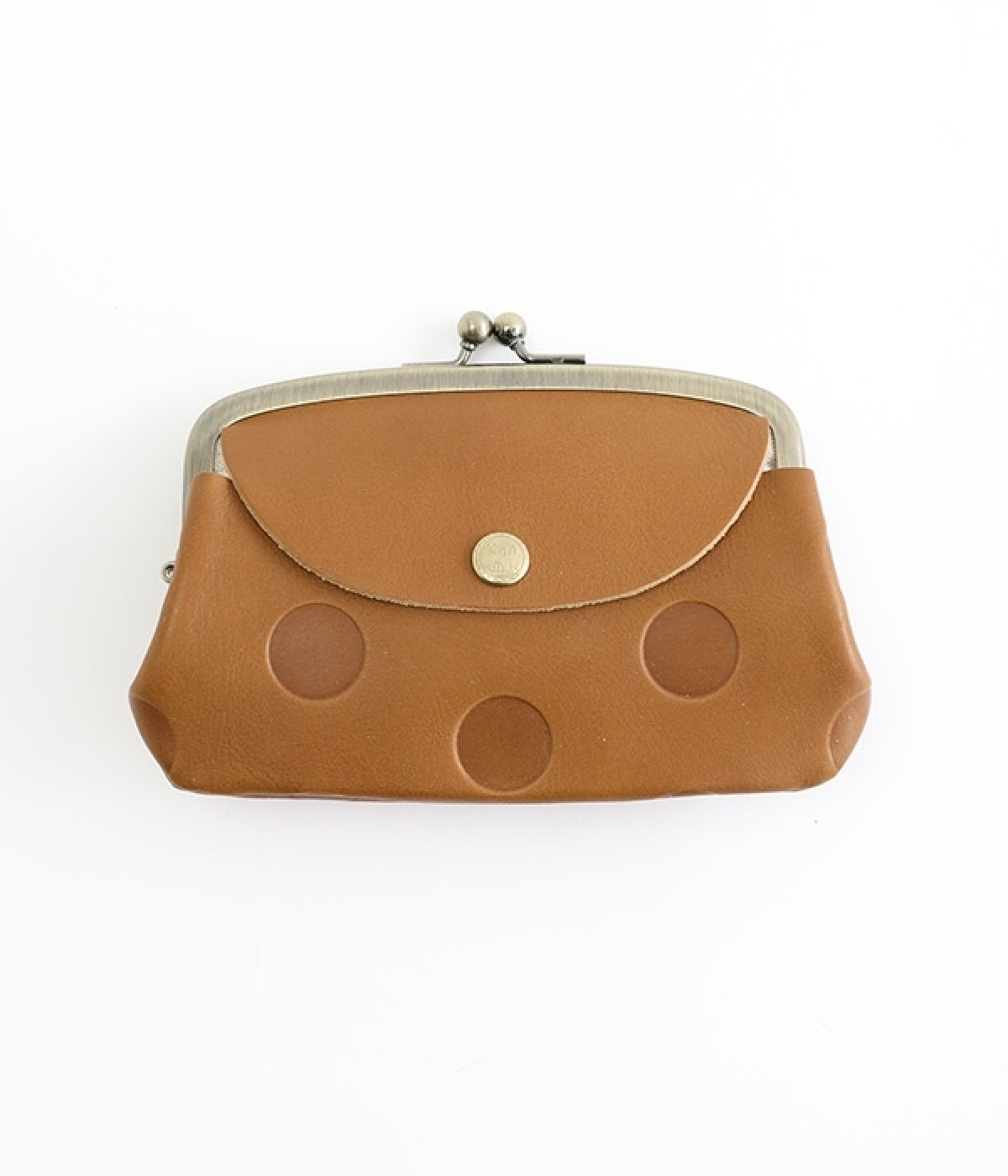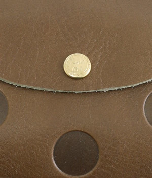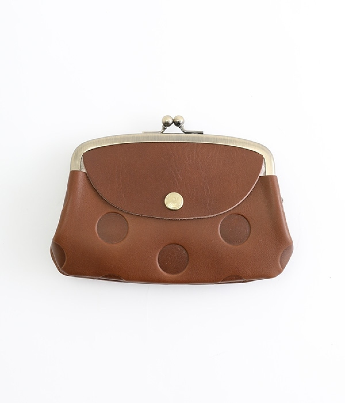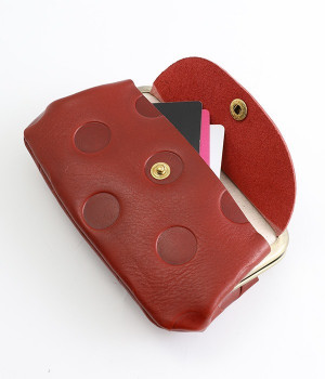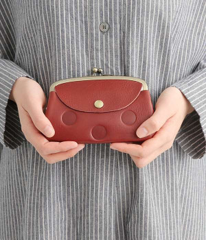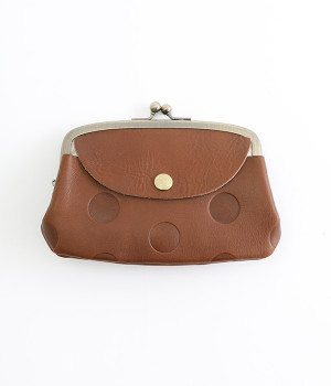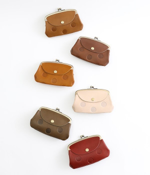 ほどよい艶感のある革を使用した小さめのがま口財布です。使い込むほどに味わいの出る素材なので、ドットの模様も時間と共に深みが増していきます。表裏にルーフ外ポケットもあり、カードなどが入れられます。中も親子タイプになっているので、収納力もばっちりです。
