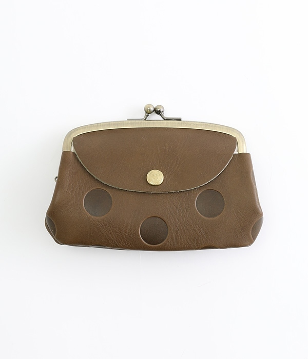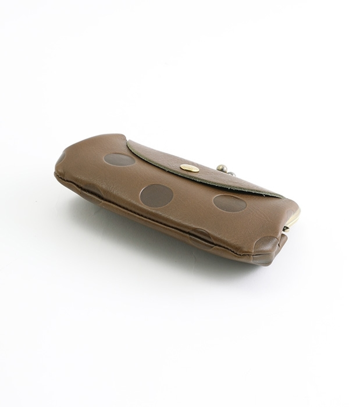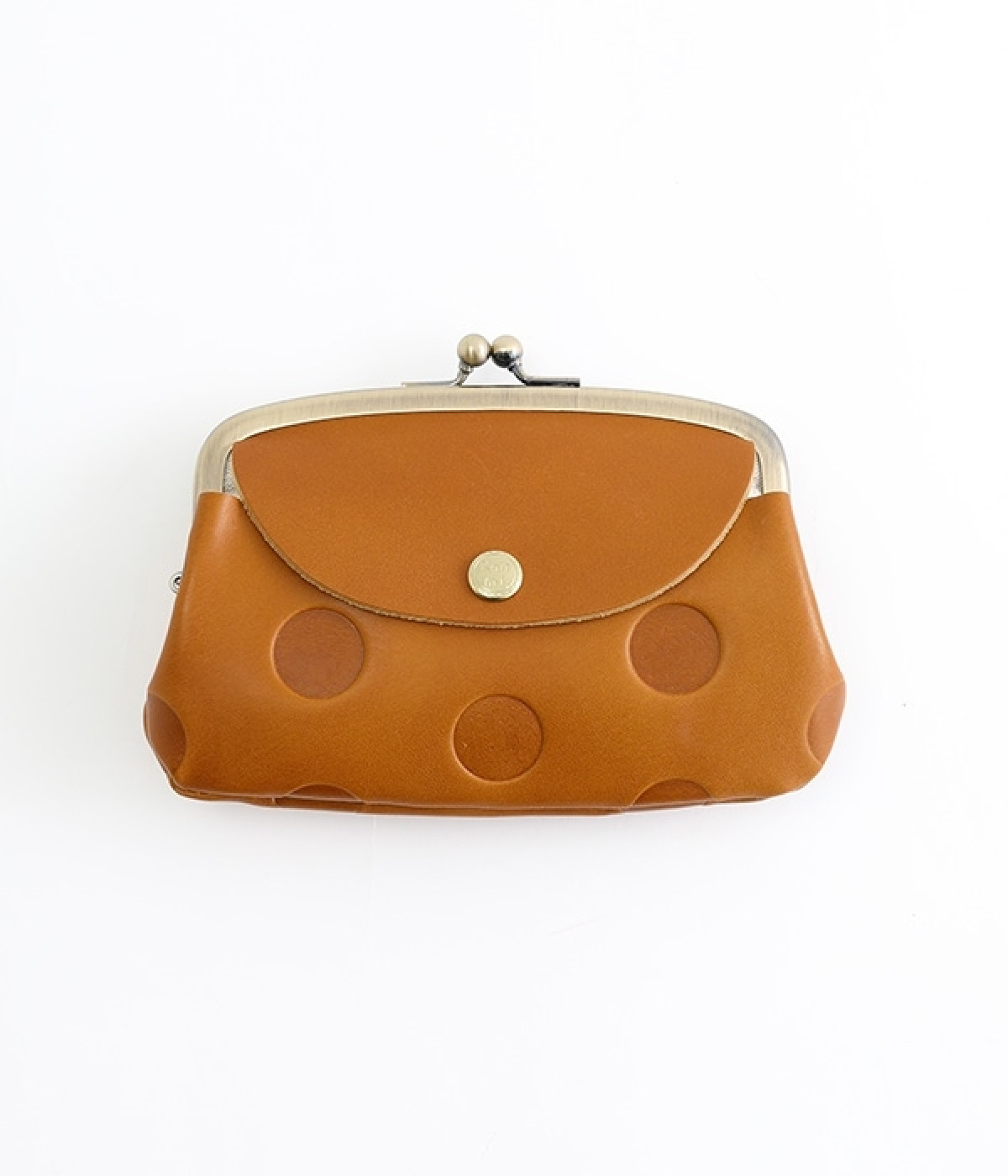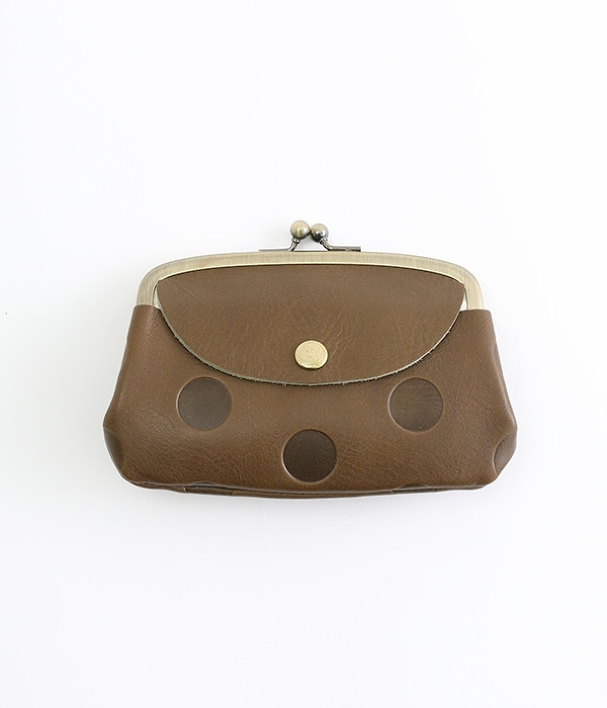 ほどよい艶感のある革を使用した小さめのがま口財布です。使い込むほどに味わいの出る素材なので、ドットの模様も時間と共に深みが増していきます。表裏にルーフ外ポケットもあり、カードなどが入れられます。中も親子タイプになっているので、収納力もばっちりです。