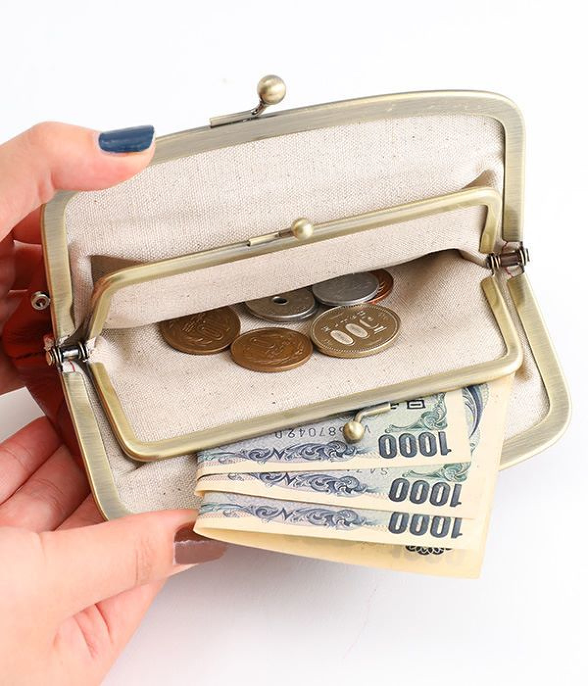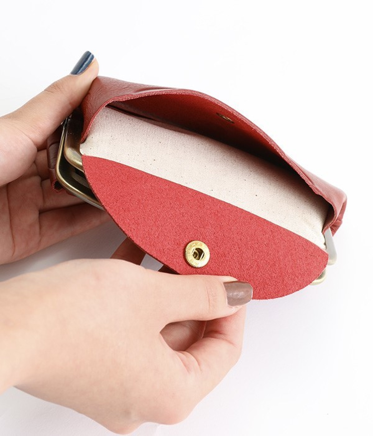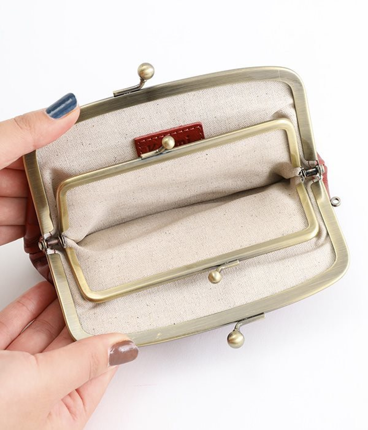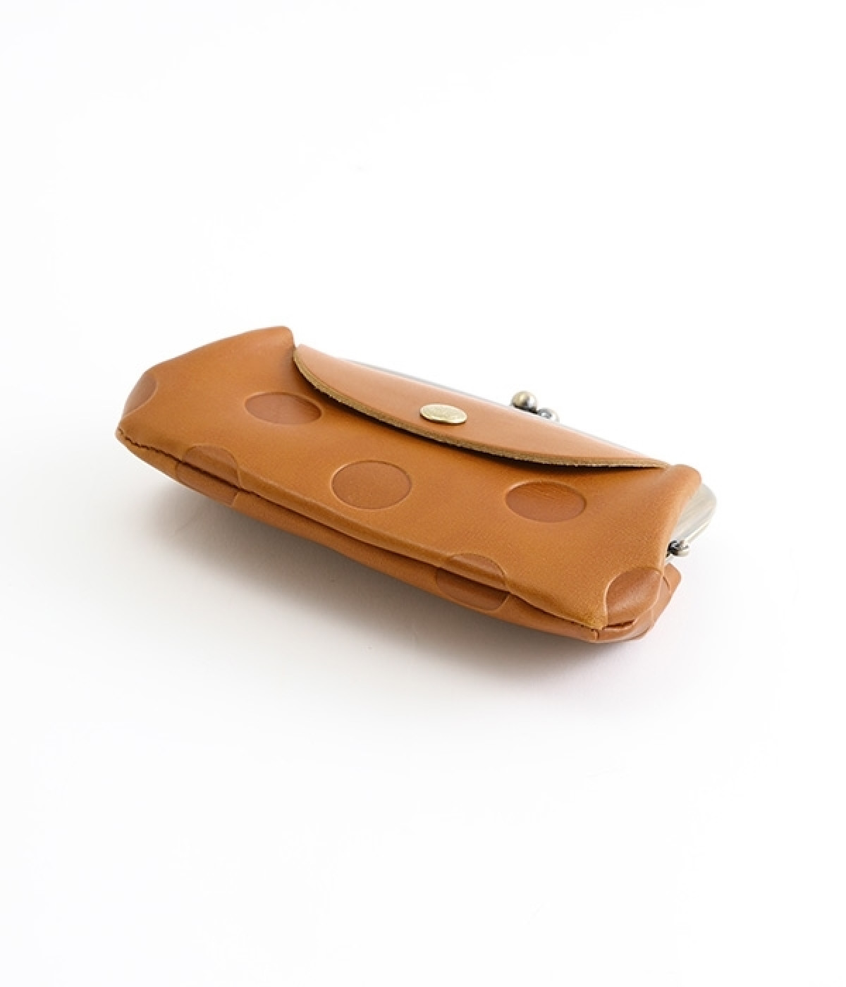 ほどよい艶感のある革を使用した小さめのがま口財布です。使い込むほどに味わいの出る素材なので、ドットの模様も時間と共に深みが増していきます。表裏にルーフ外ポケットもあり、カードなどが入れられます。中も親子タイプになっているので、収納力もばっちりです。