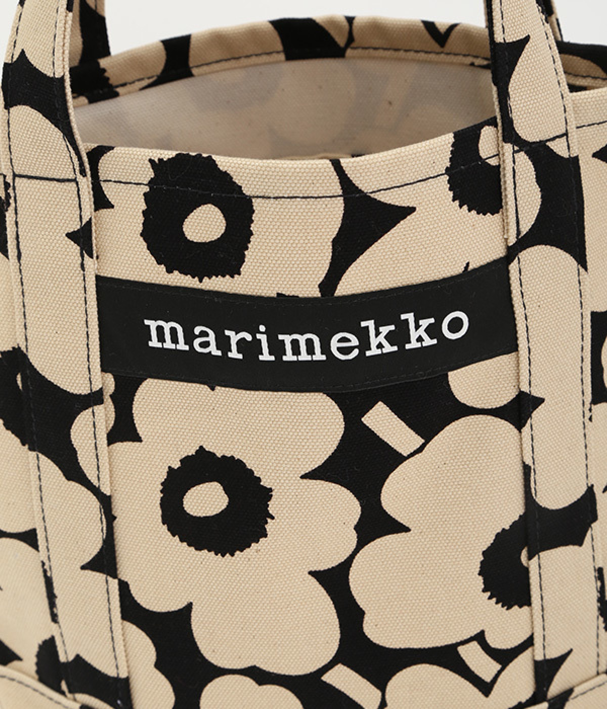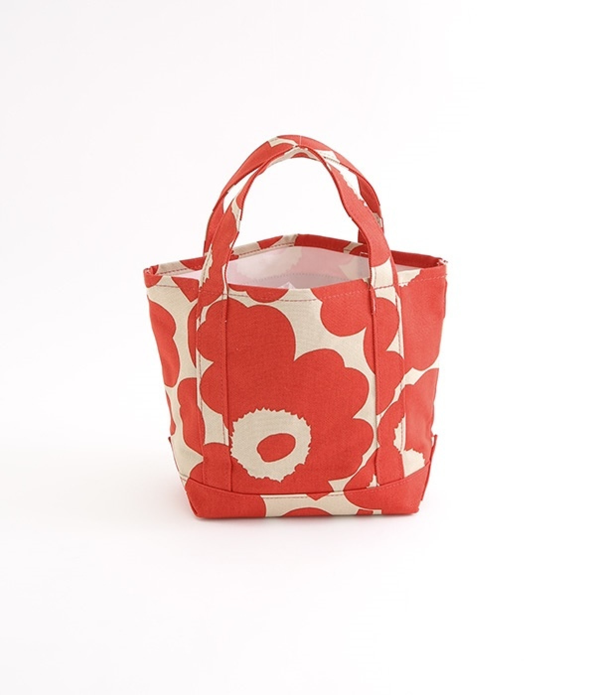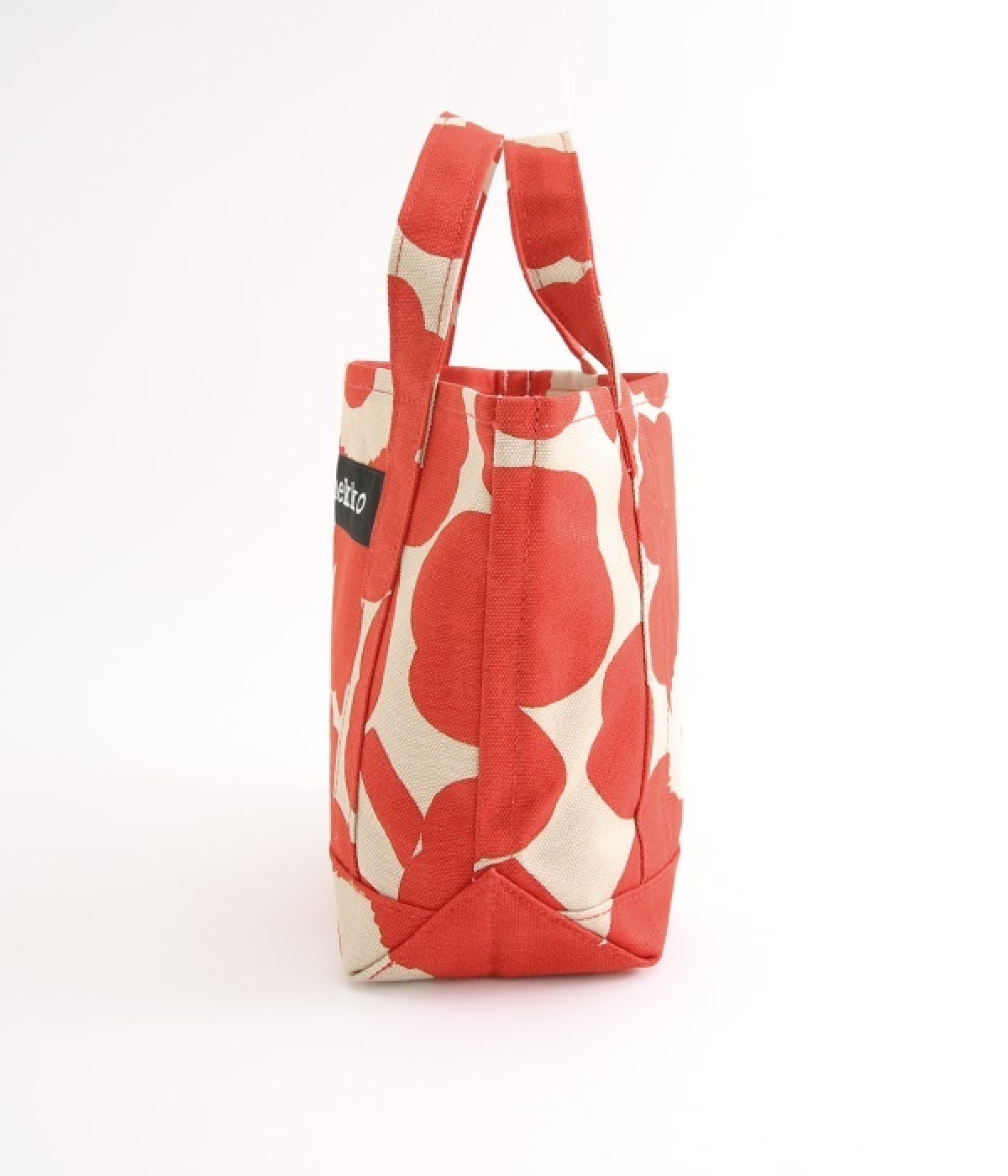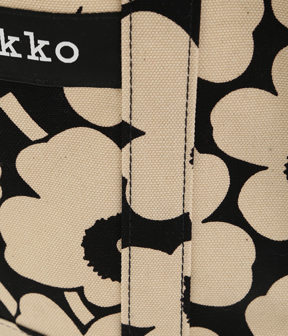 ケシの花をモチーフにしたUnikko柄のキャンパストートバッグです。フロントにあしらったMarimekkoのネームとプリントが目を惹くデザインはコーディネートのアクセントにぴったり。マチ底が広く、見た目以上の収納力が嬉しいポイントです。500mlのペットボトルや折りたたみ傘、長財布などお出かけの必需品を楽々持ち運べます。