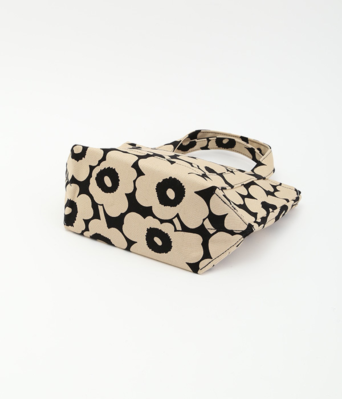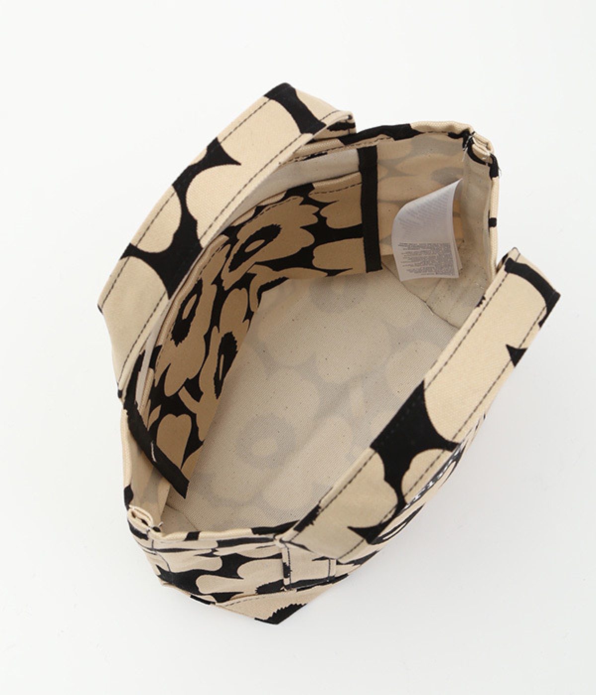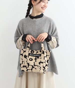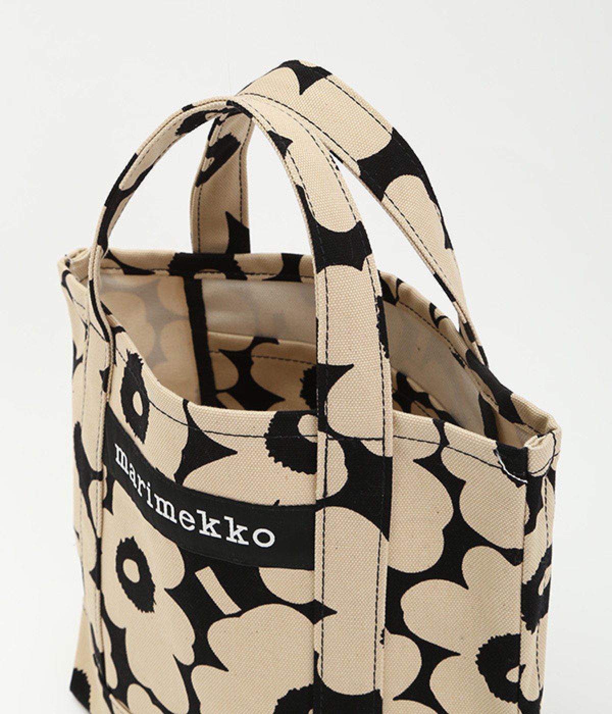 ケシの花をモチーフにしたUnikko柄のキャンパストートバッグです。フロントにあしらったMarimekkoのネームとプリントが目を惹くデザインはコーディネートのアクセントにぴったり。マチ底が広く、見た目以上の収納力が嬉しいポイントです。500mlのペットボトルや折りたたみ傘、長財布などお出かけの必需品を楽々持ち運べます。
