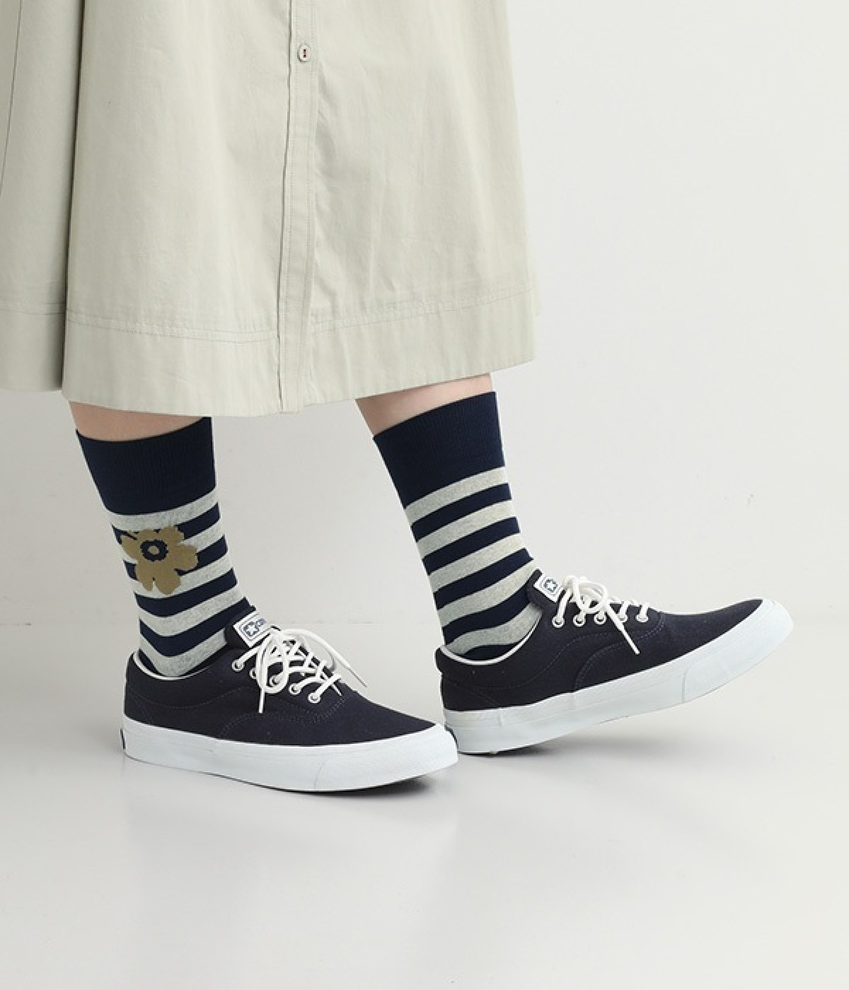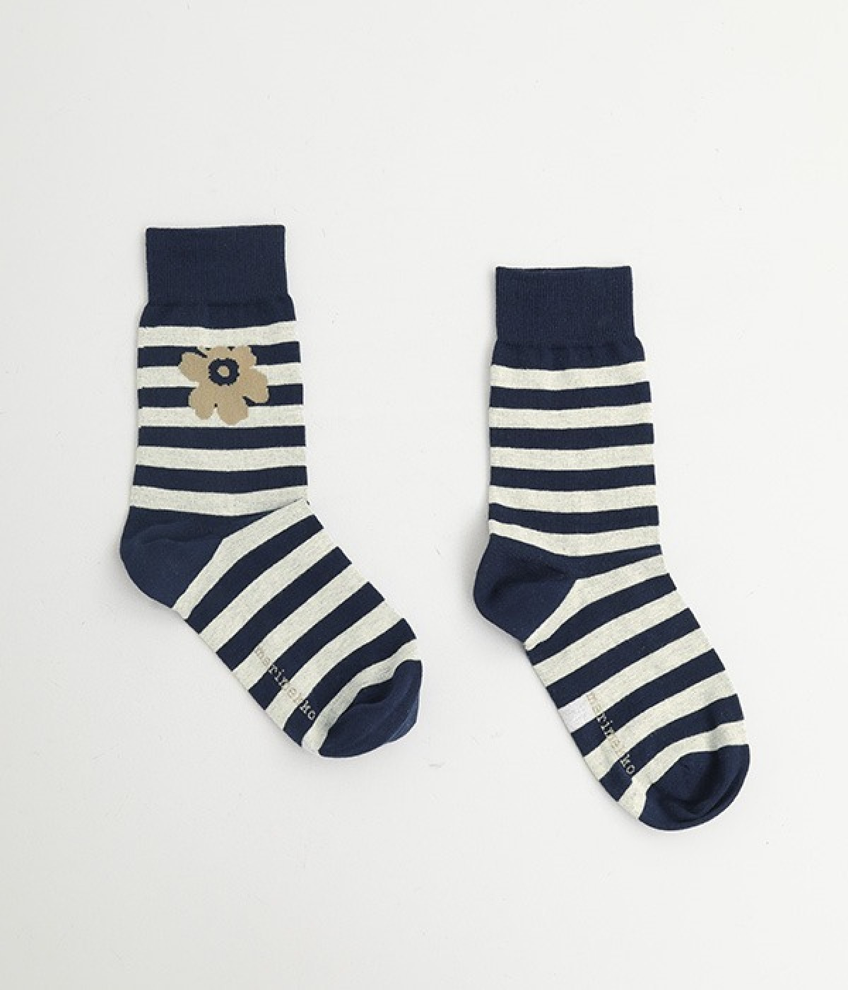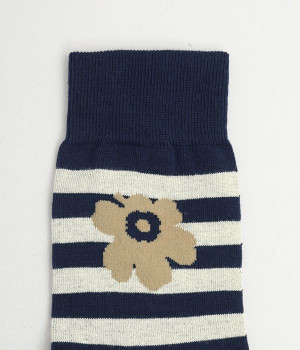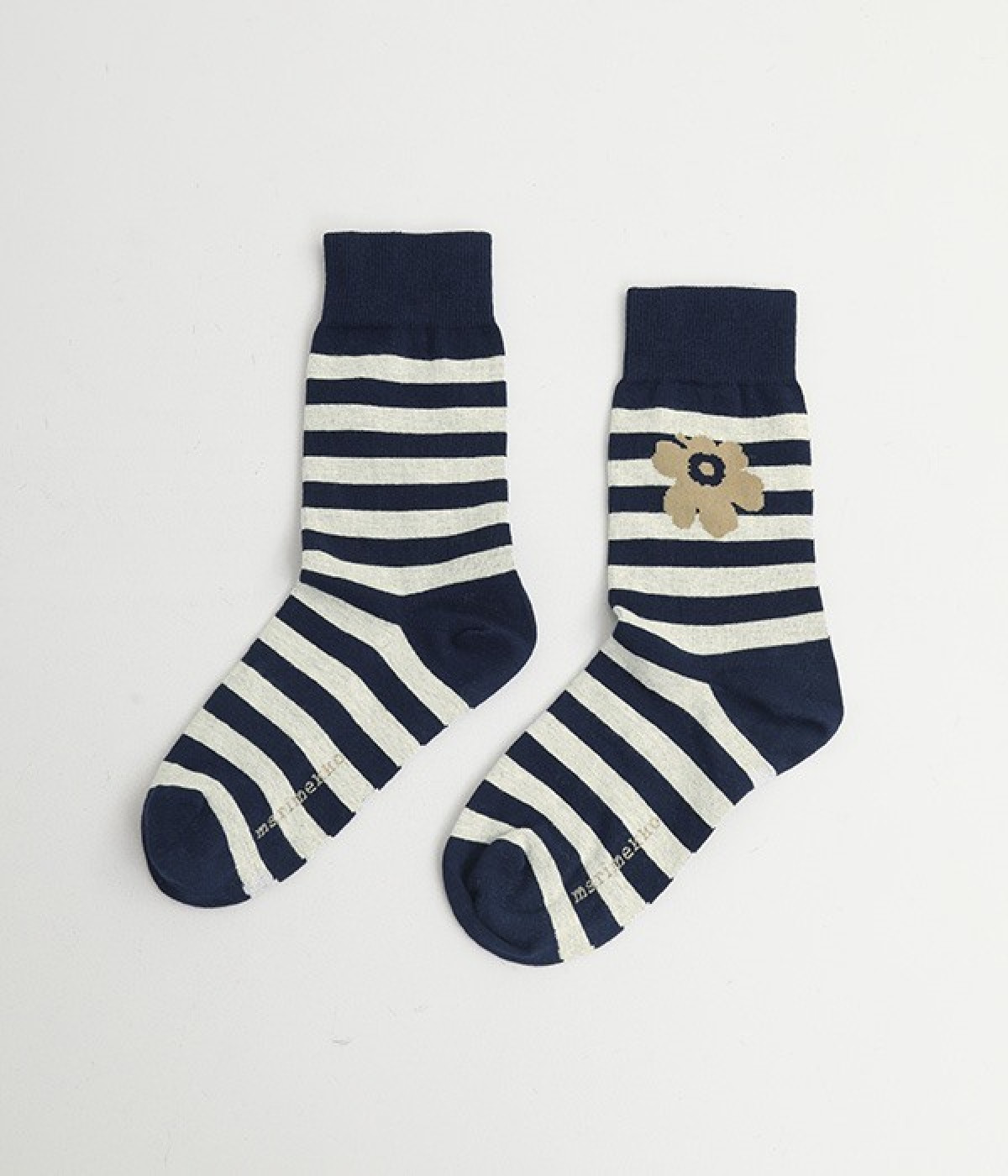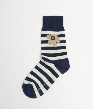 ケシの花をモチーフにしたUnikko柄とボーダーのソックスです。コーディネートのアクセントにぴったりの印象的なデザイン。フィット感のあるさらりとした肌触りで季節問わず活躍します。スニーカー合わせはもちろん、パンプスやサンダルなどとの足元コーデを楽しむこともできます。ちょっとしたギフトにもおすすめ。