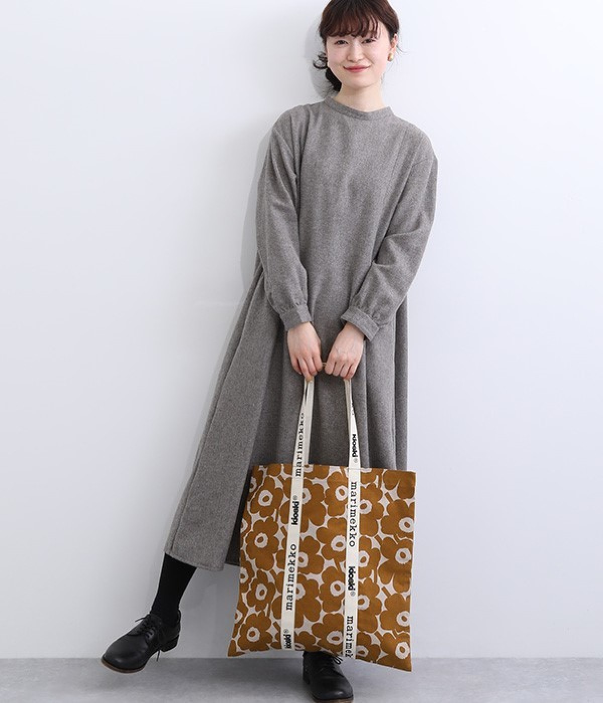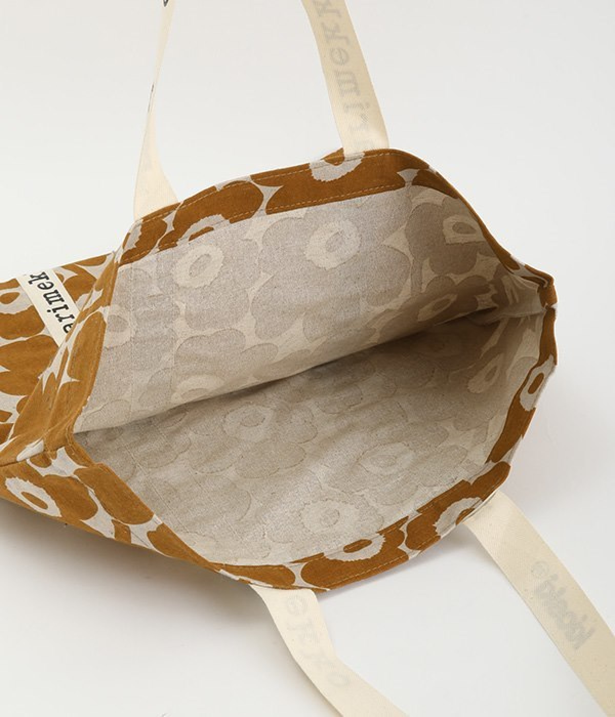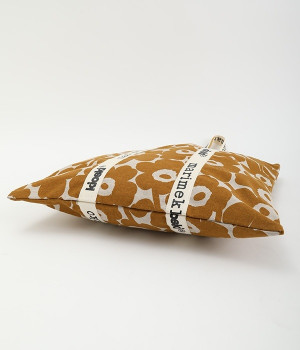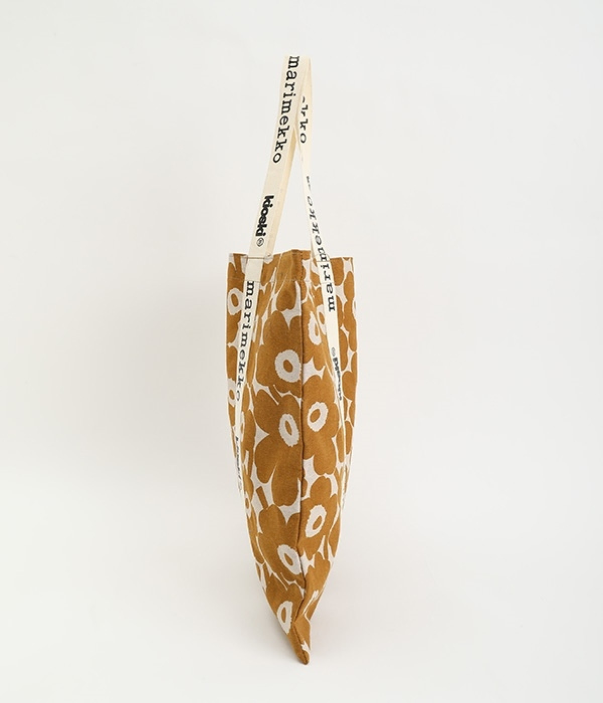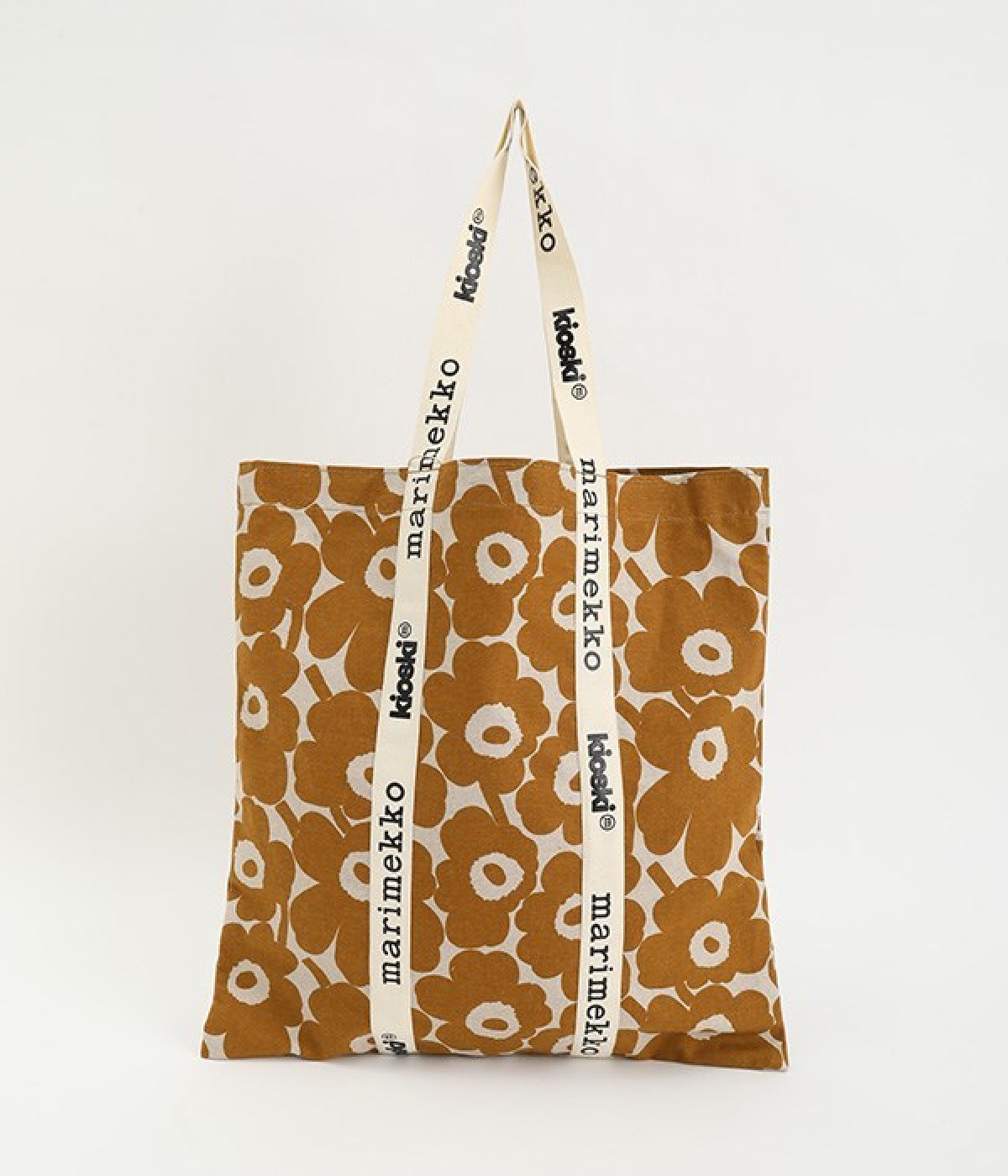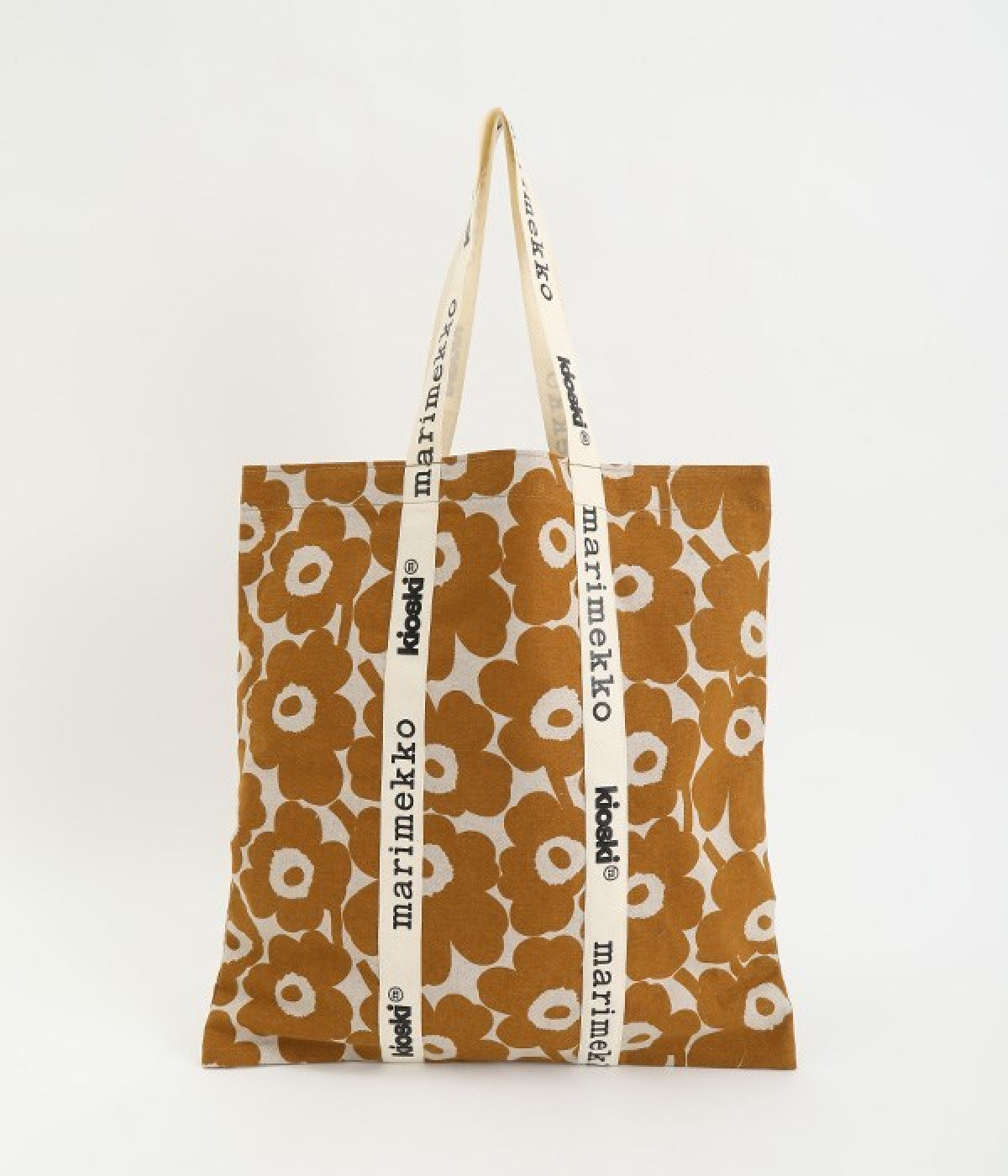 ケシの花をモチーフにしたUnikko柄のトートバッグです。持ち手部分を長くすることで肩掛けがしやすく、デイリー使いにぴったりのアイテムに仕上げました。ノートパソコンもすっきりとおさまるスクエアタイプ。マチのないコンパクト設計で折りたたむことができるので、持ち歩き用のサブバッグとしても活躍します。