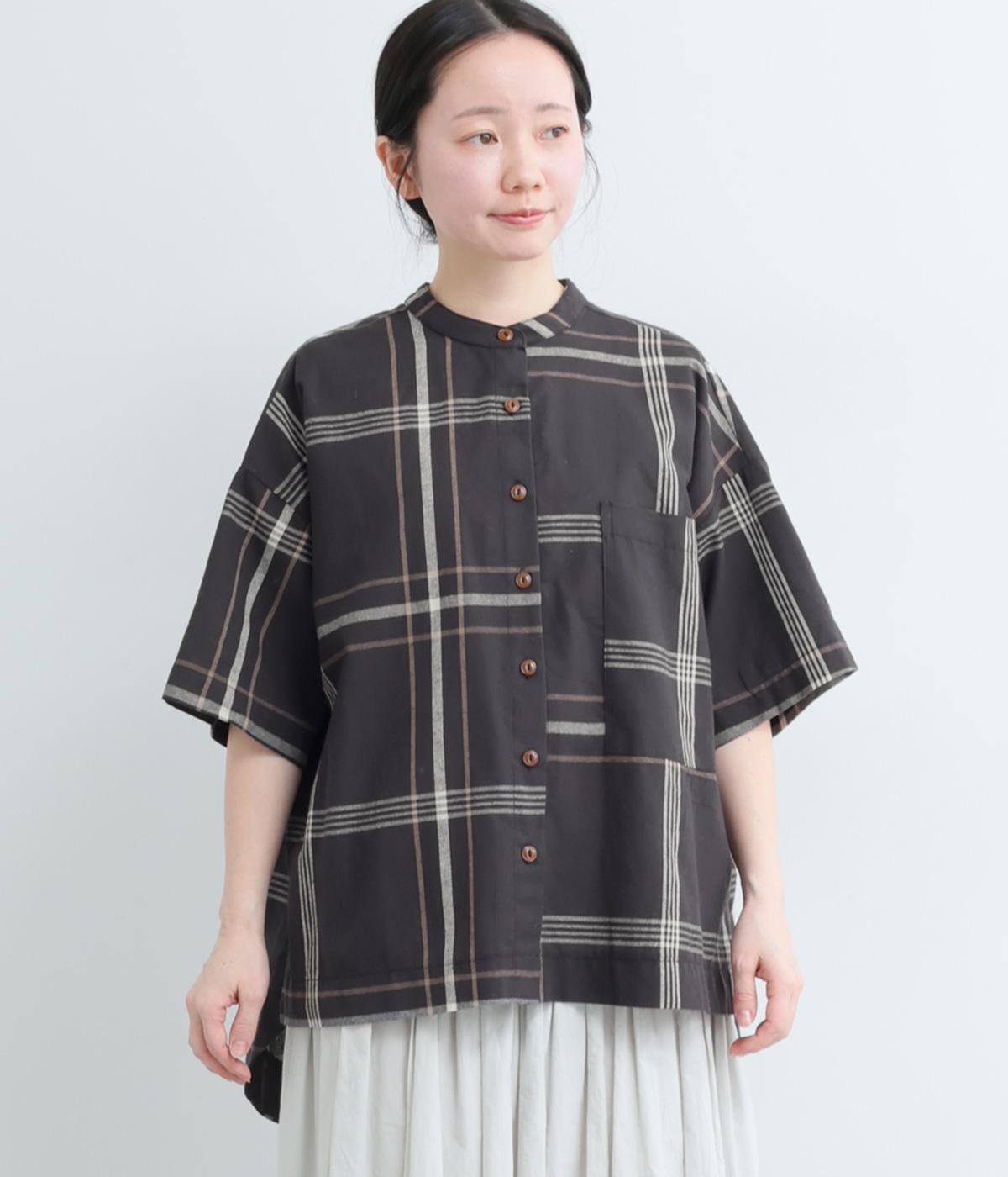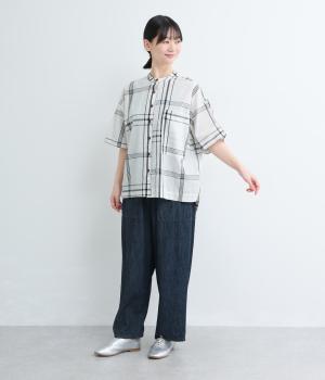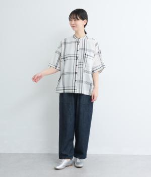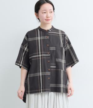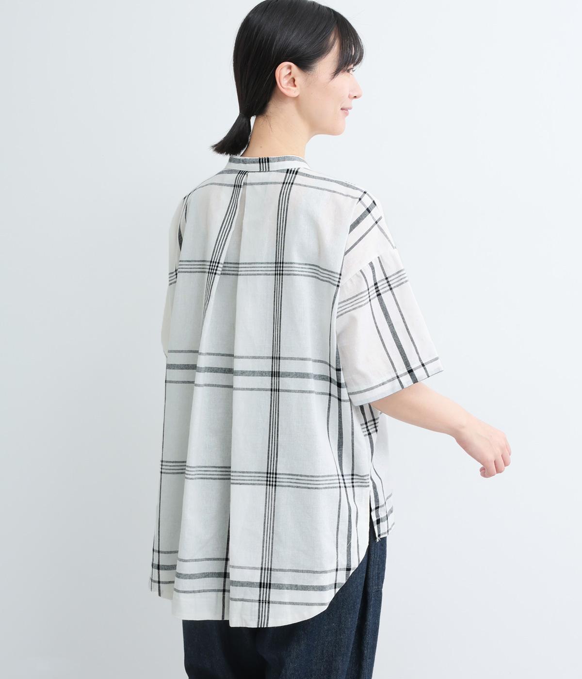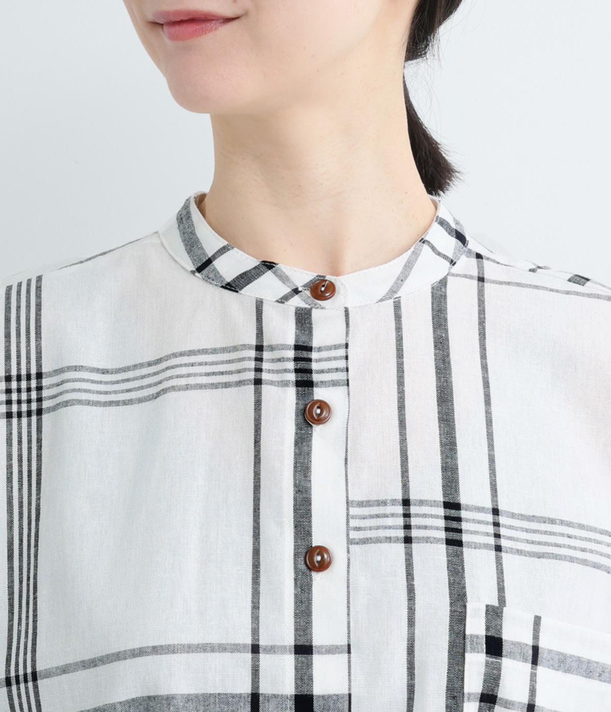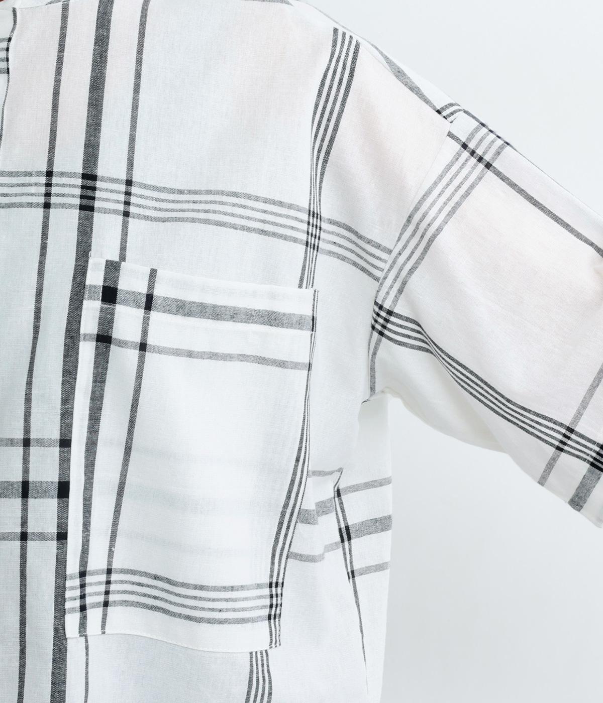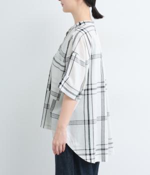 ワンポイントになりながらも無地感覚で着こなしやすく、さわやかな風を運ぶビッグチェック柄シャツ。ゆとりのあるサイズにすっきりしたバンドカラーが好バランス。ヘムラインは前後差をつけて後ろ姿もお洒落見え。