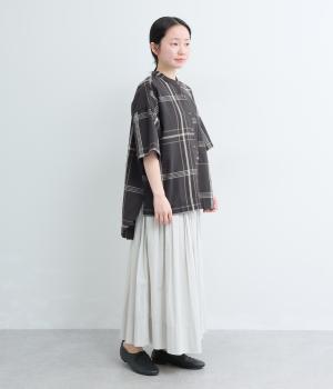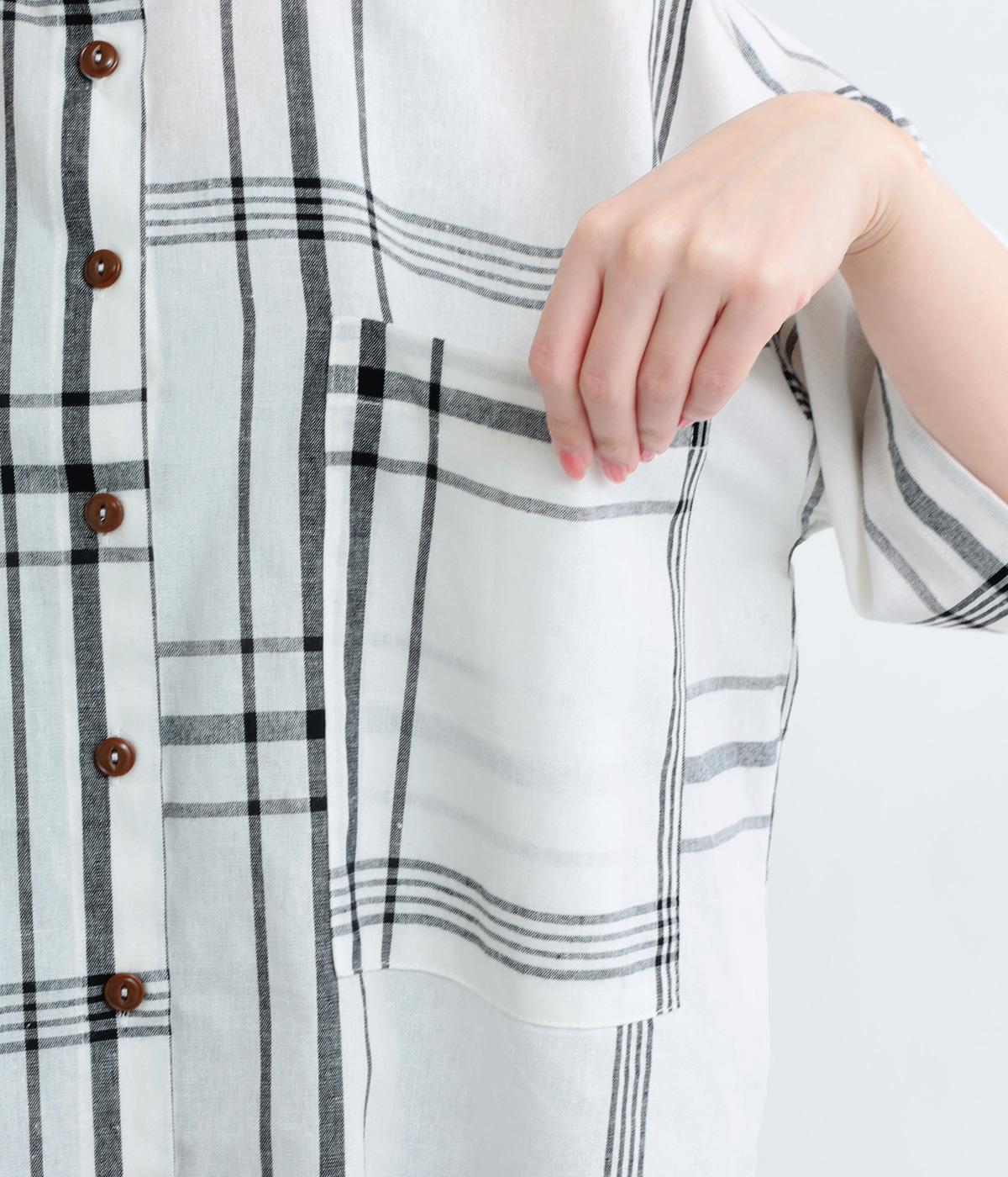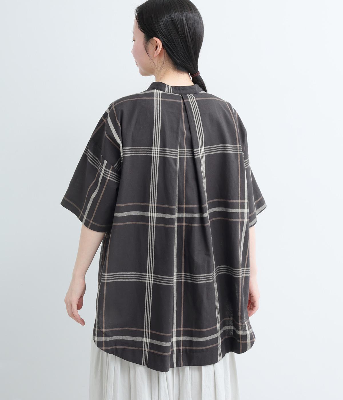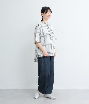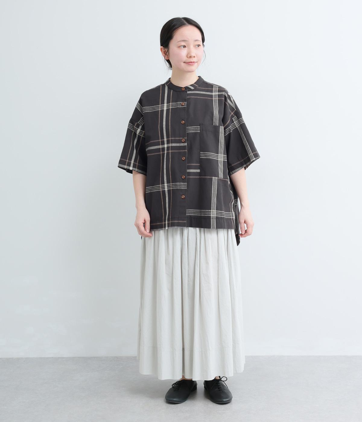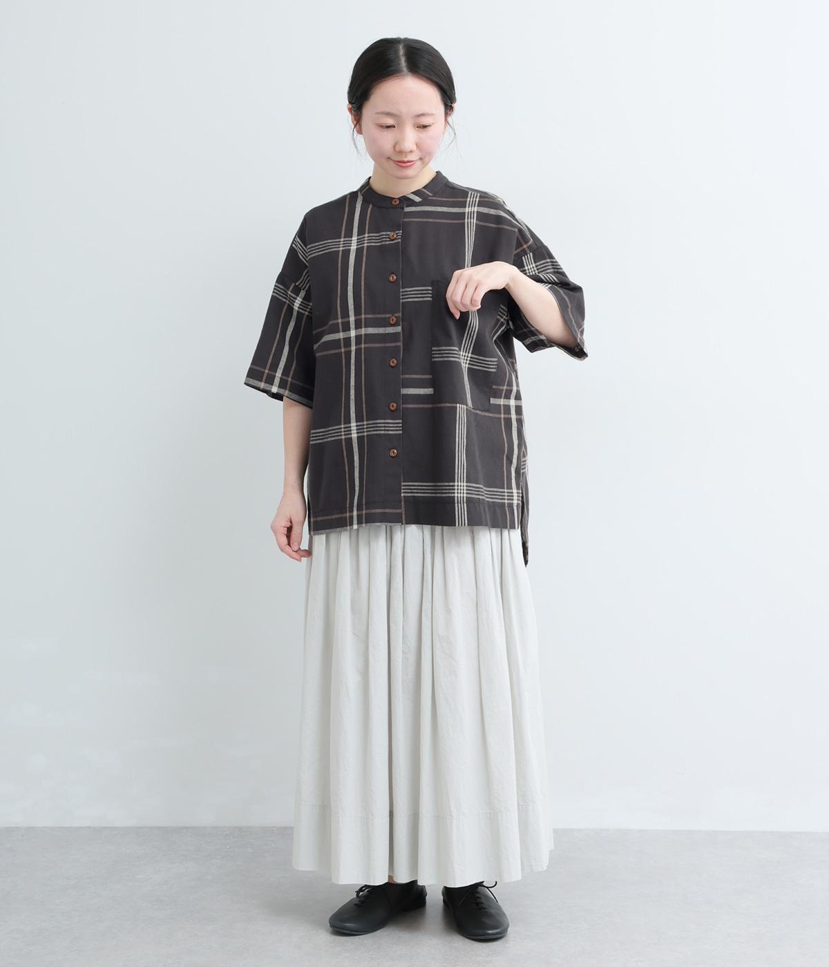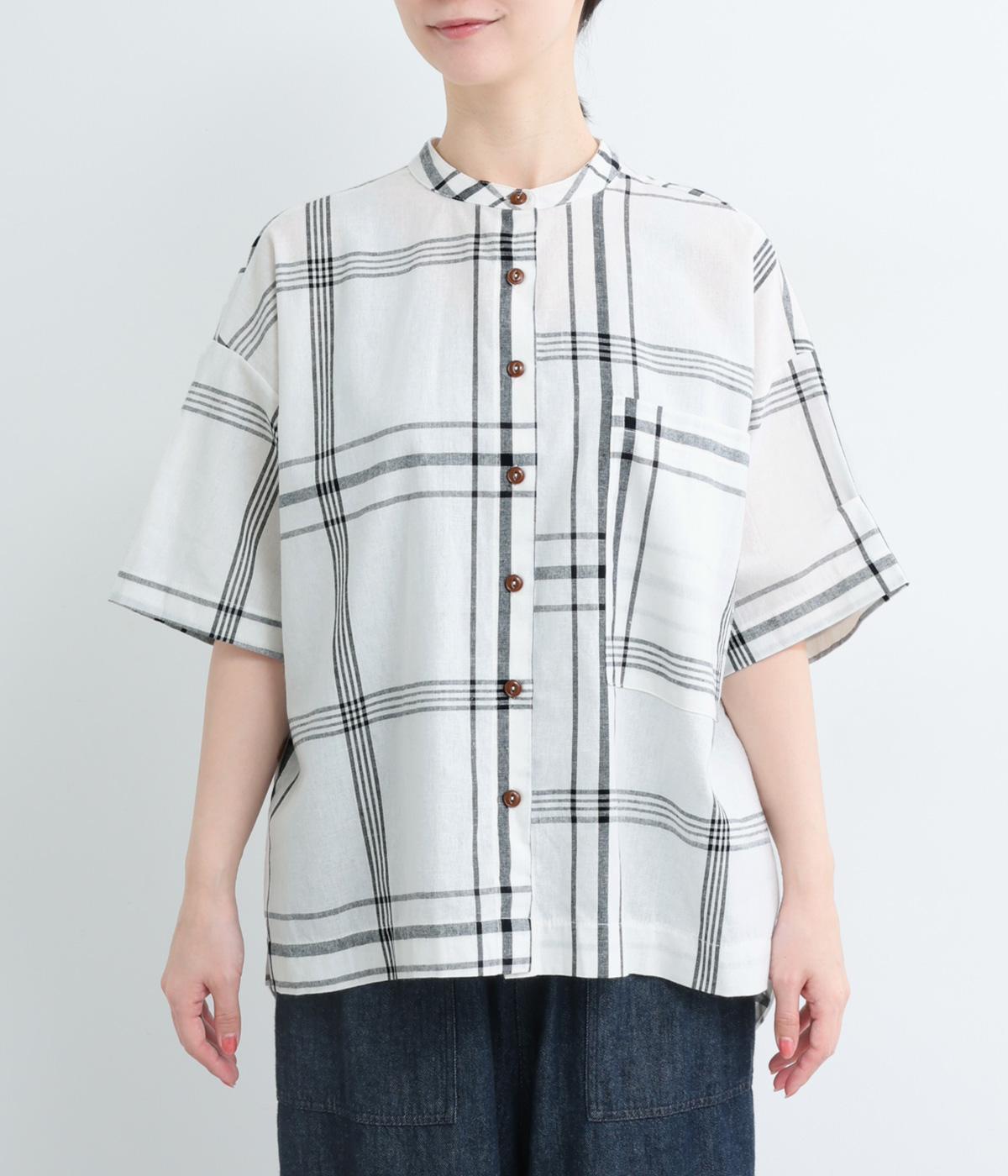 ワンポイントになりながらも無地感覚で着こなしやすく、さわやかな風を運ぶビッグチェック柄シャツ。ゆとりのあるサイズにすっきりしたバンドカラーが好バランス。ヘムラインは前後差をつけて後ろ姿もお洒落見え。