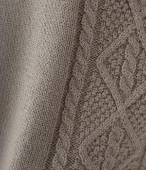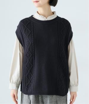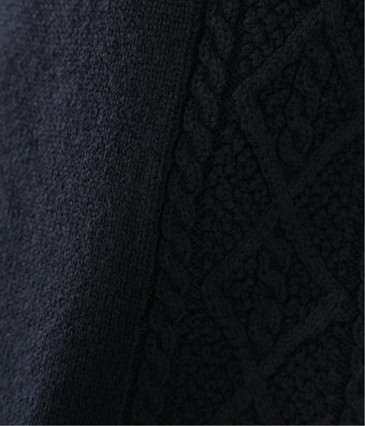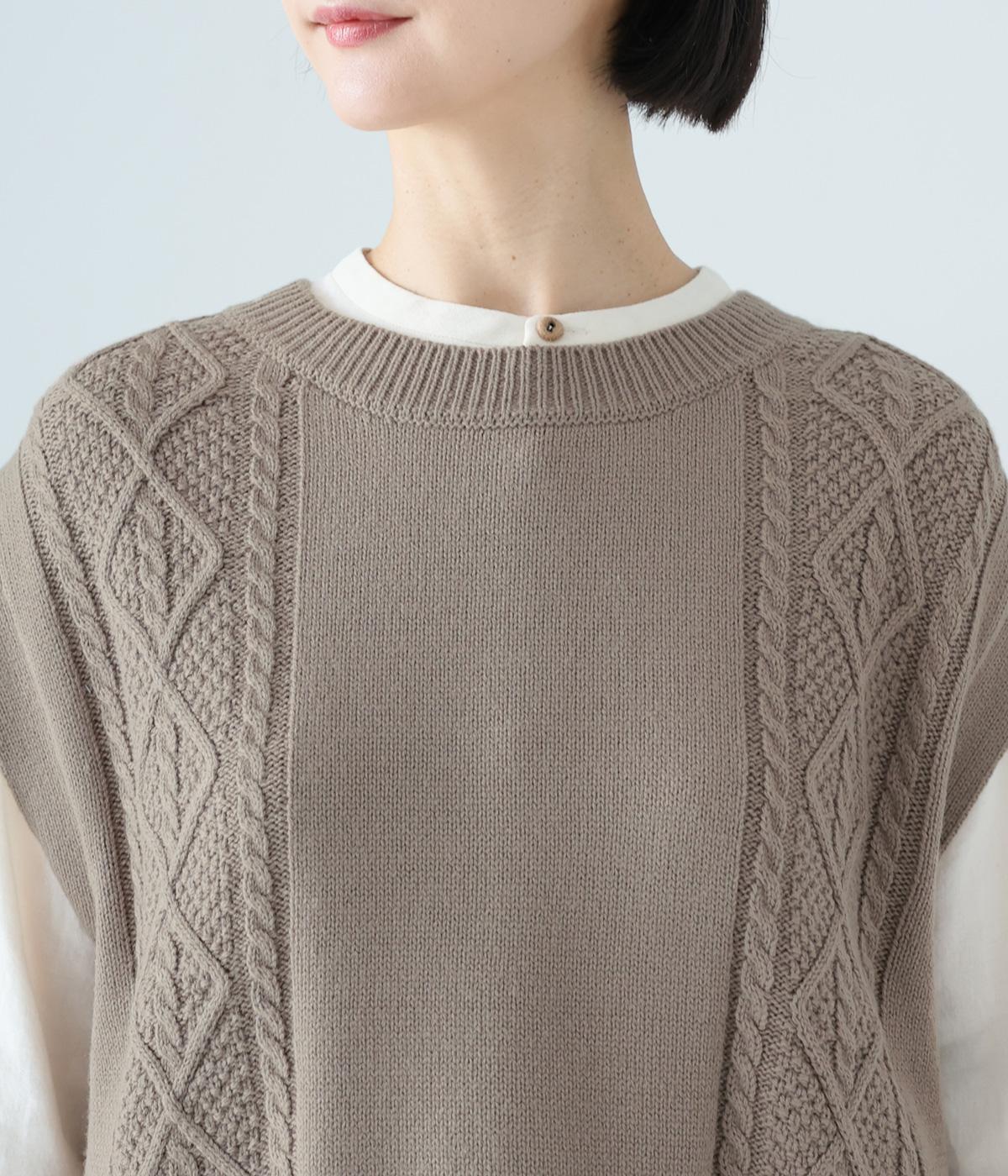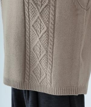 フロントには立体感のあるケーブル編みの柄を施し、表情豊かな仕上がりに。肩にかかるほどの袖丈で、二の腕をさりげなくカバーします。