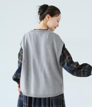ウール混の素材で、ほんのりとしたあたたかさが心地よいベスト。黒よりもやわらかな印象のネイビーで、暗くなりがちな秋冬の装いも軽やかにまとまります。