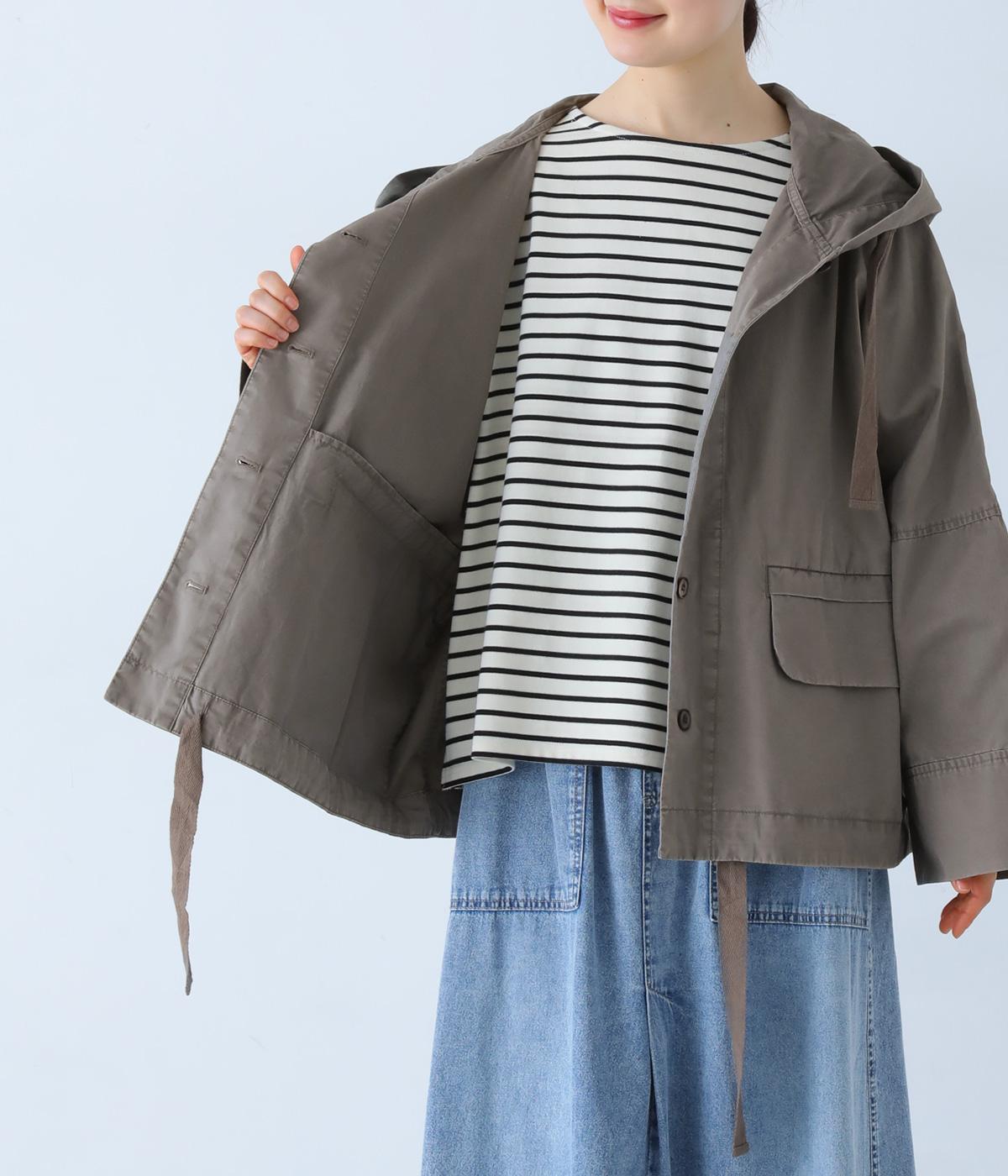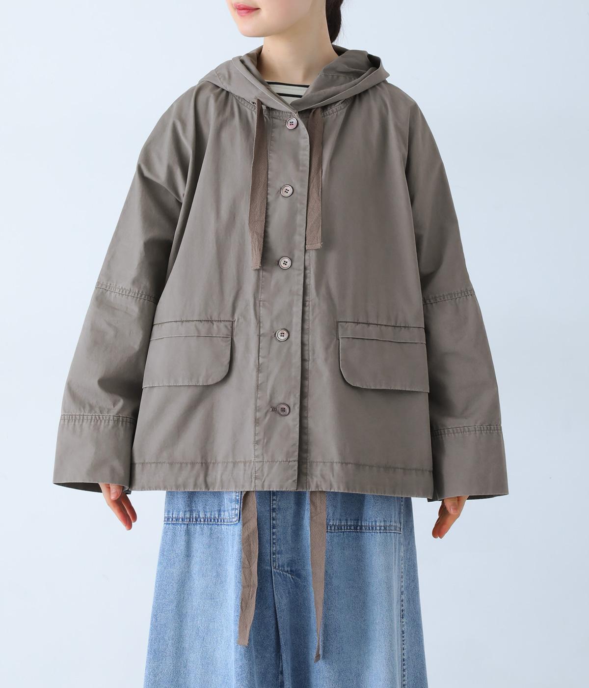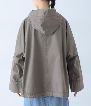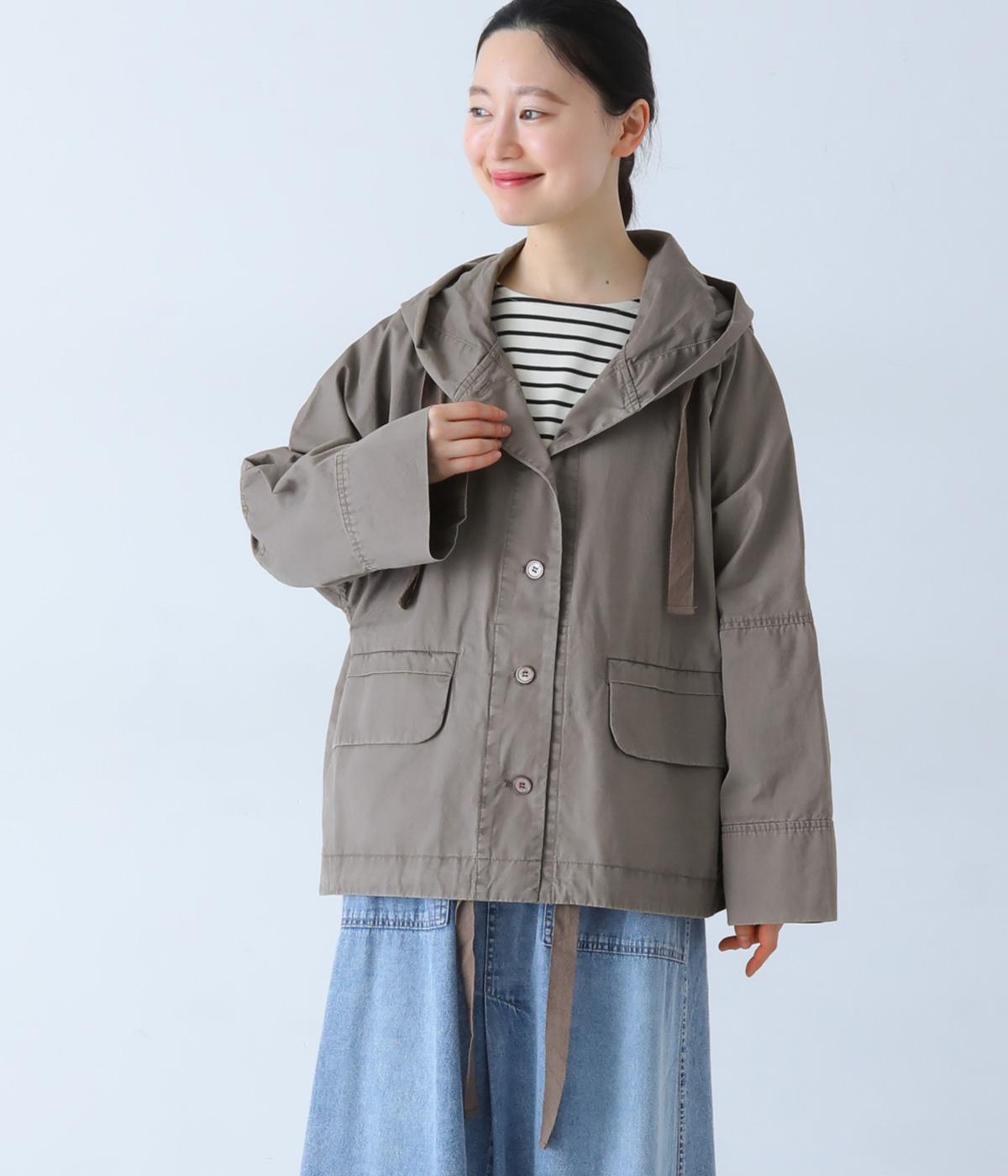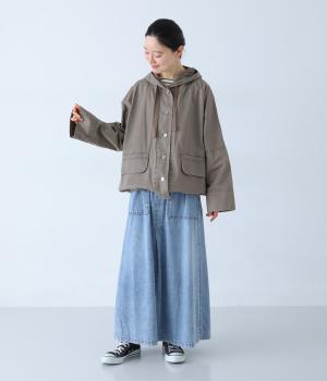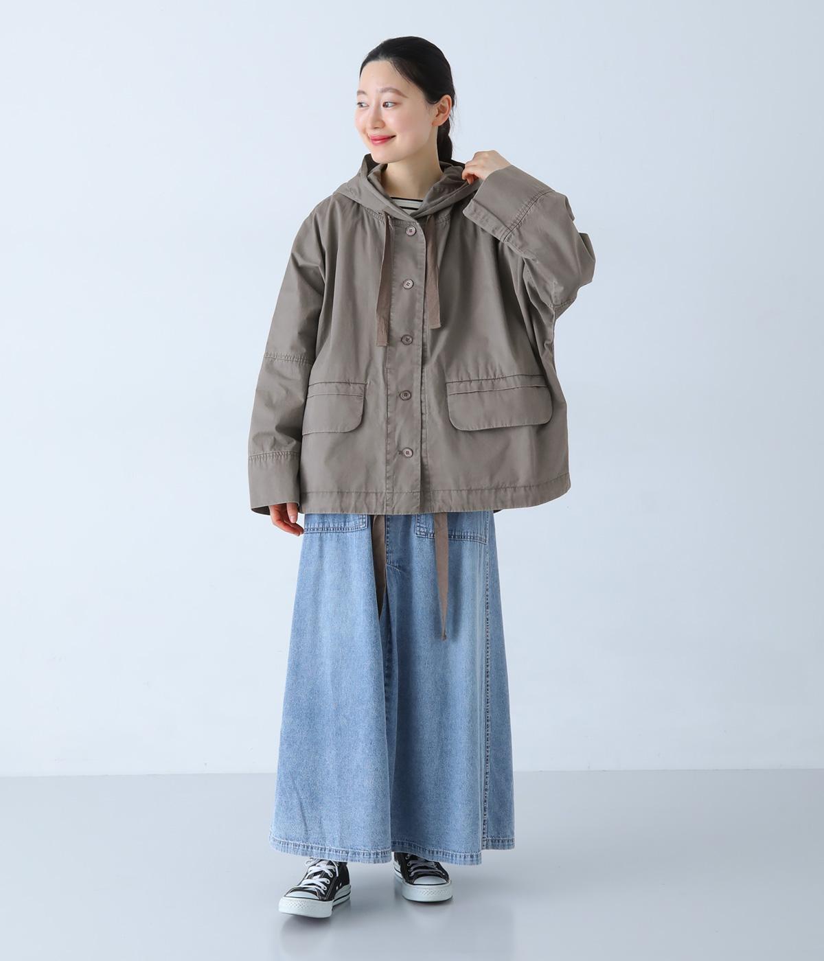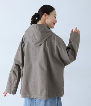 前面の大きなフラップポケットがアクセントのフードジャケット。太ひも付きのフードと裾で表情を変えられ、裾を絞ればコンパクトなシルエットに。腰まわりをほどよく隠してくれる丈感で、袖は折っても◎。