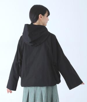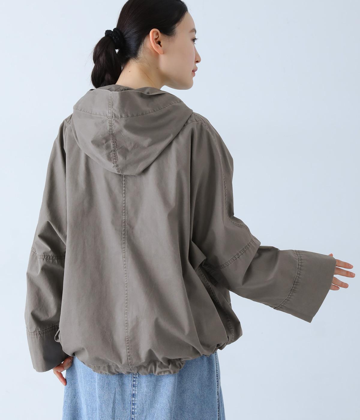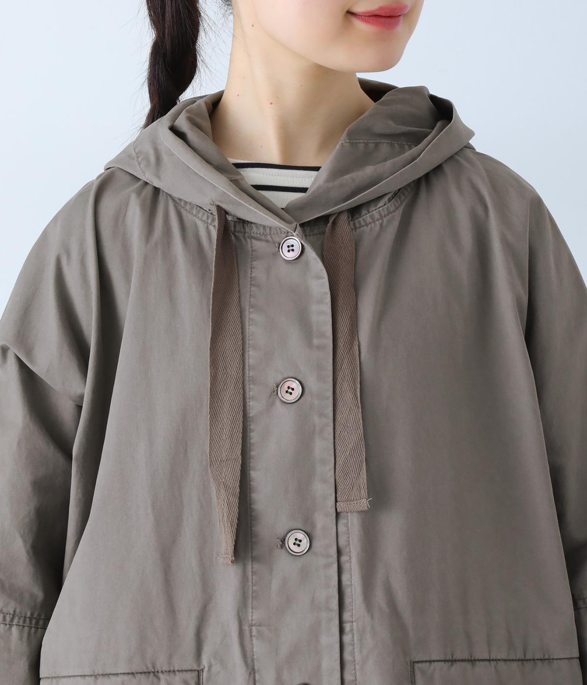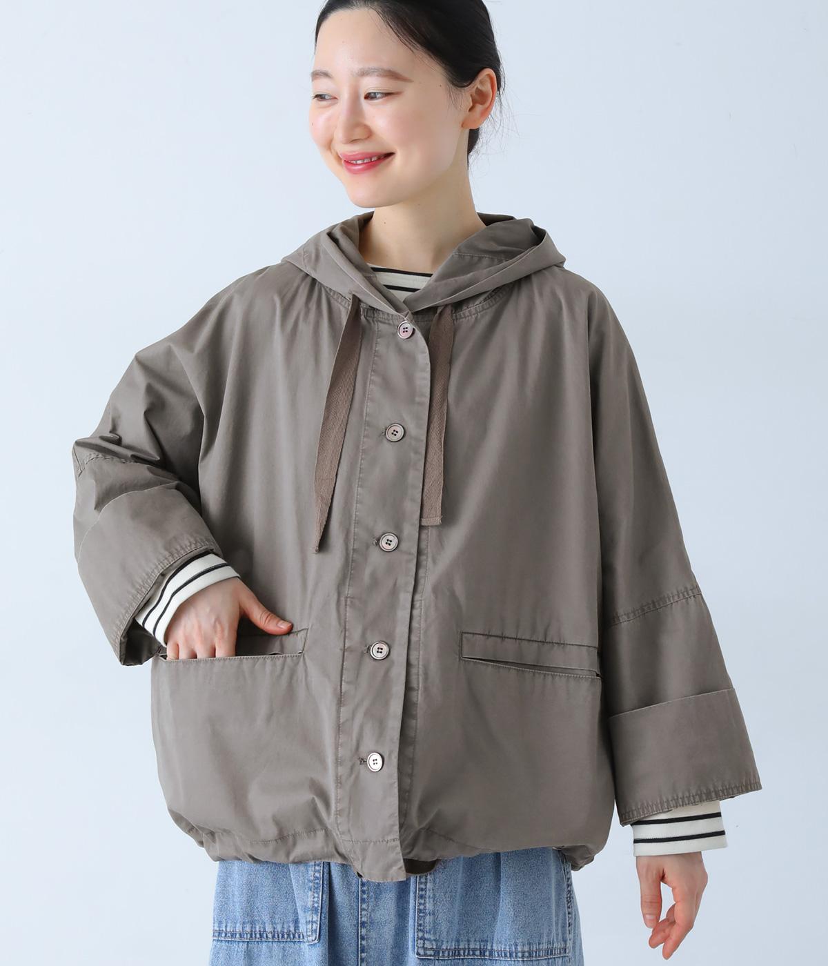 前面の大きなフラップポケットがアクセントのフードジャケット。太ひも付きのフードと裾で表情を変えられ、裾を絞ればコンパクトなシルエットに。腰まわりをほどよく隠してくれる丈感で、袖は折っても◎。